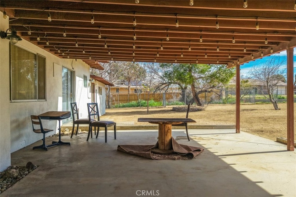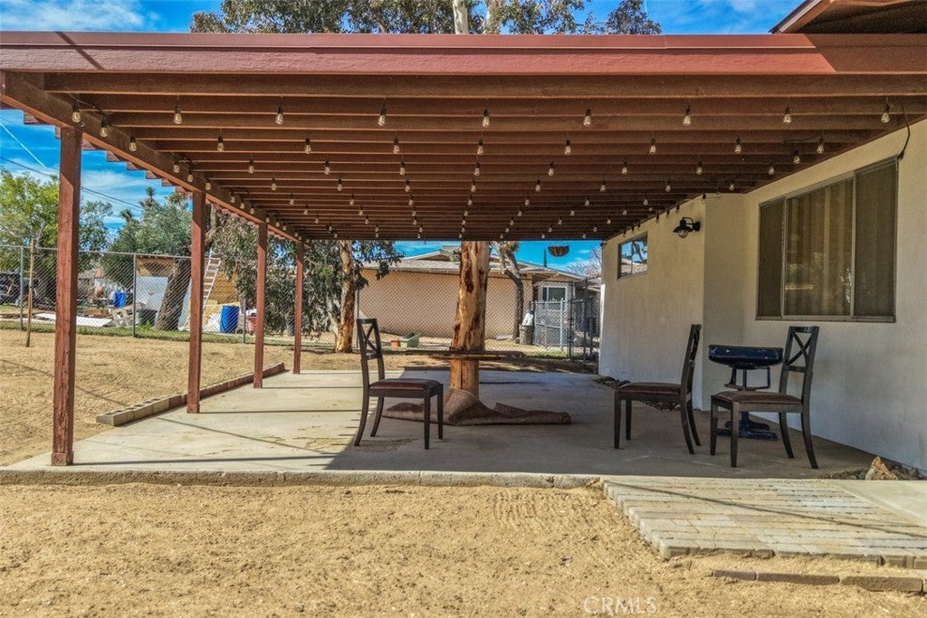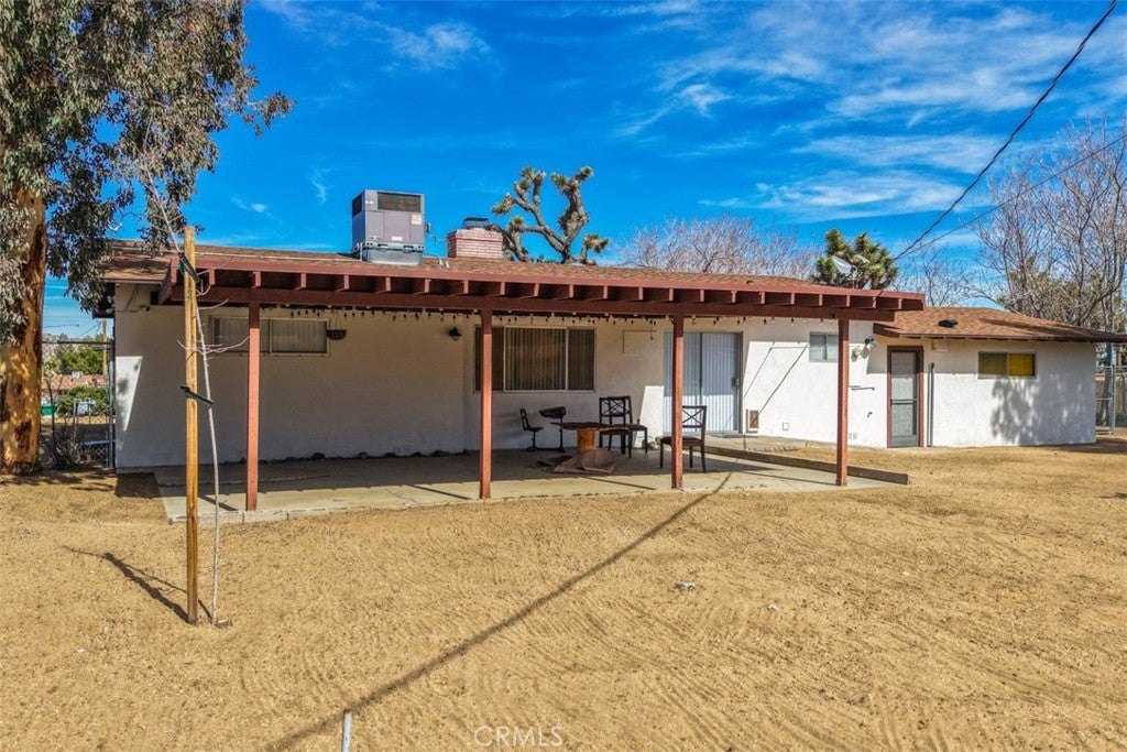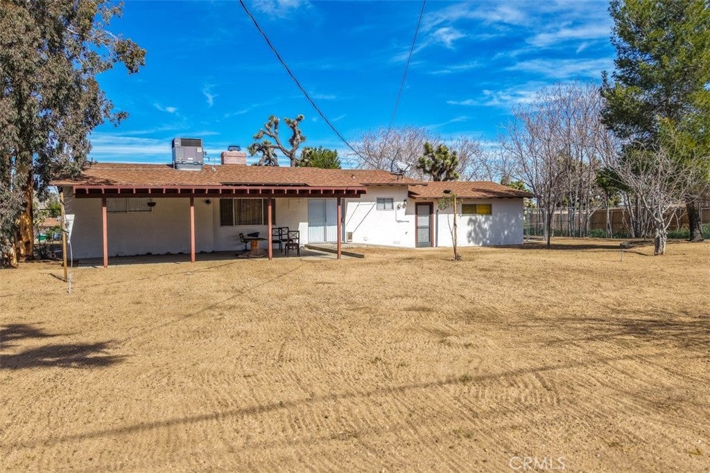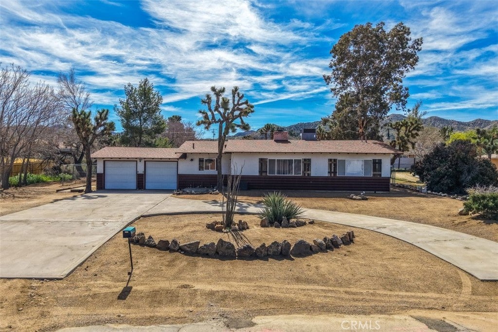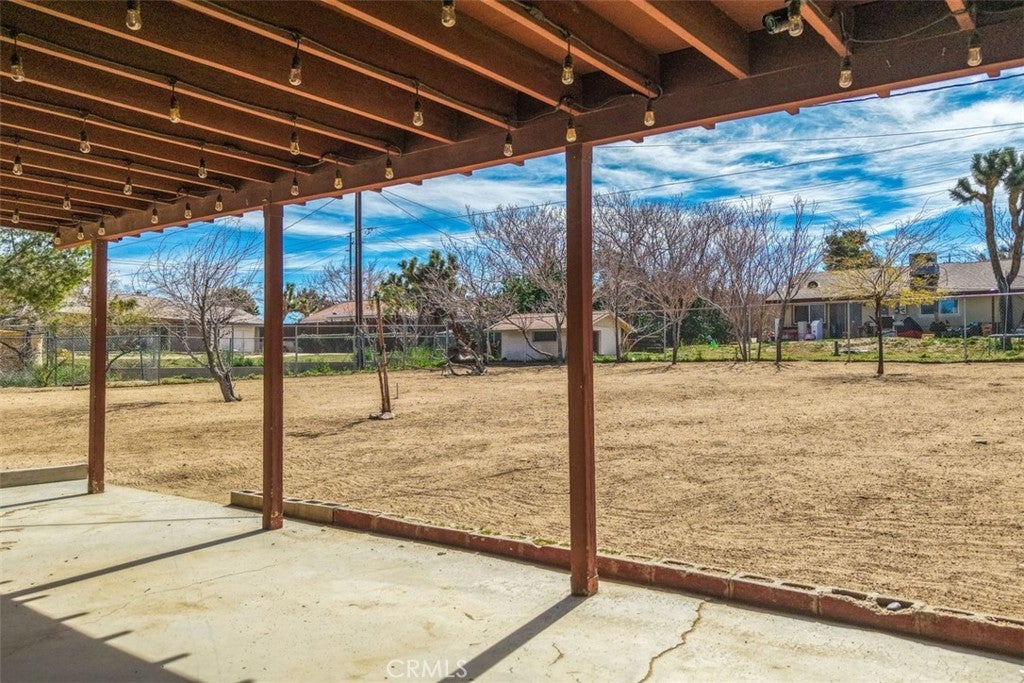 Welcome to this affordable, move-in-ready home in the highly desirable Storey Park neighborhood of Yucca Valley—perfect for a first-time homebuyer or anyone looking for a comfortable desert property with space to grow. This 3-bedroom, 1.5-bath home offers 1,307 square feet of living space situated on a generous 17,985 square foot lot, giving you room for RVs, outdoor living, or future possibilities. Step inside to a warm and inviting living room featuring a wood-burning fireplace with a custom metal mantle, custom wood accents, and a mounted TV space—creating the ideal setting for cozy evenings at home. The main bathroom maintains its classic vintage appeal with original detailing, including the mirror and cabinetry, complemented by a walk-in shower. The kitchen is both functional and stylish, featuring granite countertops, a tile backsplash, and matching stainless steel appliances, along with ample cabinet space for storage and organization. Whether you love cooking or hosting, this space delivers practicality and personality. Outside, you’ll appreciate the large covered patio that offers shade and comfort for entertaining, relaxing, or enjoying desert sunsets. The fully fenced backyard provides privacy, security, and space for pets, gatherings, or star-filled desert nights. In addition, there is a separate enclosed chain-link area, ideal for a dedicated dog run or secure boat storage. Additional highlights include a convenient indoor laundry room, attached 2-car garage, central heating and air conditioning, and RV parking along the side of the home—a rare and valuable feature in this price range. Located just minutes from town, shopping, restaurants, and cafés, this home is also only 15 minutes from Joshua Tree National Park and about 30 minutes to Palm Springs. With nearby hiking trails, community events, and the charm of the Hi-Desert lifestyle, this property offers both convenience and adventure. If you’ve been searching for a starter home in Yucca Valley, a desert getaway, or a smart long-term investment in a growing area, this one checks the boxes. Come see it for yourself—your desert home begins here.