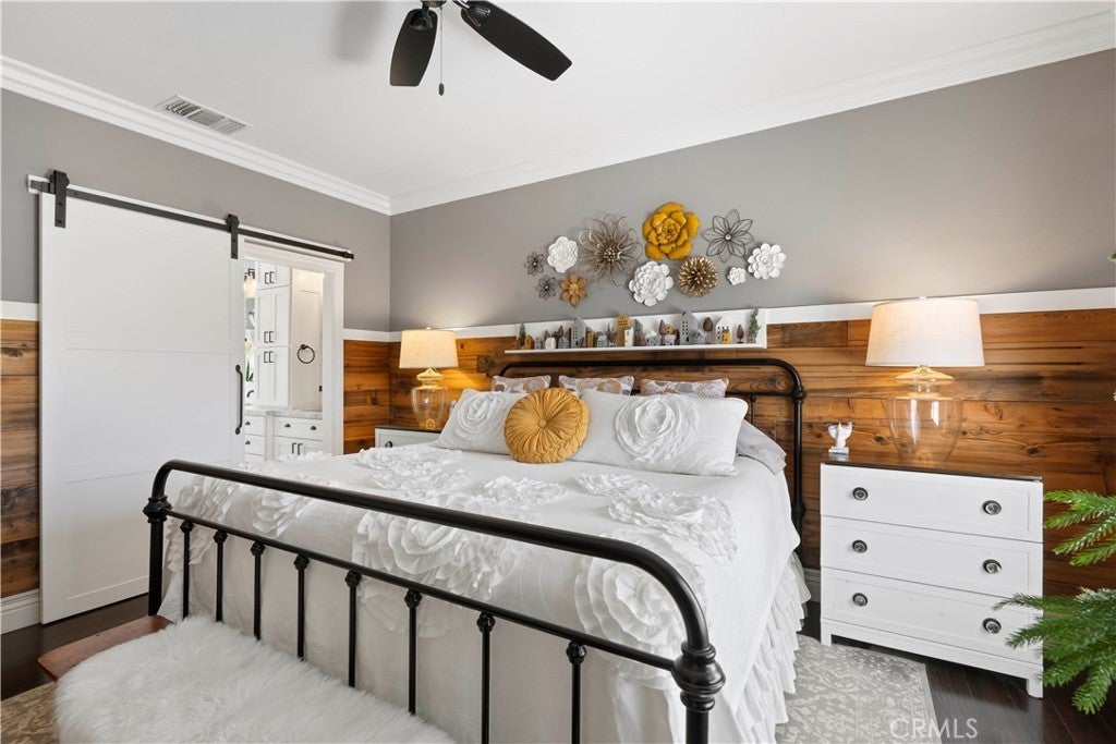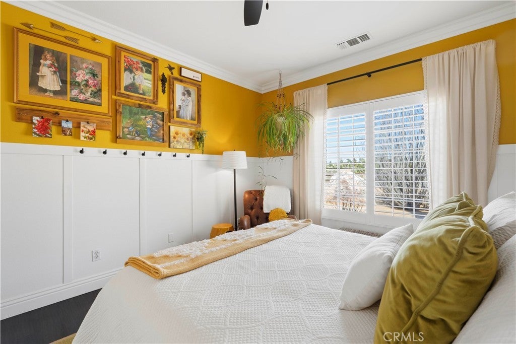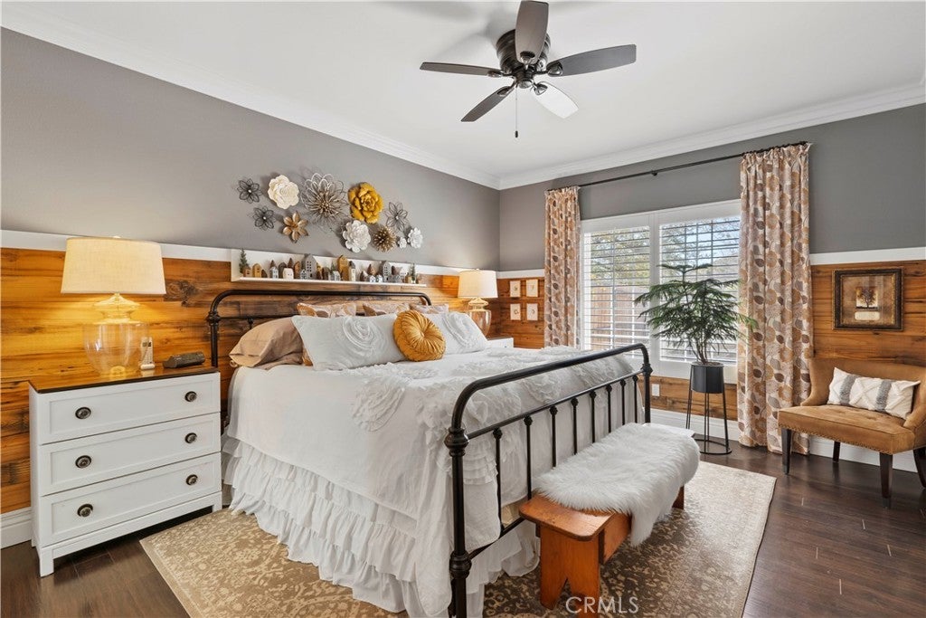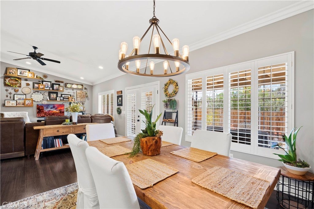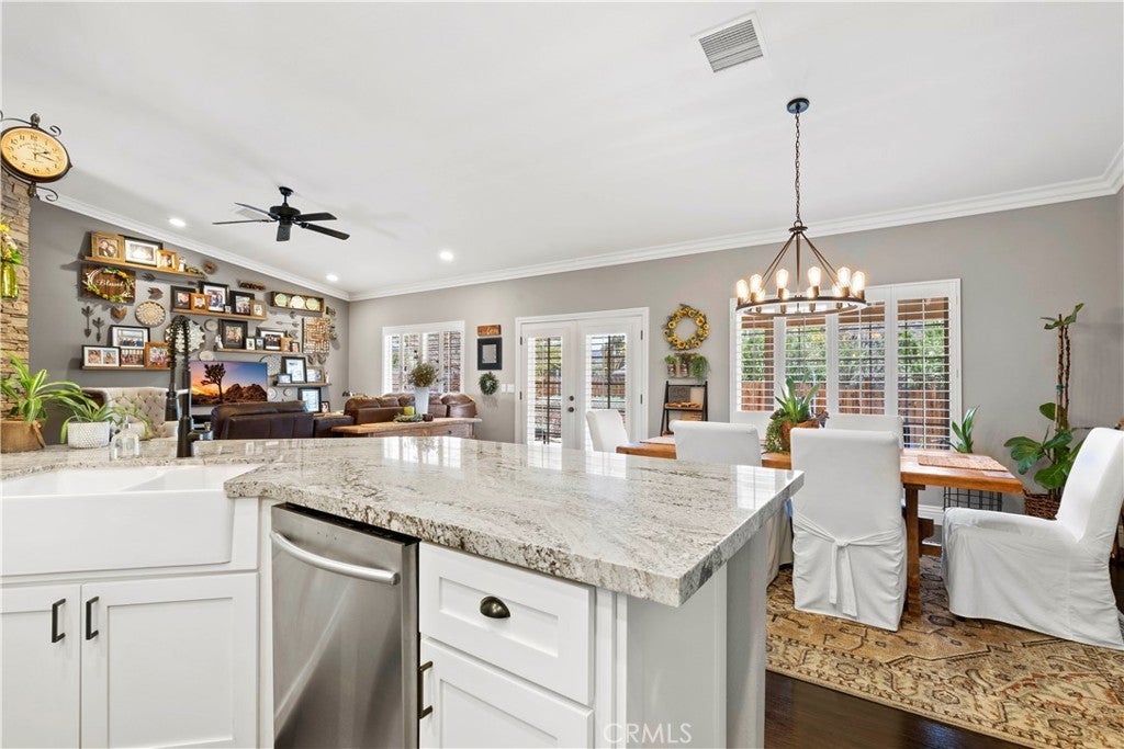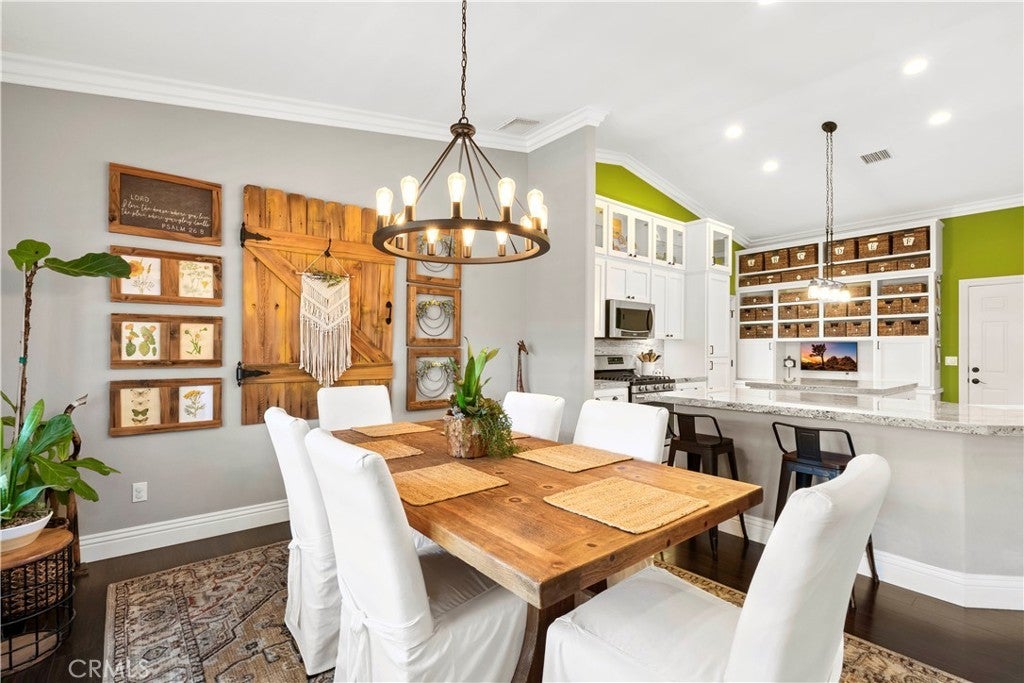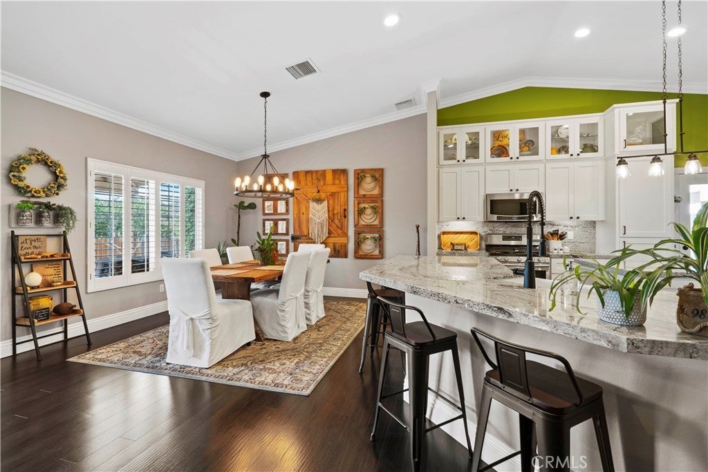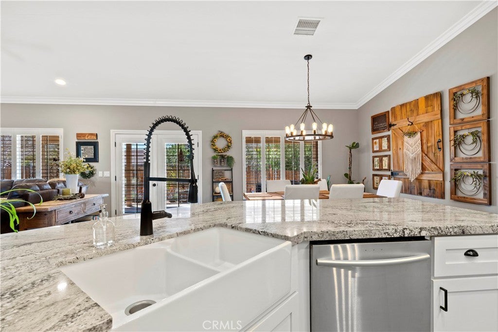 Discover this beautiful, meticulously designed desert home. This 3-bedroom, 2-bath home welcomes you with a charming courtyard. The interior boasts a cohesive design with a touch of sophistication. Plantation shutters allow for privacy and light control. Elegant details include crown molding and baseboards. Custom light fixtures throughout illuminate the space beautifully. A Farmhouse-style kitchen seamlessly blends rustic charm with modern convenience, featuring granite countertops, new stainless steel appliances, and shaker-style cabinetry with lighted upper glass-faced cabinets. Under-cabinet lighting, soft-close cabinet hardware, and customized pantry shelving enhance functionality. The custom-built desk area adds versatility for daily tasks. Dark wood laminate flooring seamlessly connects the open-concept living, dining, and kitchen areas. High ceilings create an airy ambiance, while the custom rock fireplace adds warmth and charm. Abundant natural light floods through well-placed windows. Plus, enjoy cozy evenings with the custom air-tight wood stove. As you step into the primary bedroom, you’ll be captivated by the custom wood wainscoting that offers refined comfort. Enjoy two large walk-in closets. The main bath features dual sinks, a luxurious soaking tub, and a generously sized walk-in shower adorned with floor-to-ceiling tile. The second bedroom exudes elegance with wainscoting adorning the walls. The room boasts a spacious walk-in closet. The second bath features a granite countertop and a custom sink installation. An added linen cabinet provides convenient storage. The third bedroom/office stands out with its custom cabinetry. The enchanting home’s outdoor space is adorned with mature trees and a thriving vegetable garden. Enjoy your morning coffee on the wrap-around patio, complete with a built-in BBQ for culinary delights. It includes new fencing, an automated watering system, a raised bed garden, shaded seating, a built-in BBQ, outdoor dining, illuminated shade, charming yard art, grapevines, and RV hookups. This outdoor paradise is more than a yard—it’s an invitation to create lasting memories. This desert retreat awaits its new owner—schedule a viewing today!