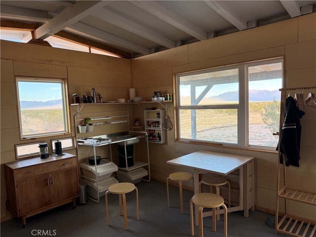 Wonderful ready to use weekend getaway recreational cabin in Wonder Valley. Remodeled into a comfortable space to live and enjoy. The cabin features upgraded windows with vast views, a well-thought-out floor plan with separate sleeping and kitchen areas, and a dedicated indoor toilet compartment for privacy and convenience. The roof is metal, good paint, and the windows all have protective coverings that detach easily for security. Come discover the stars and quiet from this unique five-acre location. It is a short drive the Palms, the national park, or town on good roads. You will love the patio and firepit under the expansive Mojave Desert sky.