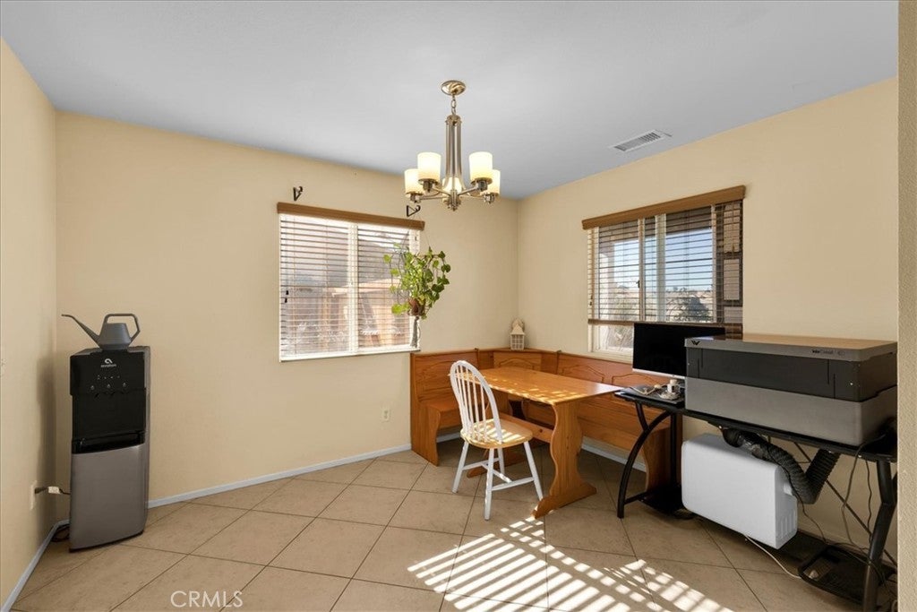 Welcome to Turtlerock! This single-story home offers 3 bedrooms, 2 bathrooms, and a bonus office space with beautiful built ins that can be used as a fourth bedroom. Situated on a corner lot, this gives you a huge backyard space, big enough for a pool, park your RV and even covered patio space for outdoor entertaining! There's a cozy fireplace and more built in shelves in the large living room off the kitchen which gives the space a feeling of the open flow concept. There’s also a separate dining area for entertaining guests. Laundry is located inside your home instead of the garage space, and speaking of garages, there is an oversized attached 2 car garage, accessible from inside the home. All bedrooms are spacious and the primary has its own en-suite bath with soaking tub, separate shower, and walk in closet! Located in the Turtlerock development of Twentynine Palms, it has a very low HOA that includes a professionally managed septic system, and general maintenance of the common areas including the landscaping of the outer perimeter, it is also well know for their covered front porches and a functional floor plan that gives you plenty of living space. Recent updates include interior paint, partial roof replacement, and an updated A/C duct system. Newer light and plumbing fixtures give it a more updated feel as well. And it's all located within minutes to the front entrance to the 29 Palms Marine Corp Base, Joshua Tree National Park, and the up and coming downtown 29 Palms area for shopping and restaurants. Whether this will be your first home, or an investment property, it will be hard to pass up this amazing home!
