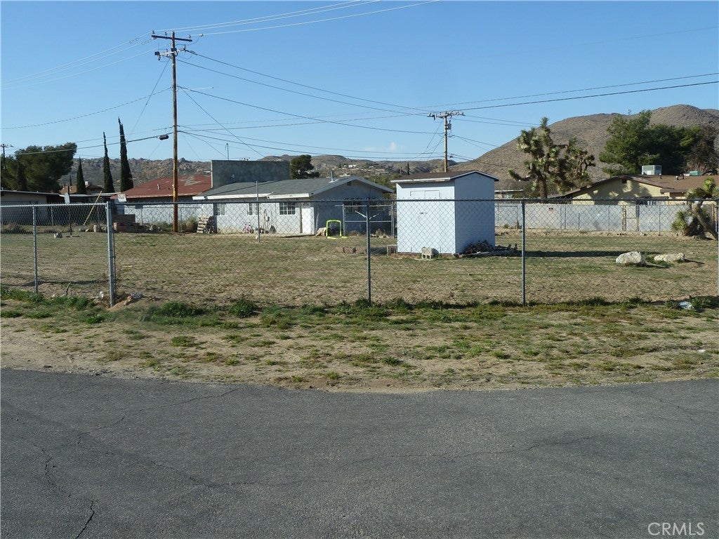 Two for One!! This is two parcels for one price! Both are zoned commercial/residential. Lot number one has a two bedroom, one bath house currently rented for $1,000 a month. The other lot, on the corner, is vacant. Perfect for starting your own business or building a commercial structure. Great highway visibility, across from Home Depot, Marshalls, Petco, Walmart and various restaurants and shops. Excellent opportunity for the right investor or entrepreneur; keep the house for rental income and build on the corner lot for a new business opportunity. The lot with the house is 8,125 sq ft and the vacant lot is 8,025 sq ft with a storage shed on the property. Both are currently fenced in together but they are separate lots. Buyer to contact the city of Yucca Valley prior to purchase to verify intended use, permitting, utilities, etc. Sewer is connected to the house. Current renters would be happy to stay.
