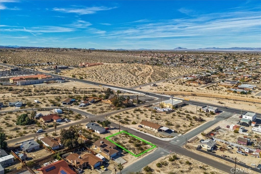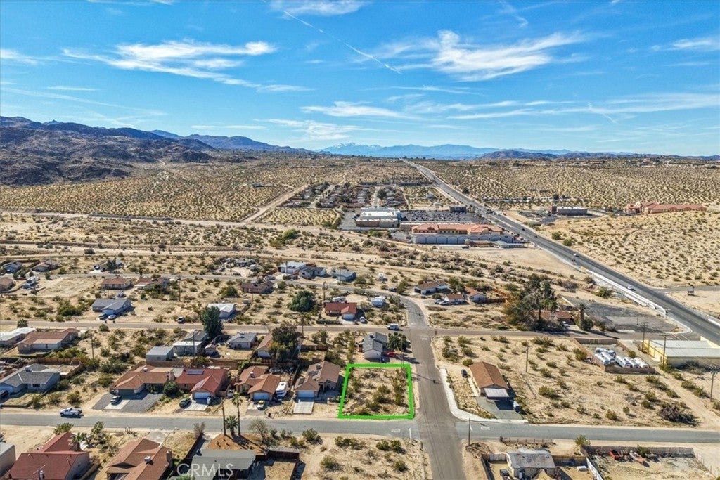 7,100 square foot corner lot in Twentynine Palms with paved road access and established homes nearby. The parcel is generally level with natural desert vegetation and wide-open mountain views that define this part of the Morongo Basin. Located just minutes from shopping, dining, schools, and a short drive to Joshua Tree National Park and the Marine Corps base, this lot offers a practical opportunity to build a primary residence, desert getaway, or investment property in a growing area. Utilities appear nearby in the street (buyer to verify availability and connection requirements). Buyer to verify zoning, utilities, and development standards with the City of Twentynine Palms.