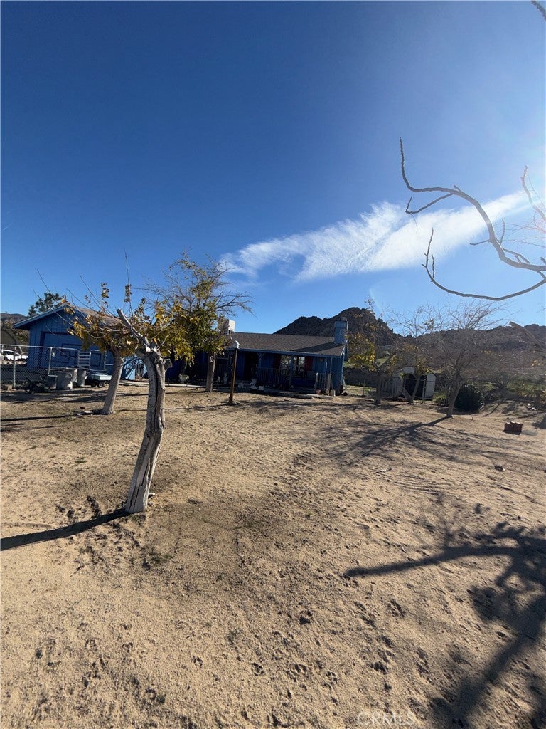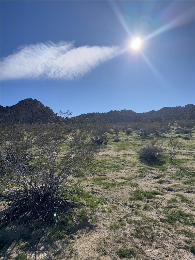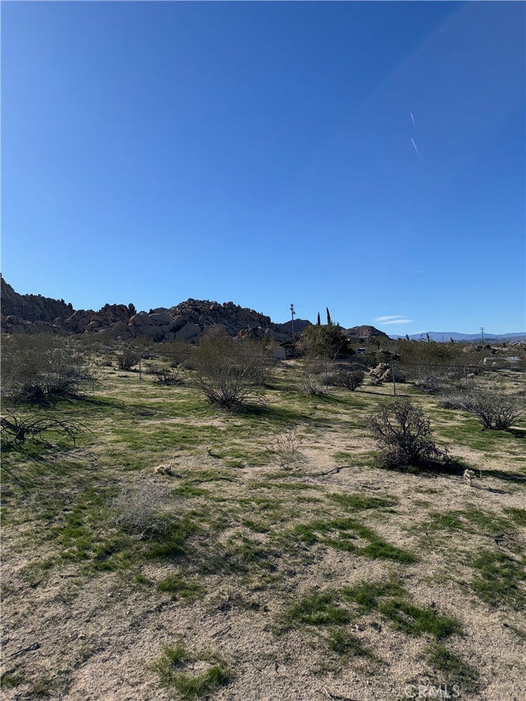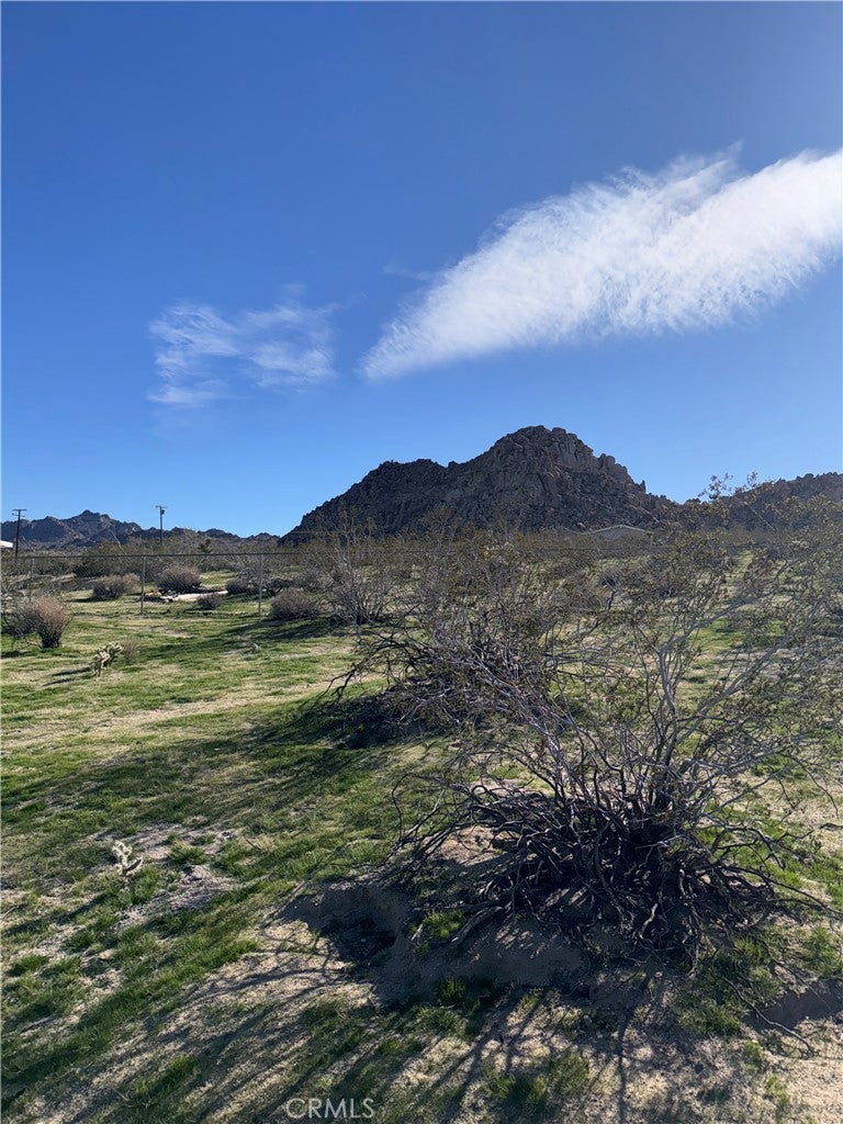 Desert Sanctuary with Forever Views in Joshua Tree Private retreat on 2.3 acres with sweeping, unobstructed views of Joshua Tree National Park, surrounding hills, and iconic boulders. Ideally located near hiking trails and wilderness areas, perfect for outdoor living and stargazing. Inside features vaulted ceilings, abundant natural light, a spacious living room with wood-burning fireplace, and a functional kitchen with dining counter and propane cooking. The home offers 3 bedrooms and 2 bathrooms, including a primary suite with sunken tub and separate walk-in shower. Enjoy outdoor living with a covered porch, rose garden, mature trees, and native cactus. Fully fenced side and rear yards provide added privacy. Additional highlights: attached garage with workshop, separate laundry room, ample storage, and ceiling fans throughout. Disclaimer: Buyer to verify all MLS information including permits, uses, bed/bath count, square footage, school availability, utilities, zoning, and county requirements. Buyer to conduct their own due diligence.