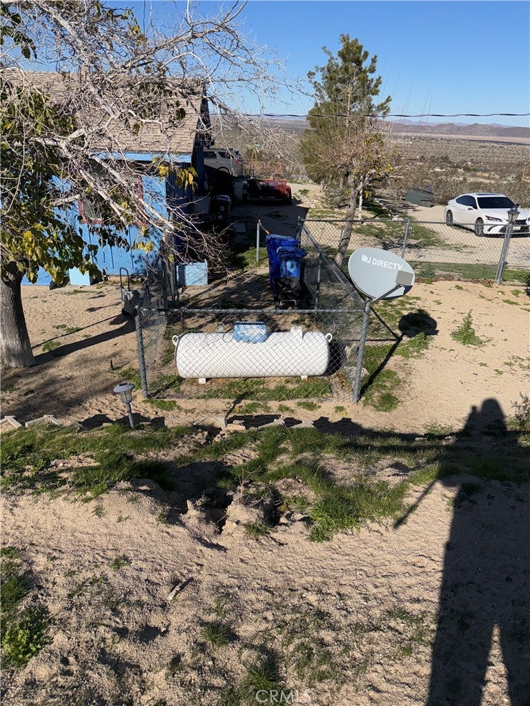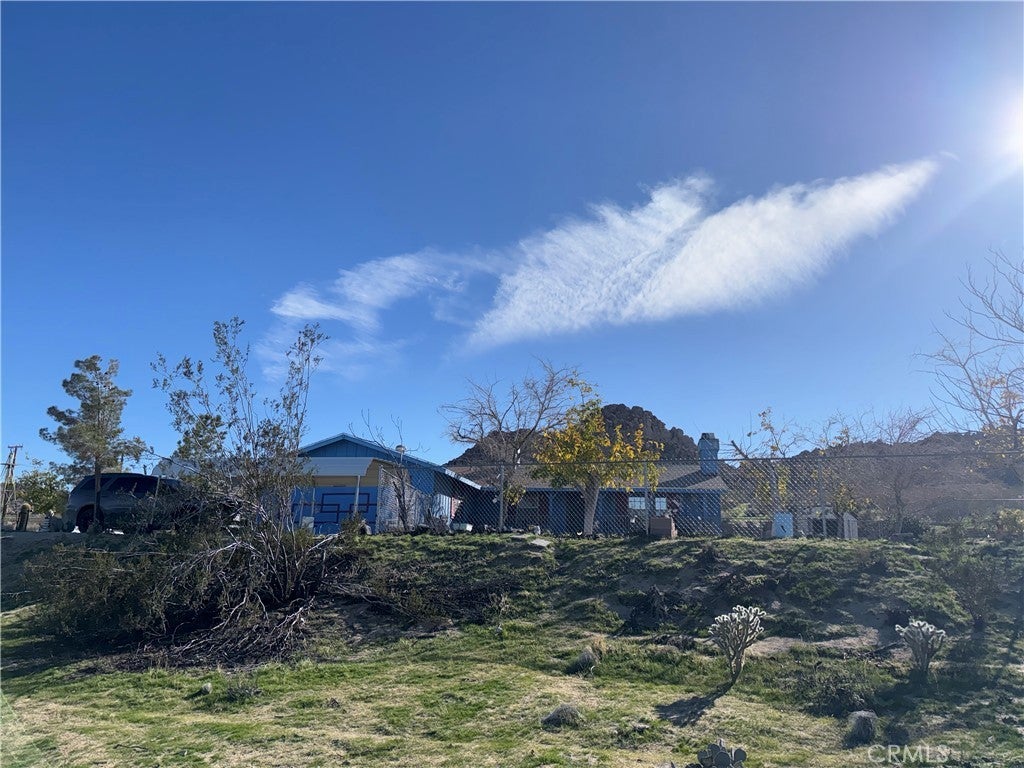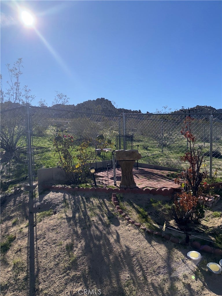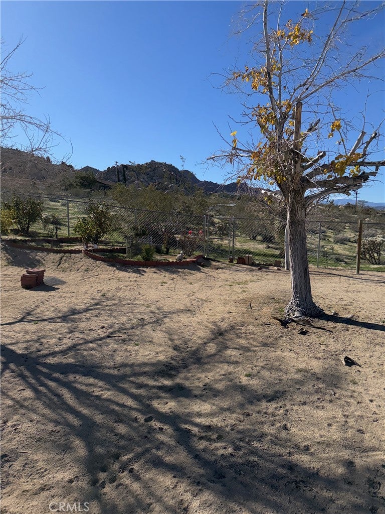Desert Sanctuary with Forever Views in Joshua Tree Private retreat on 2.3 acres with sweeping, unobstructed views of Joshua Tree National Park, surrounding hills, and iconic boulders. Ideally located near hiking trails and wilderness areas, perfect for outdoor living and stargazing. Inside features vaulted ceilings, abundant natural light, a spacious living room with wood-burning fireplace, and a functional kitchen with dining counter and propane cooking. The home offers 3 bedrooms and 2 bathrooms, including a primary suite with sunken tub and separate walk-in shower. Enjoy outdoor living with a covered porch, rose garden, mature trees, and native cactus. Fully fenced side and rear yards provide added privacy. Additional highlights: attached garage with workshop, separate laundry room, ample storage, and ceiling fans throughout. Disclaimer: Buyer to verify all MLS information including permits, uses, bed/bath count, square footage, school availability, utilities, zoning, and county requirements. Buyer to conduct their own due diligence.
