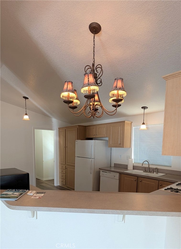 Newer home located in the highly desirable Gates of Spain, Yucca Valley’s premier 55+ community. This impeccably maintained 2-bedroom, 2-bath, double-wide residence offers a peaceful setting with added privacy while remaining conveniently close to the community pool, recreation room, and park office. Recent improvements include a brand-new roof and fresh interior and exterior paint. The open-concept layout features a spacious kitchen with breakfast bar and dining area that flows seamlessly into the generous living room, plus an additional flexible family room space ideal for an office, hobby area, or den. Attractive laminate flooring runs throughout the main living areas, with new carpet in the primary bedroom. The primary suite includes a walk-in closet, additional storage in the ensuite bath, and a step-in shower. A separate laundry room provides direct access to the covered carport and bonus storage shed. The covered front patio is perfect for enjoying peaceful desert mornings and evenings. Move-in ready and beautifully cared for, this home offers comfort, convenience, and the opportunity to enjoy the welcoming Gates of Spain community lifestyle.