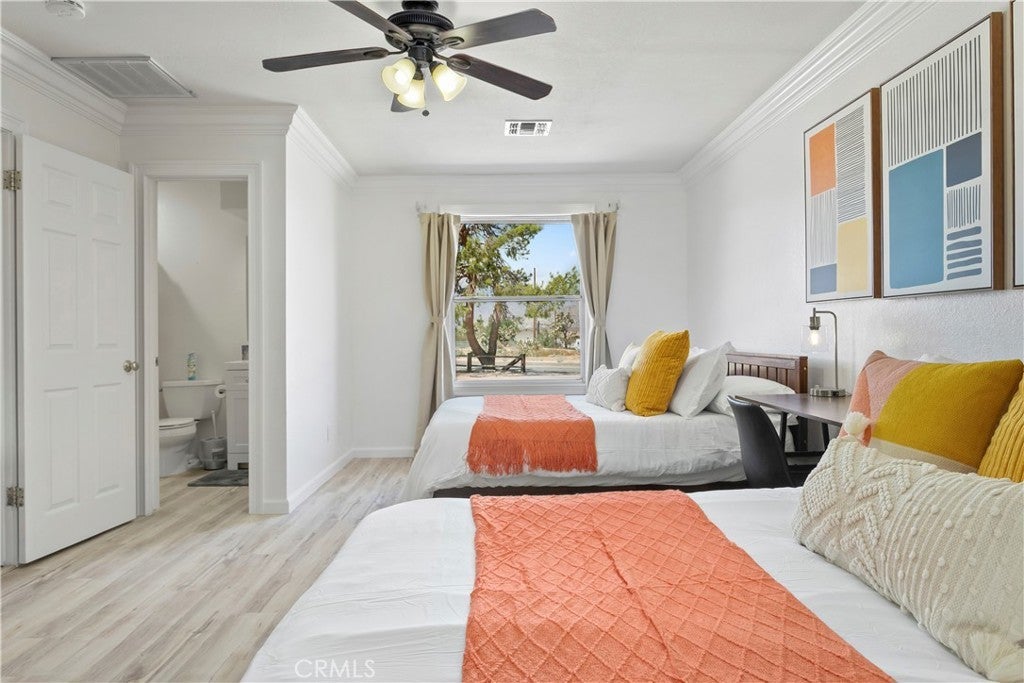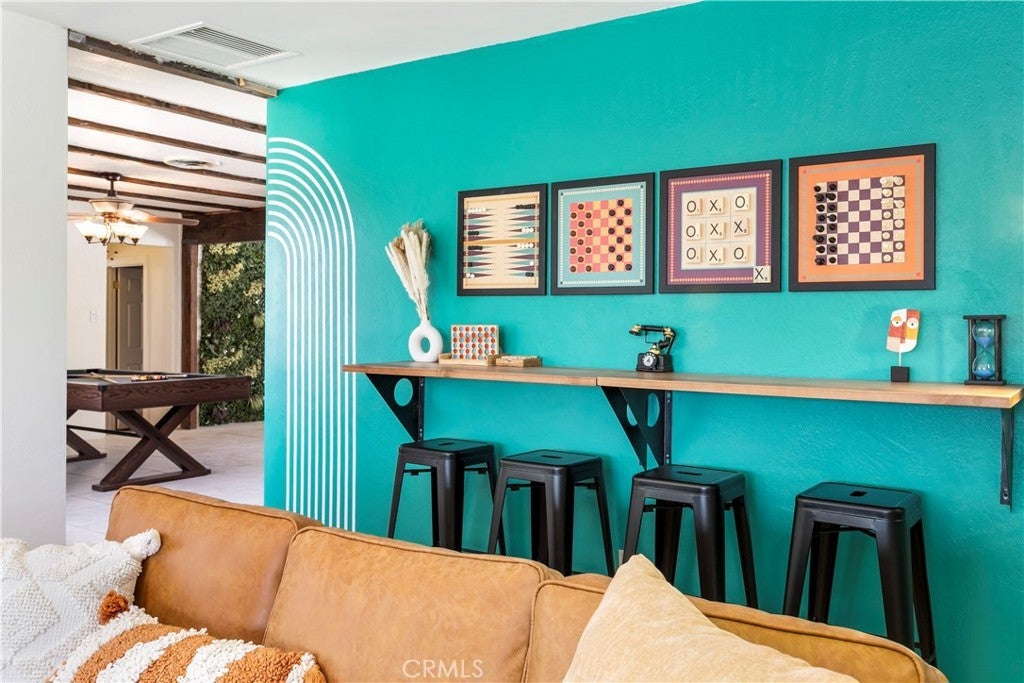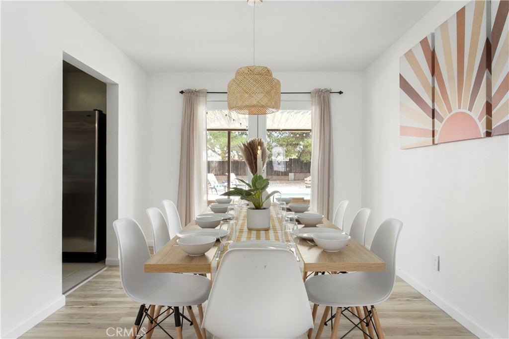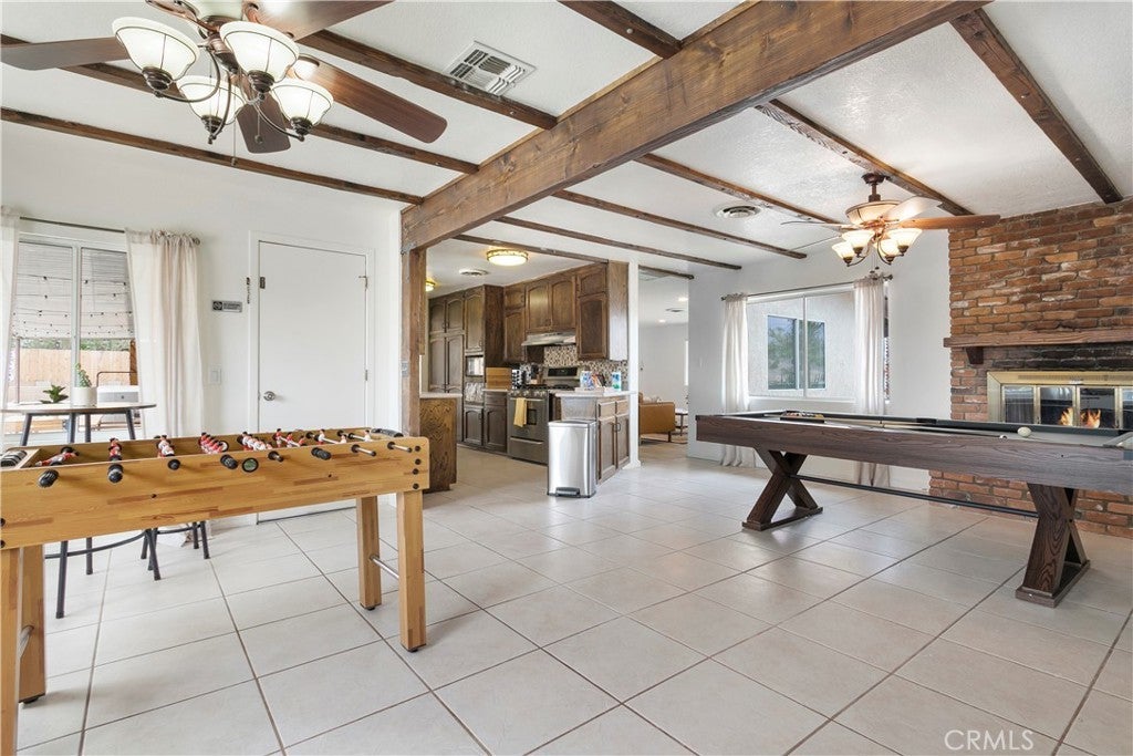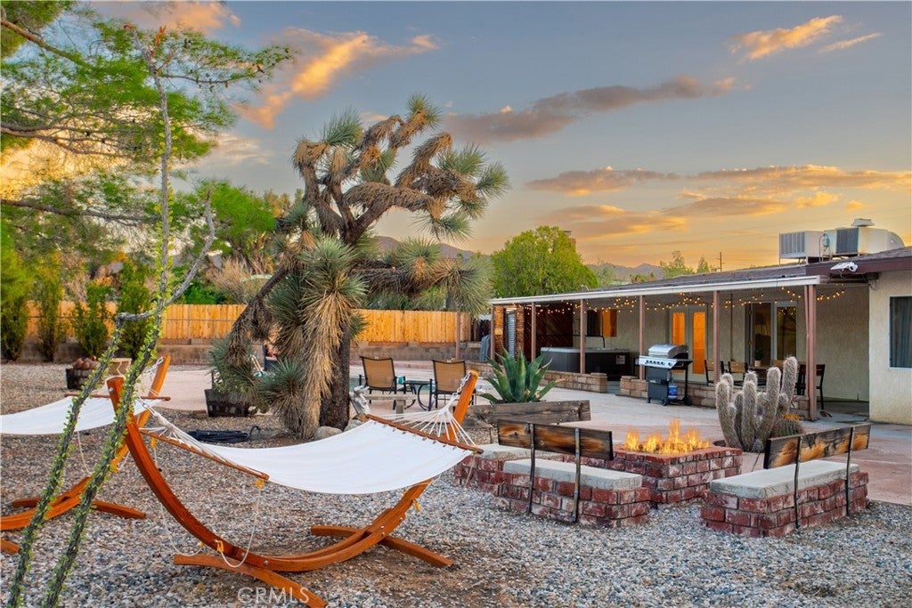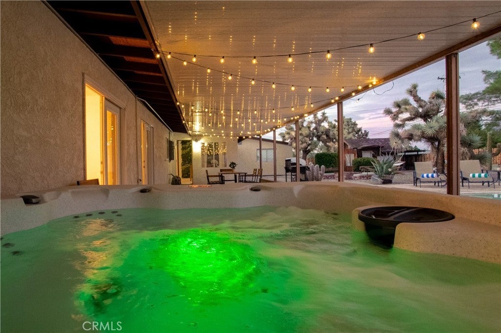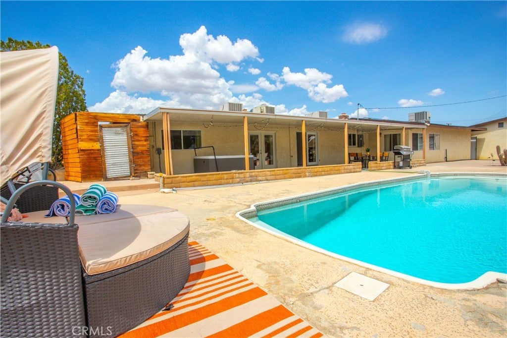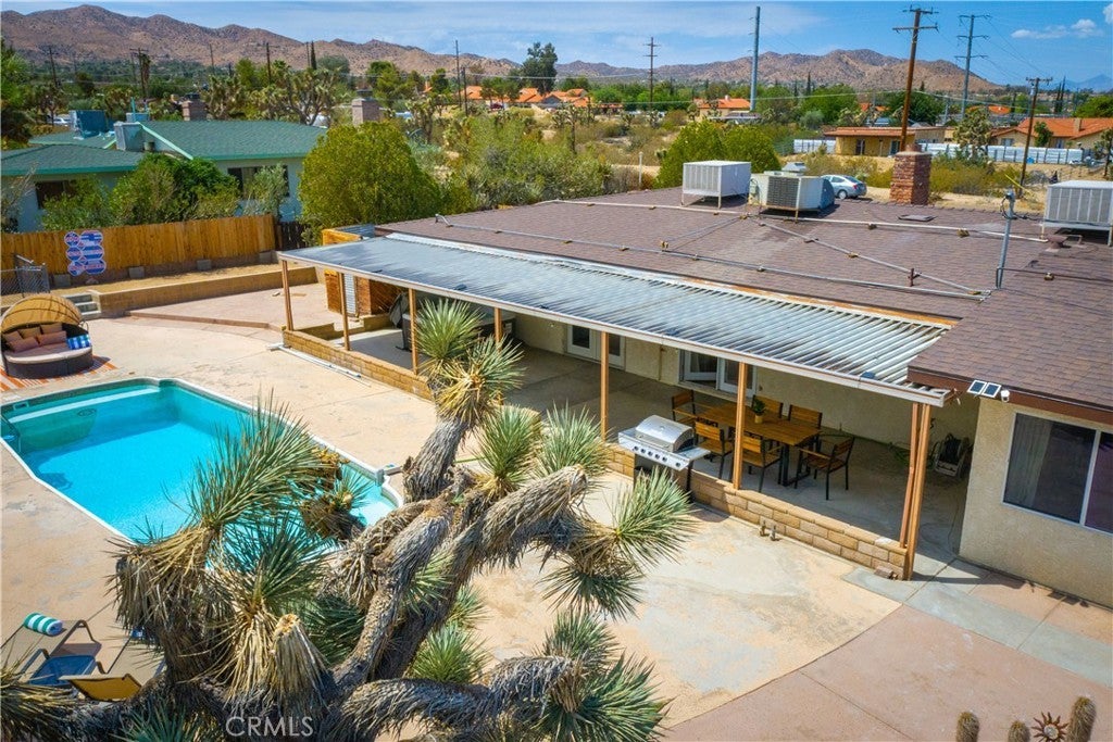 Welcome to 7737 Aster Ave, a stunning POOL home and successful Airbnb (FULLY FURNISHED / RENOVATED IN 2022) located in the heart of Yucca Valley. Nicely set on .62 acres of land, this gorgeous 4 bedroom, 3 bath desert home has been beautifully upgraded with everything intentionally chosen to bring you the perfect desert home, airbnb or weekend retreat. Upon arrival, you’re greeted with a large, semi-circle driveway and manicured yard, showcasing pride of ownership from the moment you pull in. As you step inside the 2,375 square foot home you'll instantly notice the stunning floor-to-ceiling stone fireplace, warm wood-like flooring and large windows that let in an abundance of natural light. The second living room/den (currently set up as a game room) adorns beautiful exposed beams and a charming brick-faced fireplace for added ambiance. The kitchen is complete with ample cabinet space, mosaic tile backsplash, granite counter tops and stainless steel appliances. There is also a formal dining room just off the kitchen which open to the backyard, perfect for seamless indoor-outdoor entertaining. The primary bedroom features crown molding, two closets and a private full bathroom with a single-sink vanity and a walk-in shower. The second ensuite bedroom features sliding glass doors to the back yard, dual closets and a bathroom with a pedestal sink and tiled walk-in shower. The third bedroom also opens to the backyard through French doors and the third and most opulent bathroom adorns a timeless clawfoot bathtub, crown molding, tasteful gold accents and a custom antique-style vanity. That's just the inside; the backyard is an entertainer's paradise. From the oversized covered patio to the large in-ground pool, fire pit with seating, relaxing spa & hammocks, mature landscaping and ample space for hosting, it's like having a mini resort right outside your back door. This home is complete with dual cooling (AC & Evaporative Cooling), an indoor laundry room, detached 2 car garage, pool room and dog run or horse shoe area. Last but not least, take in the gorgeous views of the snowcap mountains and the breathtaking cotton candy sunsets right from your front porch. It's just a short 11 minute drive to Joshua Tree or a quick 35 min drive to Palm Springs so you're close to all the wonderful attractions our desert has to offer. Schedule a showing today & let this home's charming allure do the rest. Your new desert home or weekend retreat awaits!
