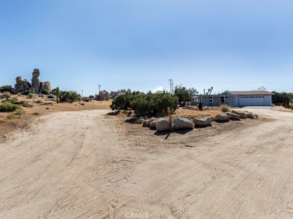 BOULDERS! PRIVACY! Fabulous 2-bedroom, 1-bathroom home is a hidden gem on a spacious 1.39 acre lot, offering ample room for both relaxation and entertainment. Set in the breathtaking desert landscape, this property showcases a unique blend of character and tranquility. Built in 1959, this 974-square-foot home exudes a sense of history and warmth, with a two-car garage providing convenient parking options. The home has been upgraded with mini-split systems for heating and cooling along with waterproof laminate flooring. The expansive lot is huge - but there is an opportunity to purchase an additional 1.35-acre parcel ensuring plenty of space for outdoor activities and future developments. Step outside to discover a meticulously landscaped yard adorned with native desert flora and stunning natural boulders, creating a harmonious blend of natural beauty and human craftsmanship. This property is not just a house; it's a true sanctuary where you can soak in the peaceful surroundings and embrace the essence of desert living.