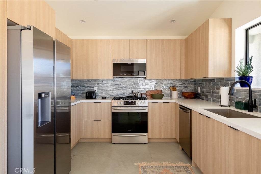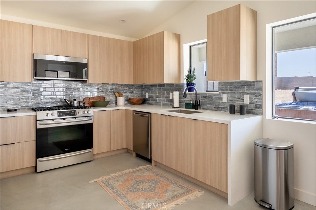 Stunning 4-Bedroom, 2-Bath Home on the Mesa in Yucca Valley! Set on a desirable corner lot with over half an acre of land, this 2022-built home offers the perfect blend of modern comfort and desert charm. Featuring 1,902 sq. ft. of open living space, soaring ceilings, and polished concrete floors throughout, this property is designed with both style and functionality in mind. The heart of the home is the expansive kitchen, complete with quartz countertops, stainless steel appliances, and a generous island that flows seamlessly into the spacious living room—ideal for hosting family and friends. Each of the four bedrooms offers plenty of room to make your own, while the primary suite is a true retreat with high ceilings, double vanity sinks, a huge walk-in closet, and a spa-like bathroom. Additional highlights include central heating and A/C, an indoor laundry room, and a covered back patio—perfect for enjoying peaceful mornings or relaxing evenings under the desert sky. This move-in ready home checks every box. Don’t miss your chance to own a modern desert oasis in beautiful Yucca Valley. Schedule your showing today!