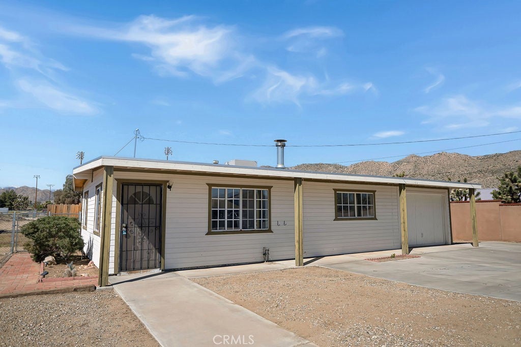 Priced to sell! This 2-bedroom, 1-bathroom 1960s gem sits on just under 1 acre of land in the heart of Yucca Valley! As you drive to the property, you’ll notice its ideal location. Not far from restaurants, shopping, and other attractions in Yucca Valley, convenience is at your fingertips. As you pull up to the property, you’re greeted by chain-link fencing, a large concrete driveway, and charming wood paneling siding. Stepping through the front door, you’ll find carpeted flooring, plenty of natural light flowing through the well-placed windows, and a wood-burning stove that ties it all together. The kitchen and dining area are equipped with tile backsplash, cabinetry, a microwave, a refrigerator, an oven, and direct access to the backyard! The full bathroom features a built-in cabinet, a vanity, a medicine cabinet, and a full bathtub/shower with a mosaic-tiled backsplash. Each bedroom has plenty of space and includes closets, ceiling fans, and carpeted flooring. Stepping into the backyard, you’re ready to host barbecues or get-togethers. A nice brick patio with a mix of chain-link and wood fencing is set up and provides a great spot for your dogs! Outside of the fence line, the lot extends much further, with plenty of space for a pool, spa, storage shed, or anything you can dream of! Additional features include an upgraded evaporative cooler, a one-car garage with an evaporative cooler, and more! At such a great price, this one won’t last long, so call today before it’s gone!