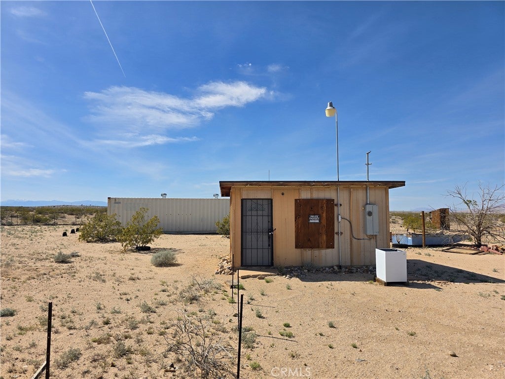 Whimsical Recreational Cabin on 5 Acres with Water & Stunning Mountain Views! Escape to this charming and whimsical cabin nestled on 5 acres in beautiful San Bernardino County. Surrounded by panoramic mountain vistas, this property offers a perfect getaway from the city. The cabin features an installed electrical panel (currently disconnected), providing a blank canvas for your personal touch. Enjoy ample storage with two large containers filled with goodies and a camper shell ready for adventure. The land includes access to water, making it ideal for outdoor fun and relaxation. Located outside of city limits, this property offers privacy and tranquility. Be sure to check the San Bernardino County website for rules and restrictions. As night falls, marvel at a sky full of stars — an ideal spot for stargazing and unwinding in nature's serenity. Whether you're looking for a weekend escape or a future home site, this property is a unique opportunity to embrace the Desert lifestyle.