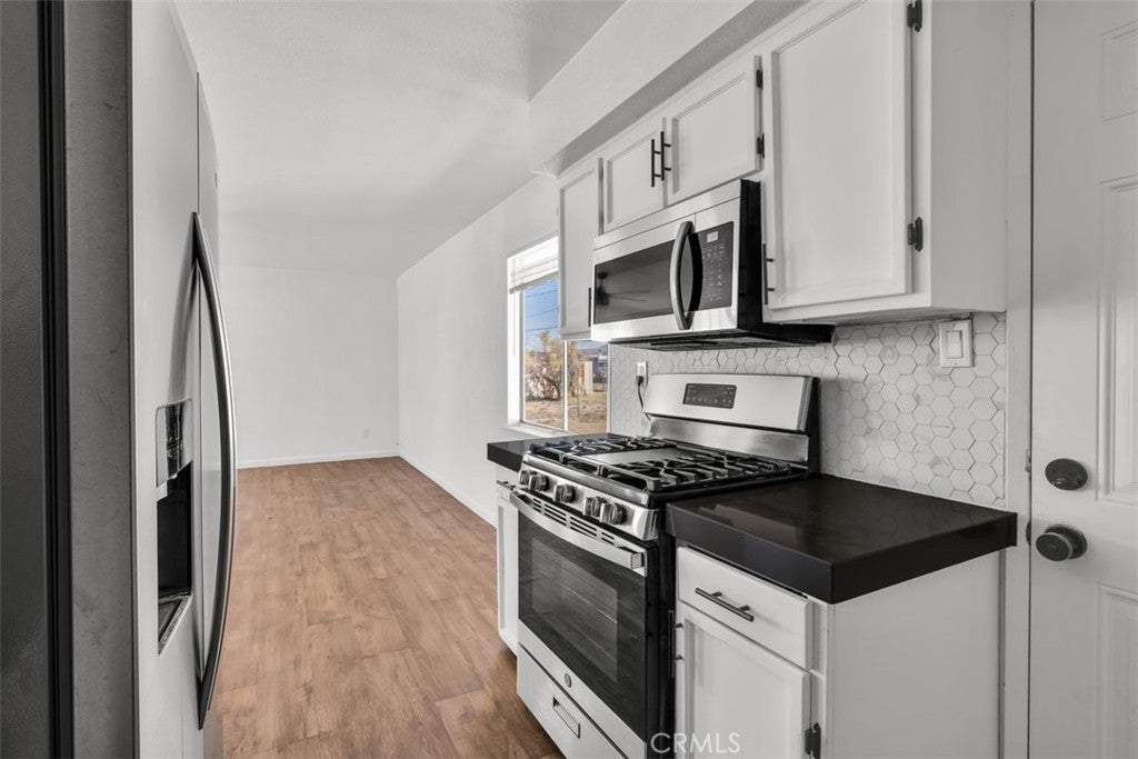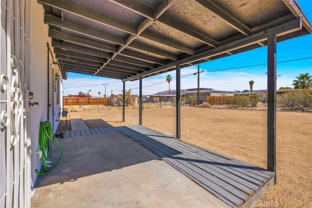 Welcome to this fully updated 2-bedroom, 1-bath home offering a cozy and efficient layout designed for modern desert living. Whether you're looking for a full-time residence or weekend escape, this one delivers. Step inside to an open and functional floor plan filled with natural light, updated flooring, fresh interior paint, and modern fixtures throughout. The remodeled kitchen features quartz countertops, upgraded cabinetry, stainless steel appliances, and a clean, contemporary design that flows seamlessly into the living area—ideal for both daily living and entertaining. The bathroom has been tastefully renovated with a walk-in shower, custom tile work, updated vanity, and sleek black fixtures for a modern finish. Both bedrooms are well-sized and offer comfortable, efficient use of space. Outside, enjoy the wide-open desert setting with plenty of room to relax, entertain, or create your own outdoor oasis. The property includes a convenient laundry area, ample parking, and space for RV access or future expansion. Located in Twentynine Palms, just minutes from the Marine Corps Air Ground Combat Center, local schools, shopping, and dining. Perfect for the first-time home buyer or long-term rental with the Marine base so close. Low-maintenance desert landscaping and move-in ready condition make this a great opportunity in today’s market. Don’t wait—homes in this price range in 29 Palms are moving quickly. Schedule your showing today.