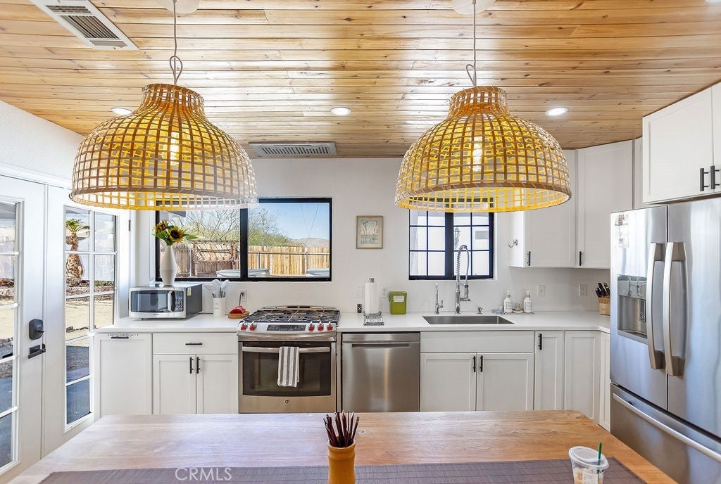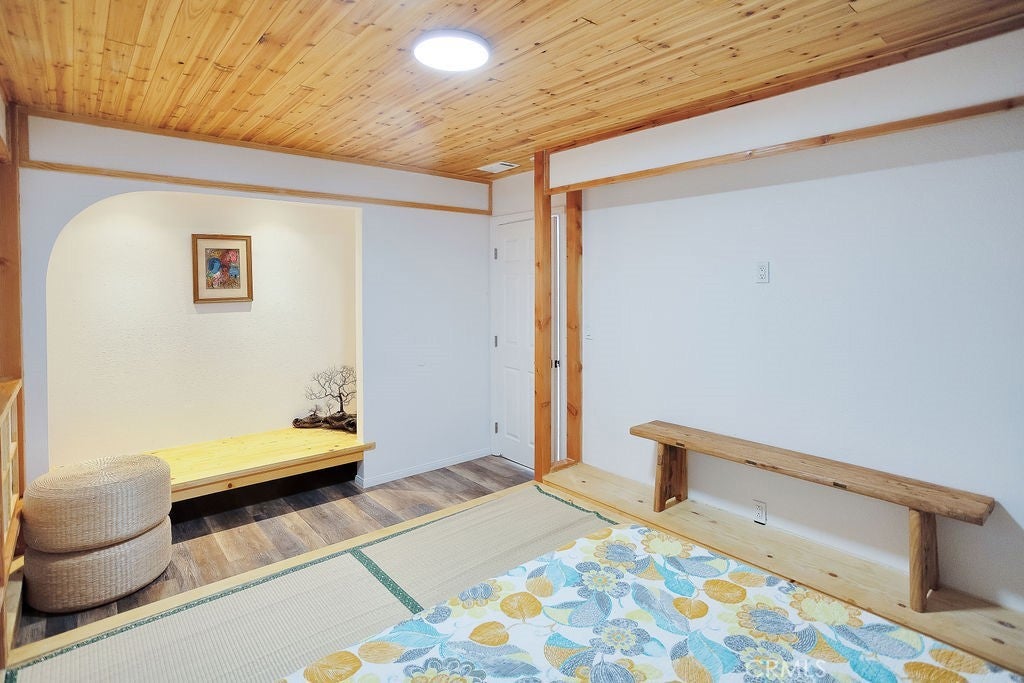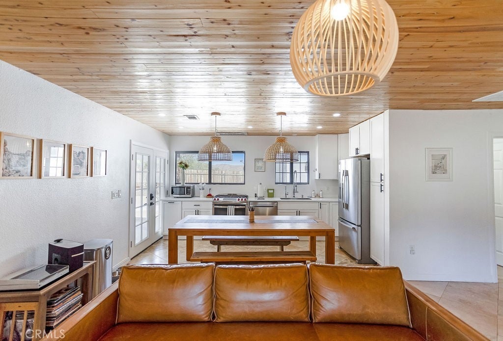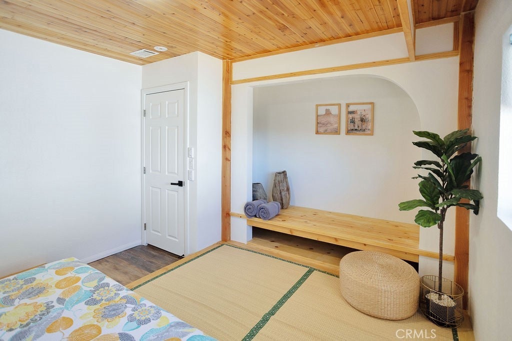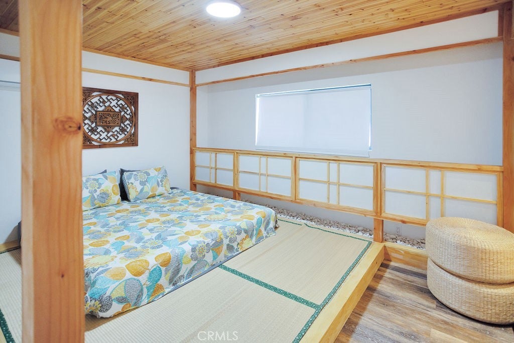 Experience Tranquility in a Stunning Modern 3-Bedroom, 2-Bathroom Japanese-Themed Home! Prepare to embark on a journey into one of the most extraordinary properties ever to grace the Hi-Desert real estate market! From the moment you drive into Joshua Tree Village, you’ll be enchanted by its charming storefronts, delightful dining options, and the breathtaking backdrop of the iconic boulders of Joshua Tree National Park. As you pull into the driveway, you’re greeted by a tasteful exterior and inviting desert landscaping that sets the stage for the magic that awaits inside. Step through the front door and be transported to a realm where modern aesthetics meet stunning Japanese-inspired finishes. The living area boasts exquisite tile flooring, captivating light fixtures, a custom wood-treated ceiling, and a beautiful wood accent wall—every detail meticulously crafted to create an unparalleled atmosphere. The kitchen is an entertainer's dream! It opens seamlessly to the living area and features elegant modern cabinets, luxurious quartz countertops, a spacious sink, and sleek stainless steel appliances. Each guest bedroom is a serene sanctuary, showcasing a delightful blend of contemporary Japanese decor and accents that promise to enhance your experience. The beautifully remodeled guest bathroom includes a custom mirror, a new vanity, and a stylish tiled shower. But wait, there’s more! The primary bedroom is a true retreat, where the custom wood ceiling continues to inspire. Enjoy the unique wood platform meditation deck, wood-style tile flooring, and a private bathroom that features a stunning vanity and a spacious soaking tub with a shower. Step outside to your private backyard oasis, the perfect haven to unwind and soak in the soft desert breeze after a long day. Whether you’re dining under the stars or soaking in the mesmerizing Joshua Tree night sky from your stargazing patio, this space offers an experience unlike any other. Additional features include privacy wood fencing, recessed lighting, a detached garage, dual-pane windows, HVAC for year-round comfort, and so much more! Don’t miss out on this once-in-a-lifetime opportunity! Call today for your private showing and make this extraordinary property your own before it’s gone!