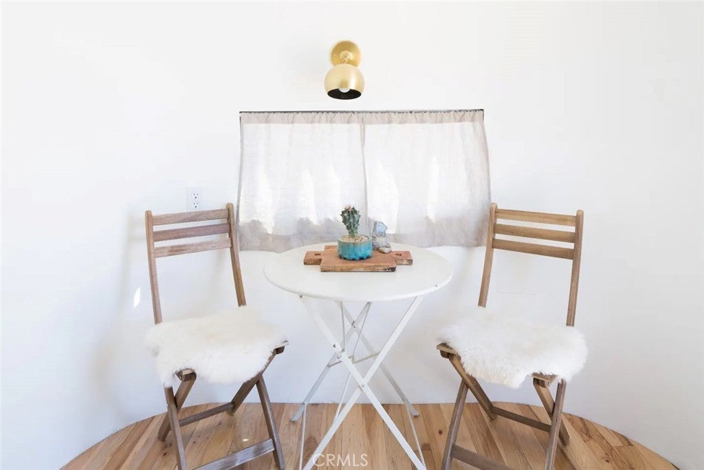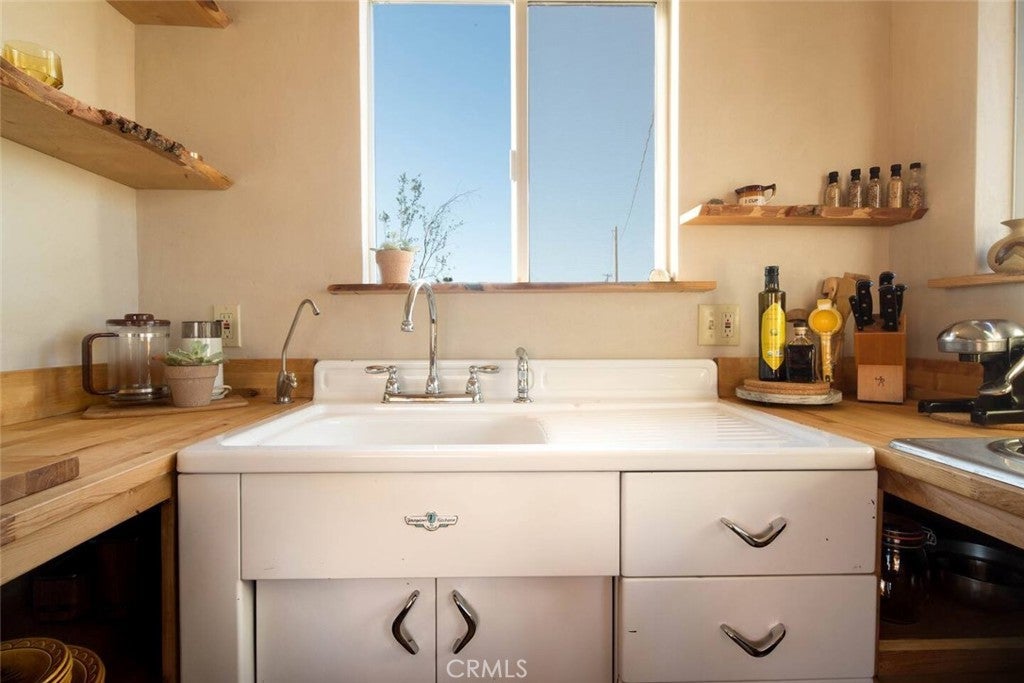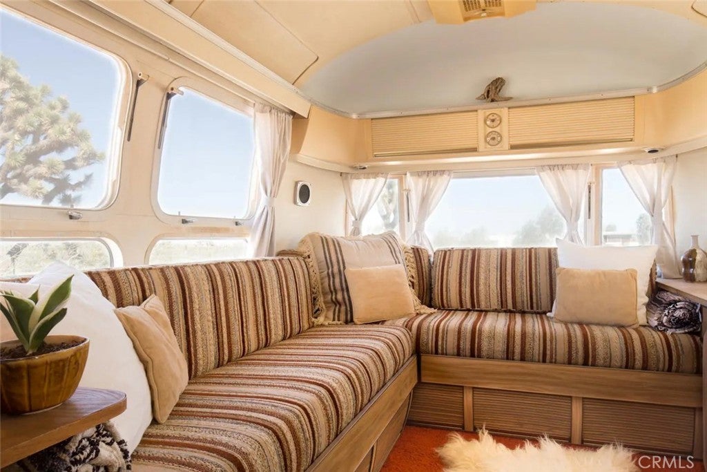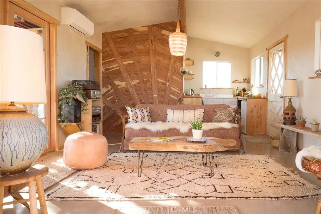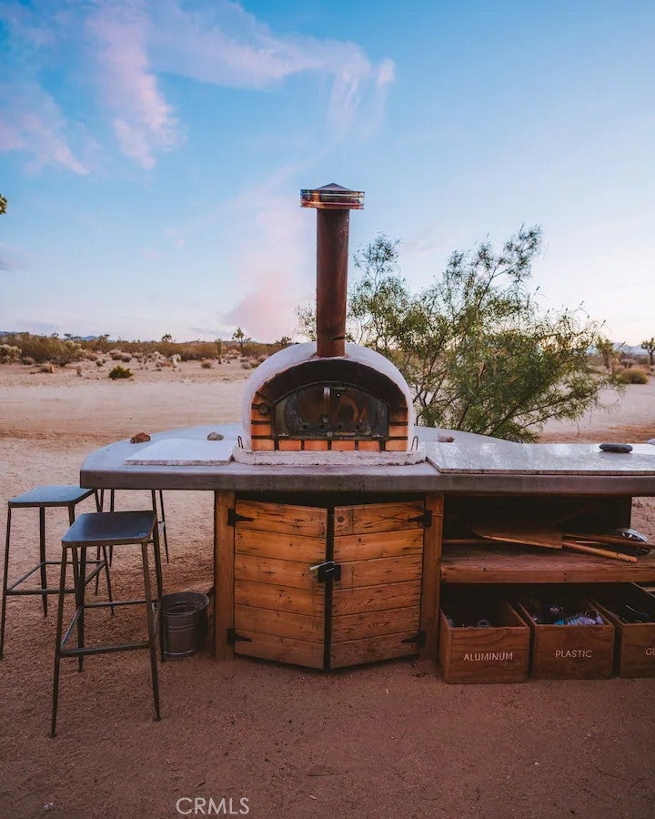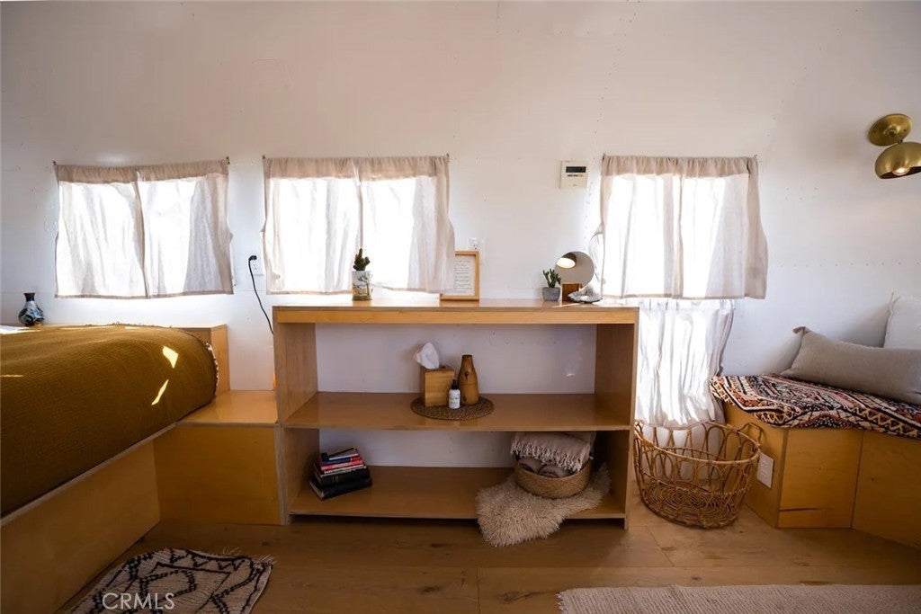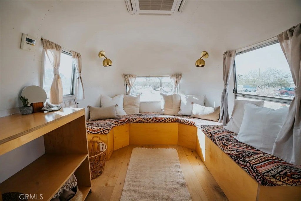 Discover vintage allure and modern luxury at your own haven in Joshua Tree, California. This lovely small home features flexible, indoor and outdoor living. The interior features 1 bedroom and 1 bathroom and a cozy kitchen space and high ceilings, and mini split unit for heating and air conditioning. The Exterior is expansive, kitchen with pizza oven and BBQ, showers, and auxiliary bathroom/ laundry building. The Full 10 Acres are fenced in with automatic main gate and 3 other access gates. Relax in the spa, take a dip in cold plunges, and enjoy solace amid the breathtaking scenery. Dine under the stars in on the patio, savoring meals with friends while surrounded by the vast desert sky. As the sun sets, witness the desert's diurnal life—quail, dove, jack rabbits stir under LARGE iconic Joshua trees. Joshua Tree Acres is Nestled on 10 acres of desert landscape, two vintage and two meticulously restored Airstreams and a Vintage Shasta offer a unique blend of charming, and comfortable way *rough it*Situated in Joshua Tree's enchanting landscape, your new home provides front-row seats to stunning sunsets and star-studded nights. This unique energy defines you every moment. Escape the ordinary and embrace the extraordinary, a journey into vintage inspired luxury, natural wonder, and inner peace. Includes all 6 Trailers and Furnishings. New 400 Amp panel