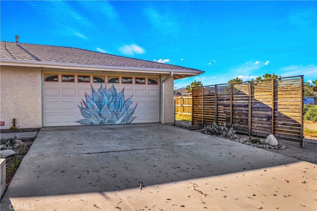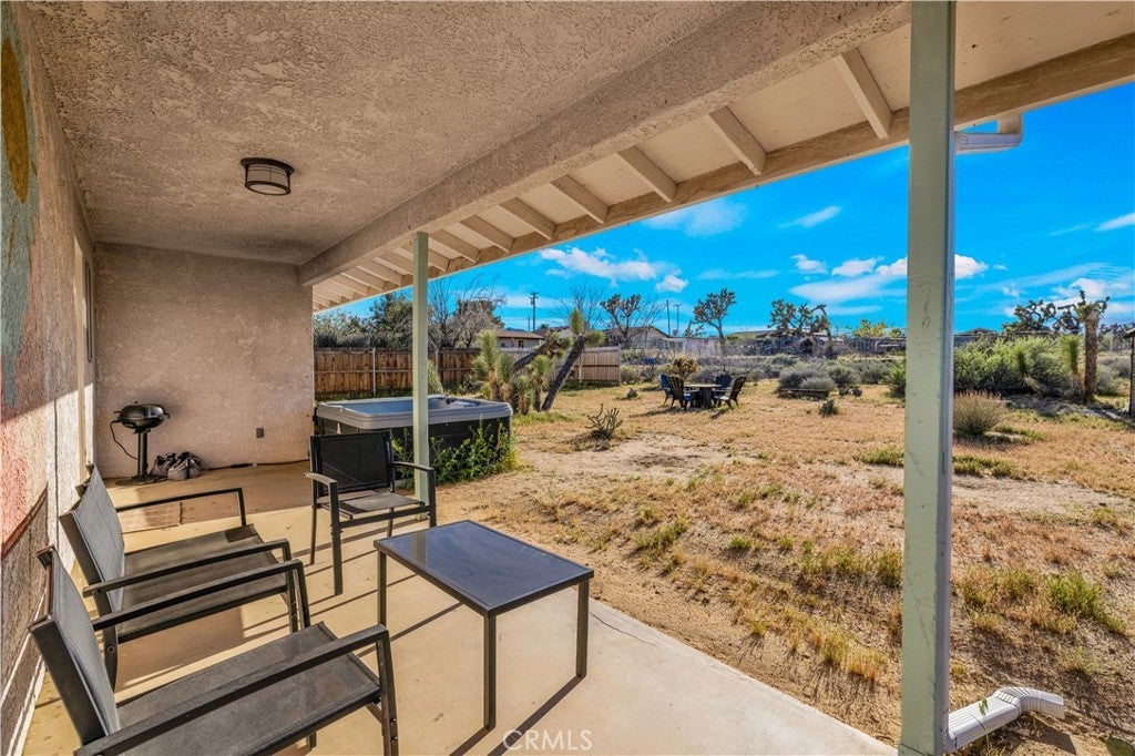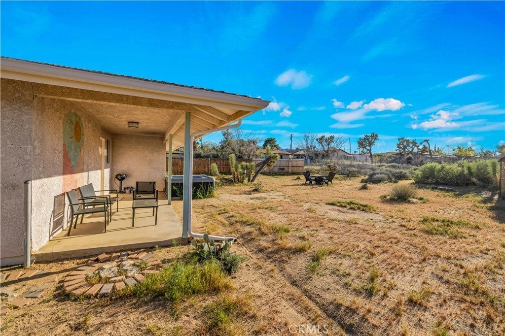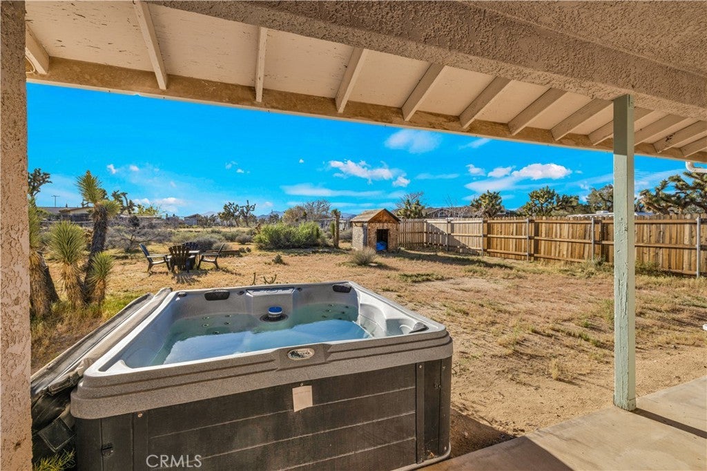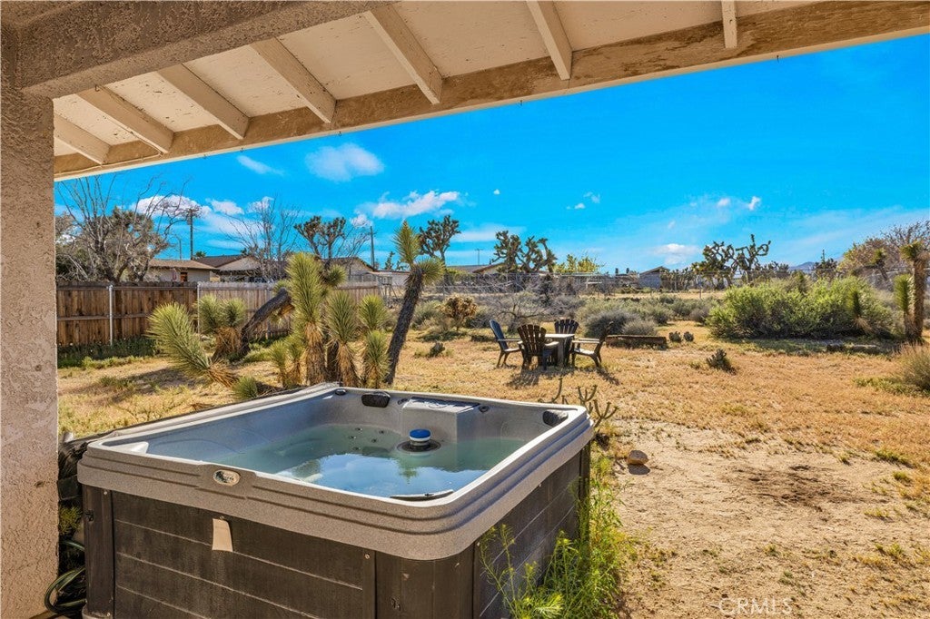 Beautifully fully remodeled 2-bedroom, 2-bath home in the heart of Yucca Valley, offering style, comfort, and an unbeatable location. This adorable home has everything you need, from a spacious yard to modern upgrades throughout. As you approach the property, you’ll appreciate the long driveway leading to the attached two-car garage, providing plenty of parking and convenience. Step inside and you’ll immediately notice the polished concrete floors that flow throughout the home, creating a clean and modern feel. The open-concept layout features a fully remodeled kitchen that flows seamlessly into the living and dining areas, complete with stainless steel appliances, ample counter space, and plenty of storage. The living room is generously sized and includes a ductless mini-split system for efficient heating and cooling. Both bedrooms are large and comfortable, with the guest bathroom featuring a floating vanity and shower-tub combo, while the primary bathroom includes a stylish walk-in tile shower. The attached two-car garage offers added functionality with laundry hookups, a utility sink, and additional storage space. Step outside to the back patio where you’ll find a large fenced backyard, perfect for relaxing or entertaining. Enjoy the above-ground spa and take in the beautiful western views, creating the perfect setting for desert evenings. This home is move-in ready and offers the perfect blend of modern upgrades and location. Schedule your showing today before it’s gone.