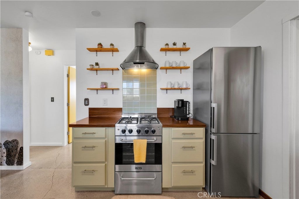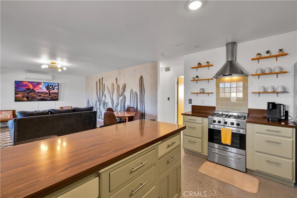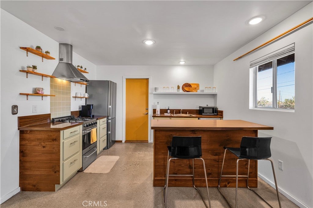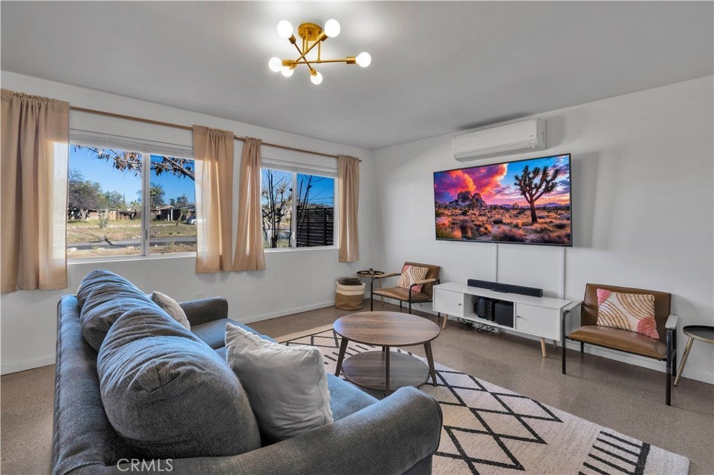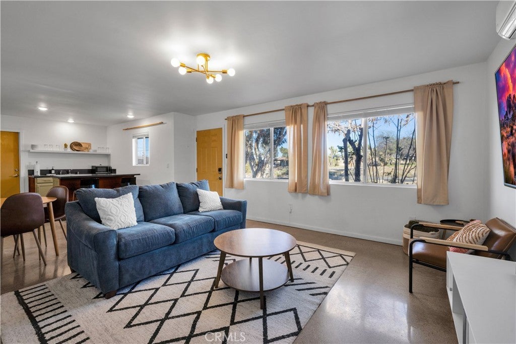 Beautifully fully remodeled 2-bedroom, 2-bath home in the heart of Yucca Valley, offering style, comfort, and an unbeatable location. This adorable home has everything you need, from a spacious yard to modern upgrades throughout. As you approach the property, you’ll appreciate the long driveway leading to the attached two-car garage, providing plenty of parking and convenience. Step inside and you’ll immediately notice the polished concrete floors that flow throughout the home, creating a clean and modern feel. The open-concept layout features a fully remodeled kitchen that flows seamlessly into the living and dining areas, complete with stainless steel appliances, ample counter space, and plenty of storage. The living room is generously sized and includes a ductless mini-split system for efficient heating and cooling. Both bedrooms are large and comfortable, with the guest bathroom featuring a floating vanity and shower-tub combo, while the primary bathroom includes a stylish walk-in tile shower. The attached two-car garage offers added functionality with laundry hookups, a utility sink, and additional storage space. Step outside to the back patio where you’ll find a large fenced backyard, perfect for relaxing or entertaining. Enjoy the above-ground spa and take in the beautiful western views, creating the perfect setting for desert evenings. This home is move-in ready and offers the perfect blend of modern upgrades and location. Schedule your showing today before it’s gone.