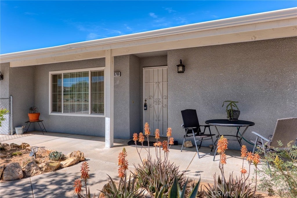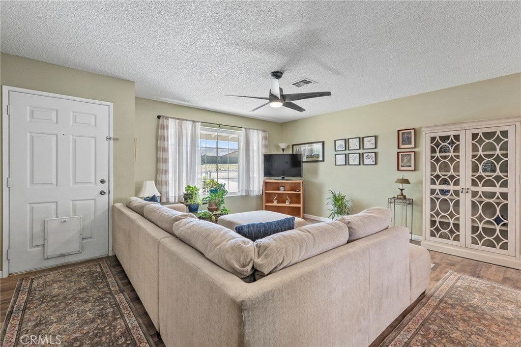 One of the cleanest and most inviting corner properties you’ll find, this home immediately stands out with its curb appeal, thoughtful upgrades, and private setting. Featuring both front and rear fencing, including a fully enclosed backyard with privacy fencing, this property is framed by mature trees and natural desert landscaping, creating a peaceful and secluded atmosphere. Enjoy your morning coffee on the front porch or unwind in the spacious rear patio area designed for relaxing and entertaining. Step inside to a bright, vibrant interior filled with natural light, custom painted walls, unique ceiling fans, dual-pane windows, and attractive wood style flooring that flows seamlessly throughout. The dining area connects beautifully to a stunning kitchen complete with custom painted cabinetry and a stylish tile backsplash, offering both charm and functionality. A wide hallway with built in storage cabinets adds convenience, while both bedrooms are well sized and inviting. The spacious two car garage provides plenty of room for vehicles, storage, or workspace. Out back, the private patio area is truly special, perfect for hosting gatherings or simply enjoying quiet desert evenings under the stars. This is a hidden gem that delivers comfort, style, and privacy all in one. A must-see property that you won’t want to miss, come experience it for yourself today.