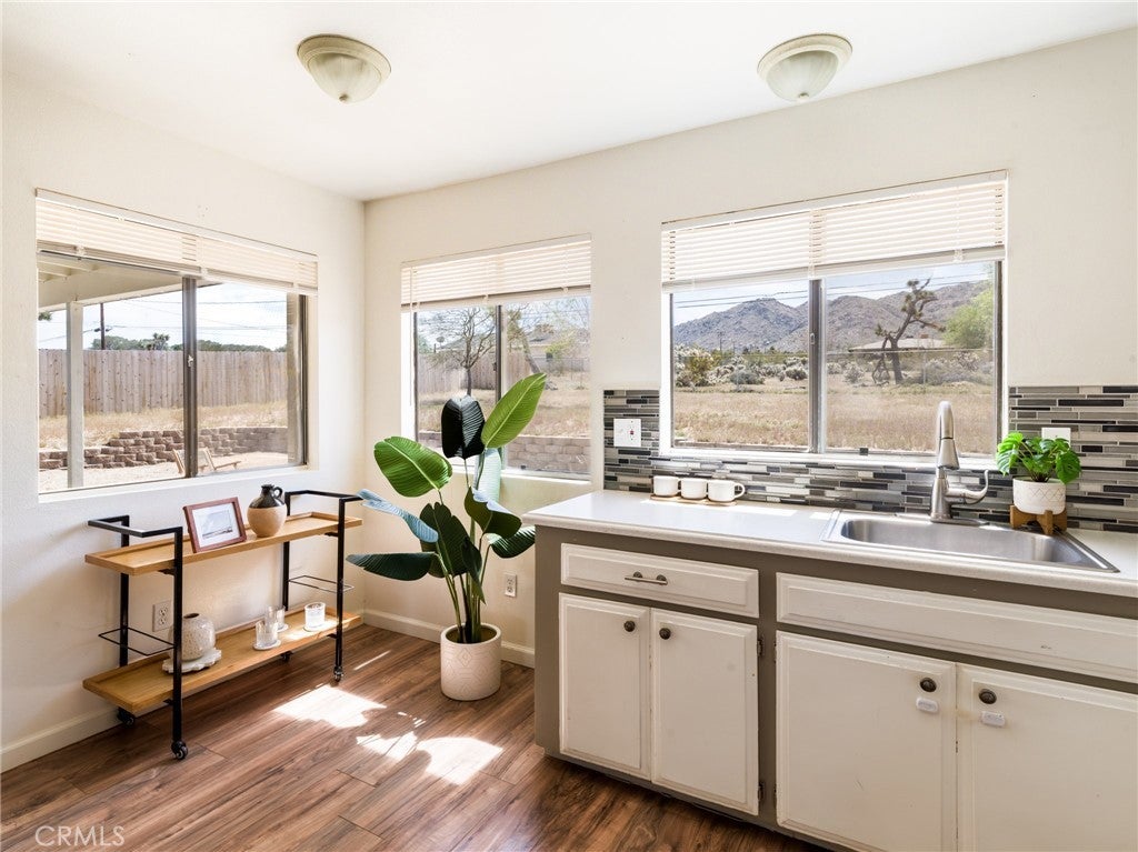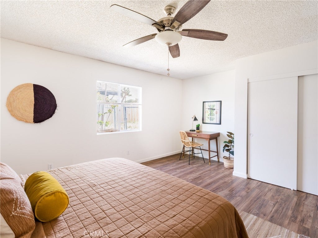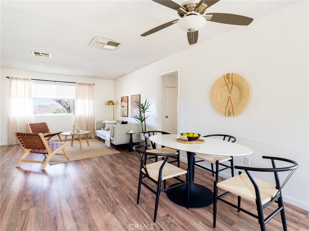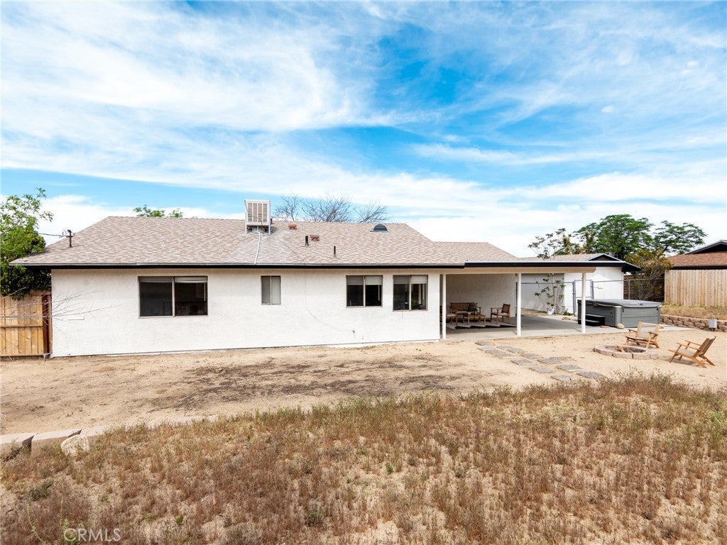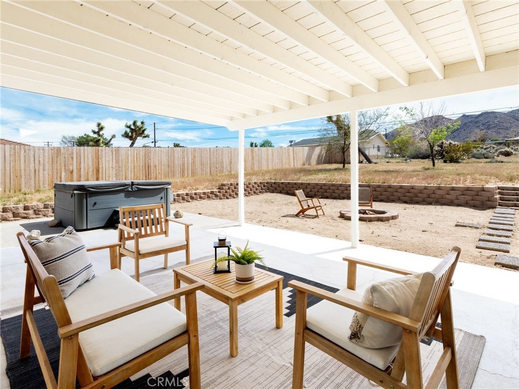 Upper Friendly Hills Gem! Elevated above the street with sweeping views across the Joshua Tree basin and the hills of JTNP rising just beyond. Desert-chic vibes flow through this four-bedroom, two-bath home with an open floor plan and expansive north-facing views from the living room over the valley below. The spacious backyard features a hot tub for stargazing and plenty of room for a future in-ground pool. Just 5 minutes to Joshua Tree National Park’s West Entrance and 2 minutes to downtown shops, restaurants, and cafés. With some of the hi-desert’s highest-rated schools nearby and hiking trails within walking distance, this location is ideal for full-time living, a cozy vacation home near town and the park, or an income property with strong rental potential. See this now and snap it up before it's gone!