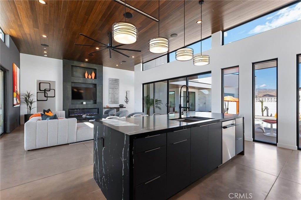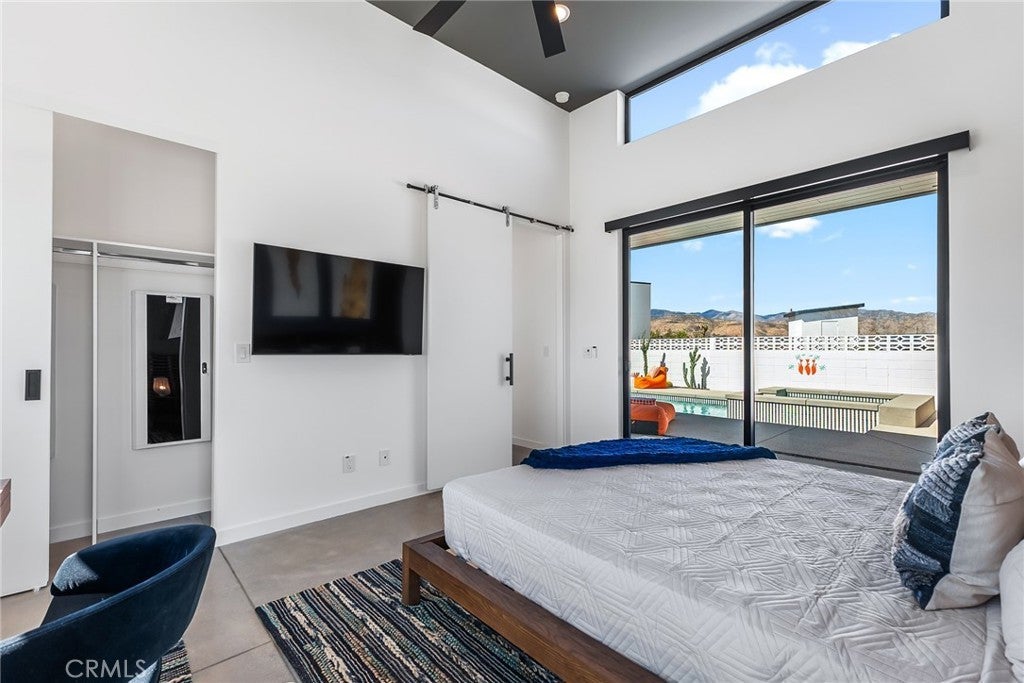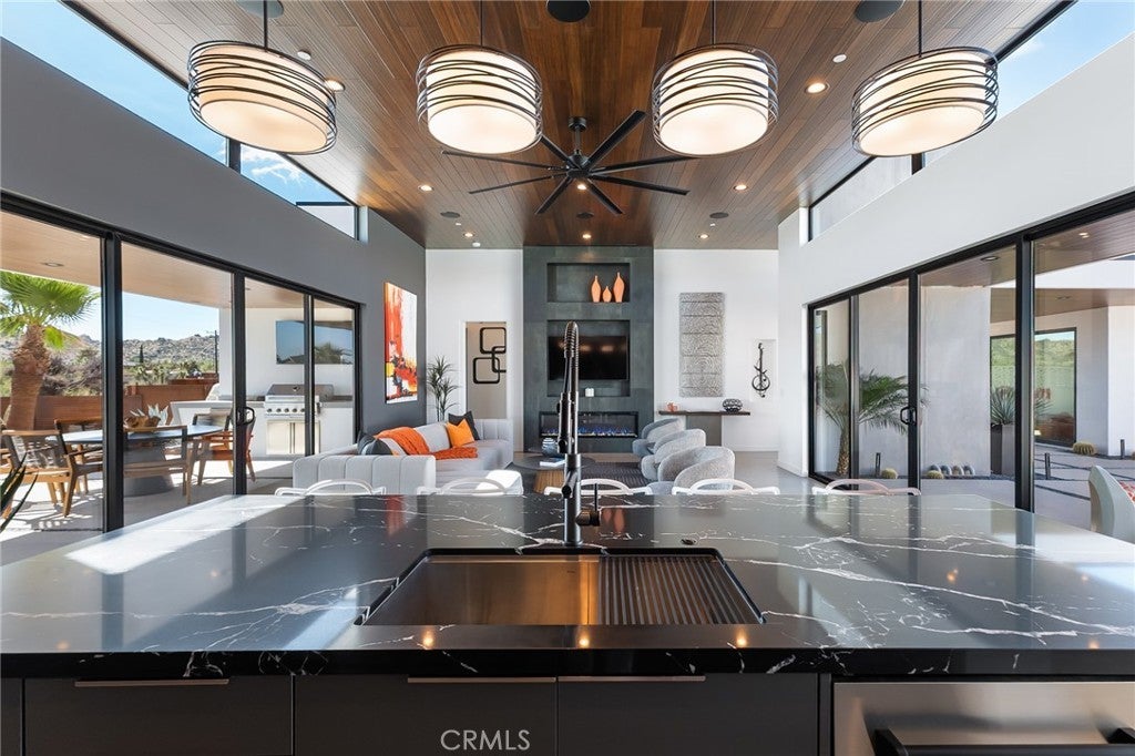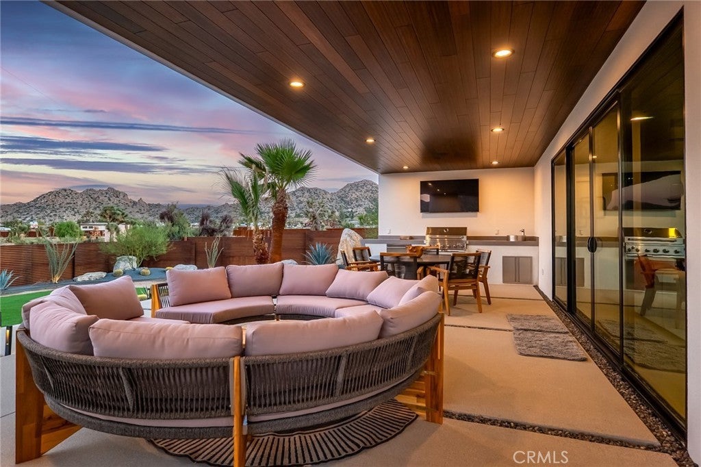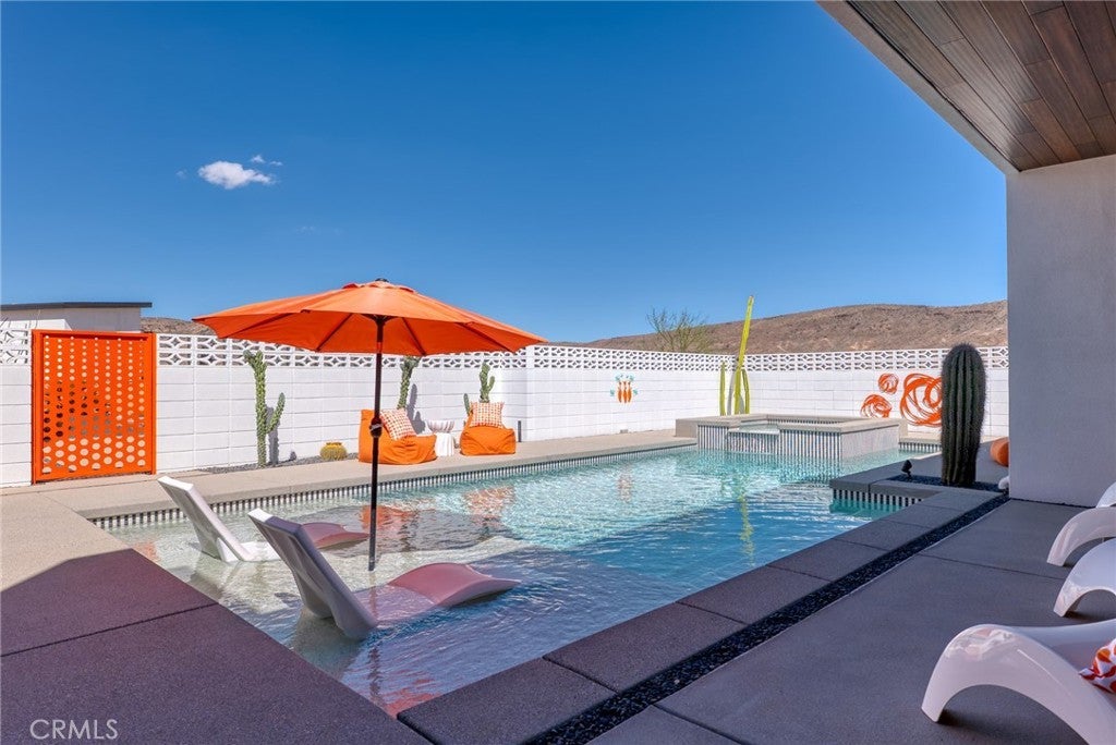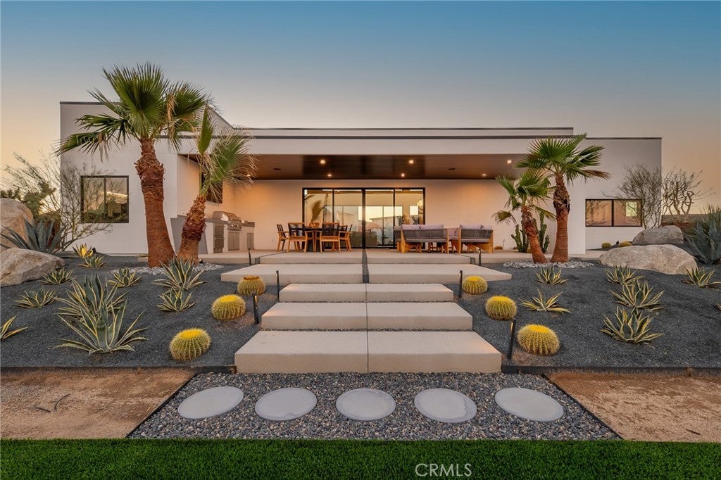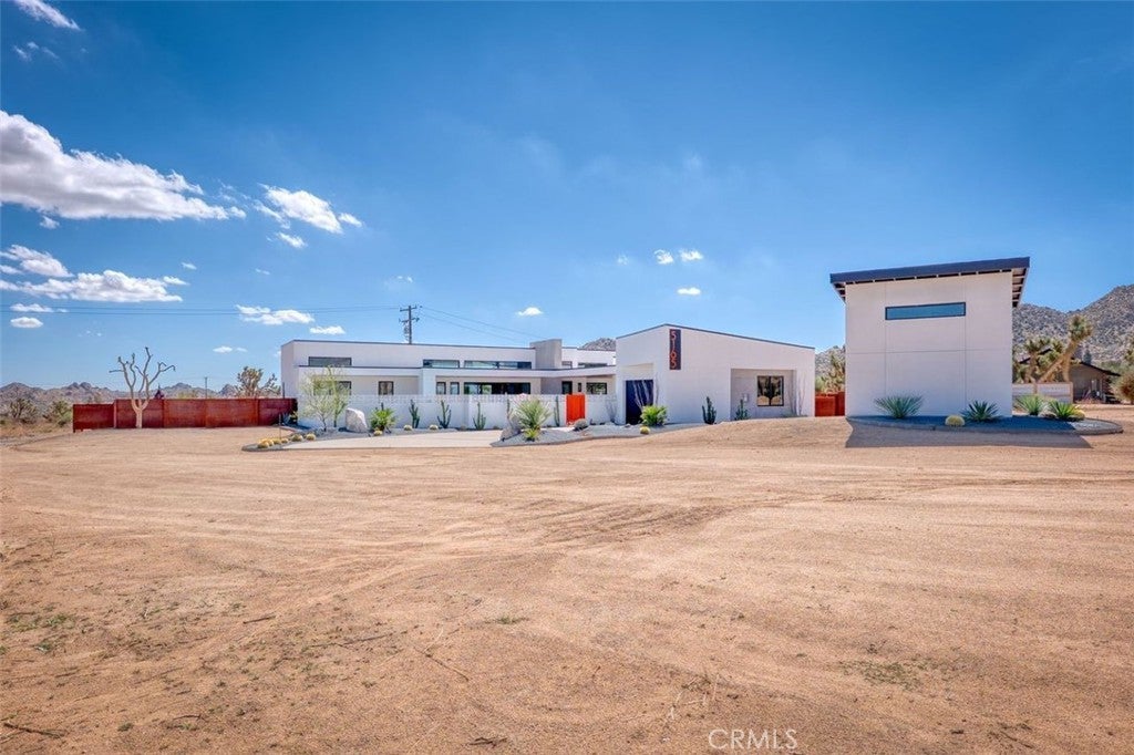 5165 Roy Rogers Road Modern Desert Masterpiece. In the high desert, silence, texture, and light becomes architecture. At 5165 Roy Rogers Road, design and landscape exist in perfect harmony a refined balance of modern form and natural stillness. Set on 1.26 acres in one of Pioneertown’s most coveted settings, this three-bedroom, three-bath residence reimagines desert modern living. A bold white-and-black façade, framed by a breeze-block courtyard and signature orange gate, creates a striking first impression both grounded and sculptural. Inside, expansive walls of glass and polished concrete floors allow natural light to move effortlessly through the space. The open-concept great room flows into a designer kitchen featuring bespoke cabinetry, waterfall-edge stone countertops, and subtle mid-century influences that soften the clean architectural lines. Each bedroom suite offers its own sense of privacy and calm spaces designed for rest, reflection, and a seamless connection to the surrounding landscape. Thoughtfully curated and fully turn-key, the home blends elevated design with everyday comfort. Outdoors, a private courtyard centers around a sleek in-ground pool and spa, surrounded by native landscaping, sunlit patios, and a covered outdoor kitchen designed for year-round entertaining under endless desert skies. Ideally located in the heart of Pioneertown, just moments from iconic destinations like Pappy & Harriet’s and the Red Dog Saloon, this home captures the essence of modern living rooted in desert history. 5165 Roy Rogers Road where Palm Springs polish meets High Desert soul. A timeless architectural retreat, ready to be experienced, shared, and remembered.