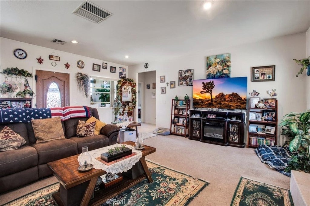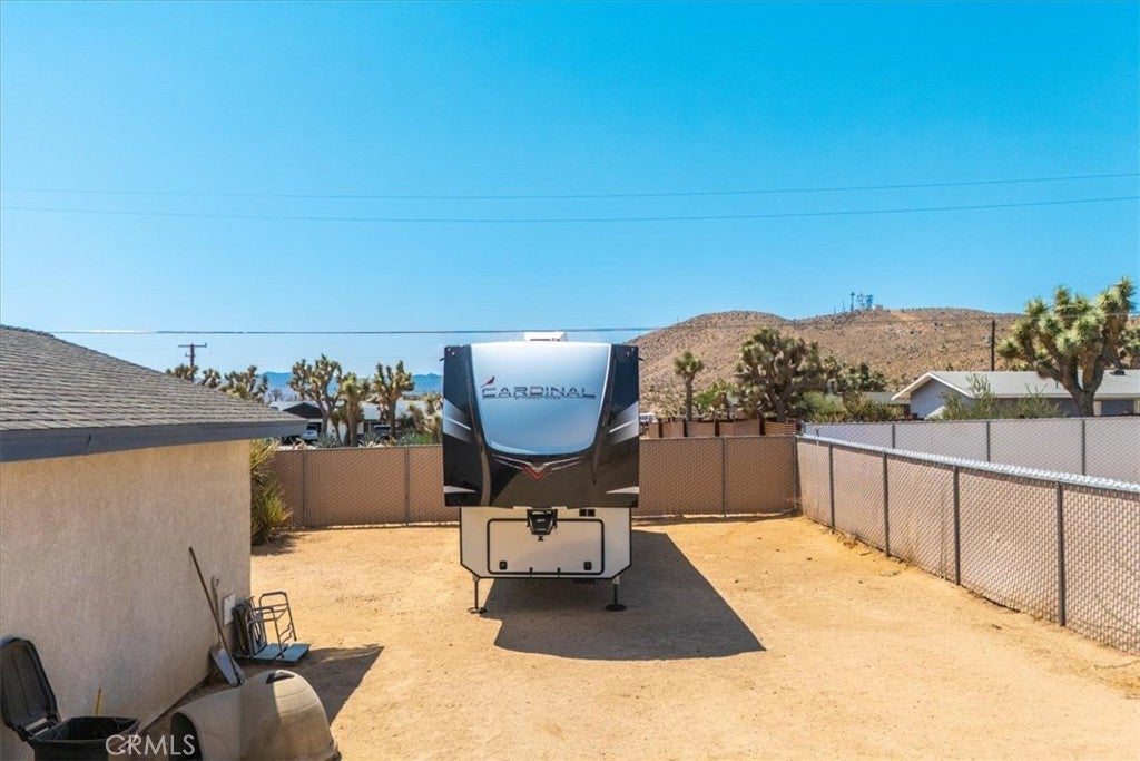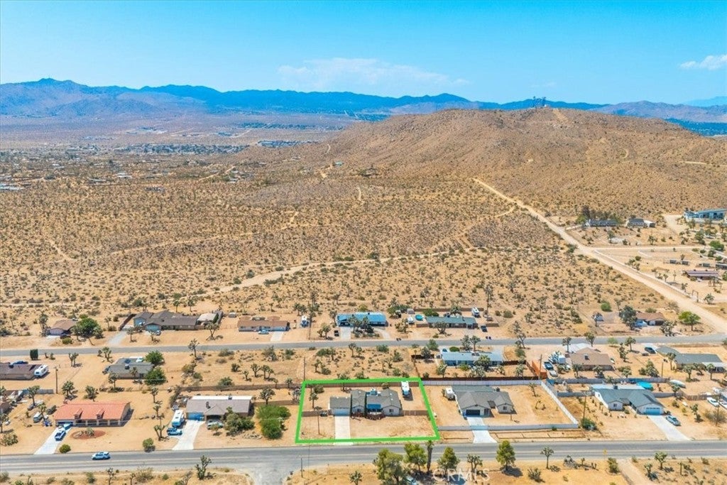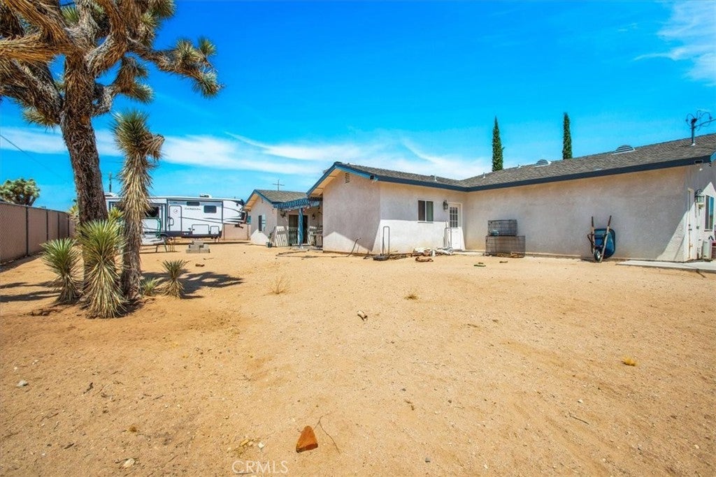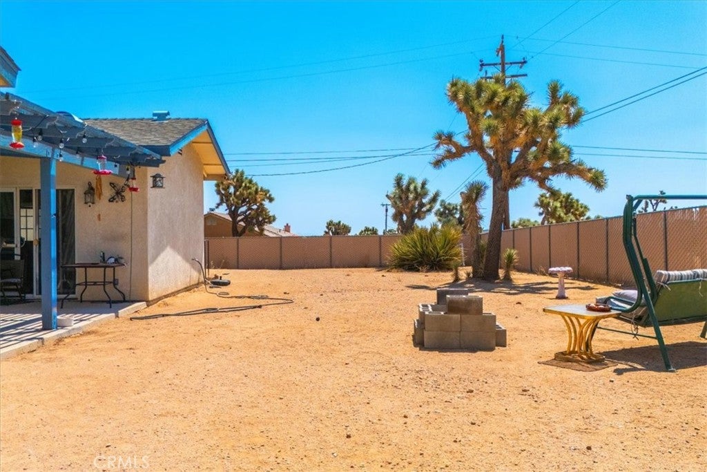 Good sized, quality built 3 bedroom, two bath home on a large lot on Yucca Mesa, just five minutes to town but with a very country feel. Paved road with easy access to all shopping, restaurants, Joshua Tree Village, Downtown Yucca Valley, Joshua Tree National Park and 29 Palms. Big Backyard with privacy fencing, a very private front patio, covered back patio, a large living room, spacious kitchen and two full bathrooms. Also features central air conditioning and heating as well as a ducted swamp cooler and a beautiful fireplace in the living room. With great views and a perfect location for commuting anywhere in the high or low desert. Includes washer and dryer, refrigerator and kitchen appliances. New water heater and garage door opener. Come and see what life is like on the Mesa, best location in the Desert!