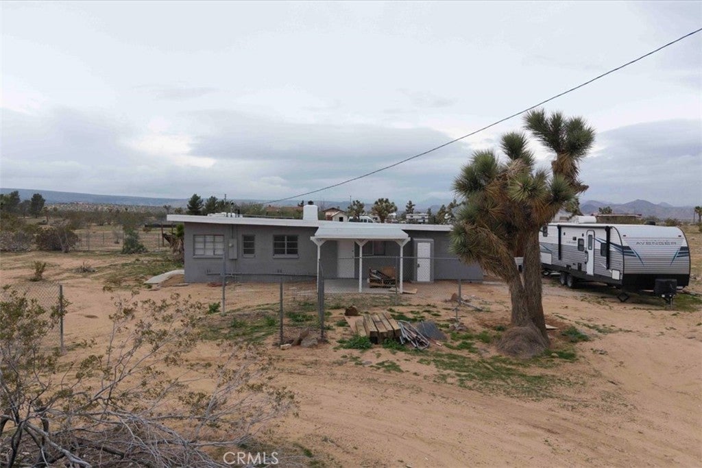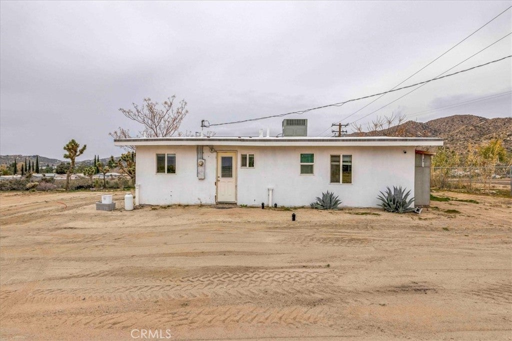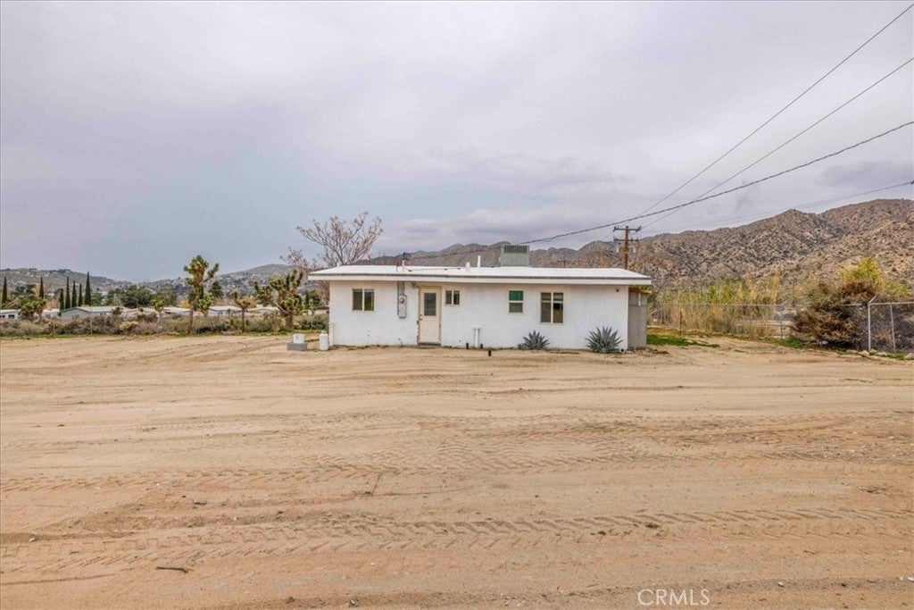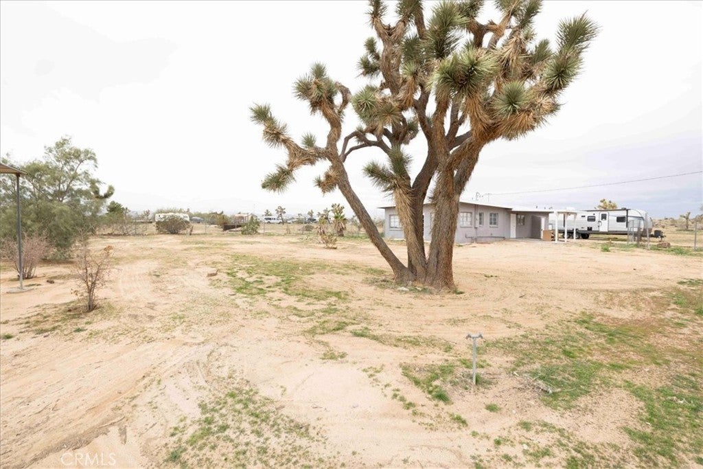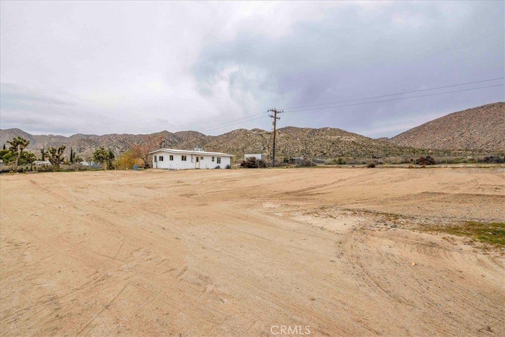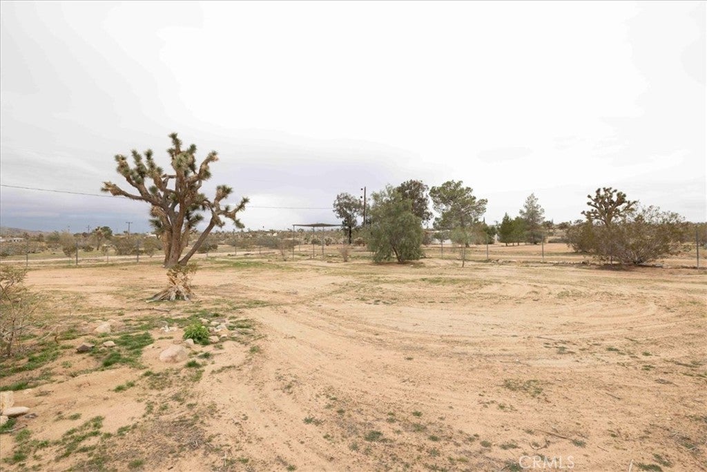 Set on 2 acres in the sought-after Flamingo Heights area of Yucca Valley, this 3 bedroom, 2 bath home offers space, privacy, and classic high desert character surrounded by mature Joshua trees and wide-open views. The expansive living room is a true centerpiece, featuring wood-beamed ceilings, wood-look flooring, built-in storage, and a dramatic stone hearth corner fireplace that anchors the space with warmth and charm. The kitchen is both functional and inviting, with quartz countertops, warm wood cabinetry, and large windows that bring in natural light and desert scenery. The primary bedroom is generously sized and filled with light, complete with a ceiling fan and an attached bath featuring a jetted tub/shower combo and a stylish basin sink. A comfortable guest bedroom includes two closets for ample storage, while the second bathroom stands out with a claw foot tub, a separate quartz-enclosed shower, and a pedestal sink. The third bedroom offers large windows and its own outdoor access, making it ideal for guests, a home office, or creative space. Outside, the property showcases mature Joshua trees, open desert surroundings, and sweeping views that define the Flamingo Heights lifestyle. With room to roam and a layout that blends rustic appeal with thoughtful updates, this home is a peaceful desert retreat with timeless character.
