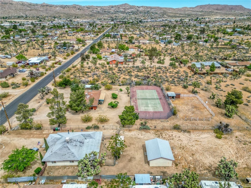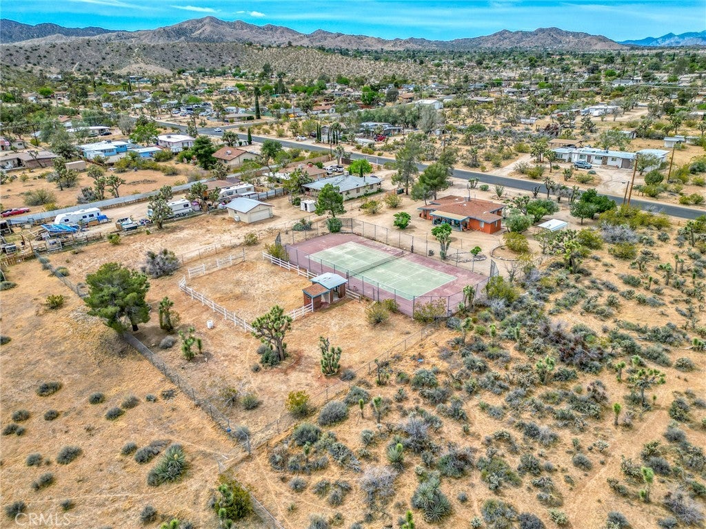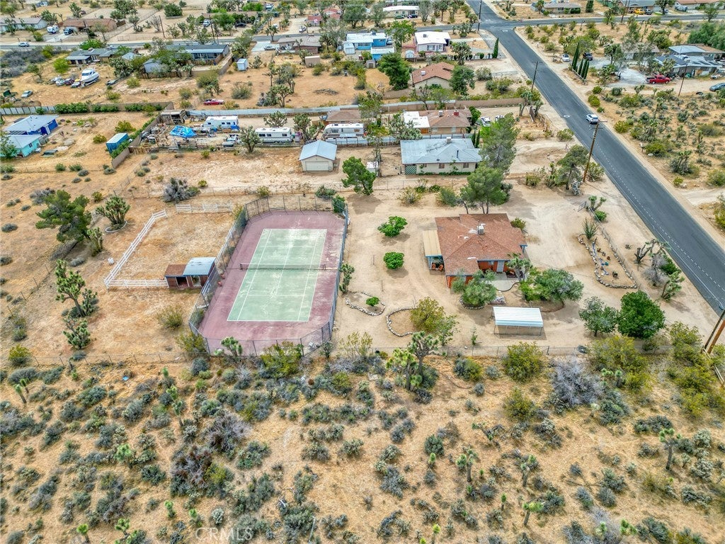 Charming Southwest style retreat set on over an acre of beautifully landscaped desert terrain, offering a rare combination of privacy, versatility, and lifestyle. Surrounded by mature trees and natural desert beauty, this fully fenced property stands out with its full size tennis court. easily convertible to a pickleball setup. creating incredible potential for personal enjoyment or a highly desirable short term rental feature. Equestrian enthusiasts will appreciate the covered horse riding arena, making this property ideal for those seeking space for animals, recreation, or a unique income producing opportunity. Inside, the home is warm and inviting with a spacious layout featuring two bedrooms plus bonus room areas perfect for an office, guest space, or creative studio. Wood style flooring, complemented by a charming country kitchen with natural gas appliances. Conveniently located in town with easy access to shopping and dining, yet offering the feel of a private desert escape, this property delivers the best of both worlds. A truly special opportunity with endless potential for lifestyle living or investment.