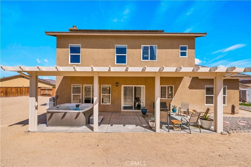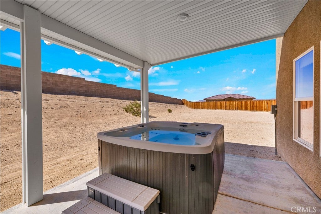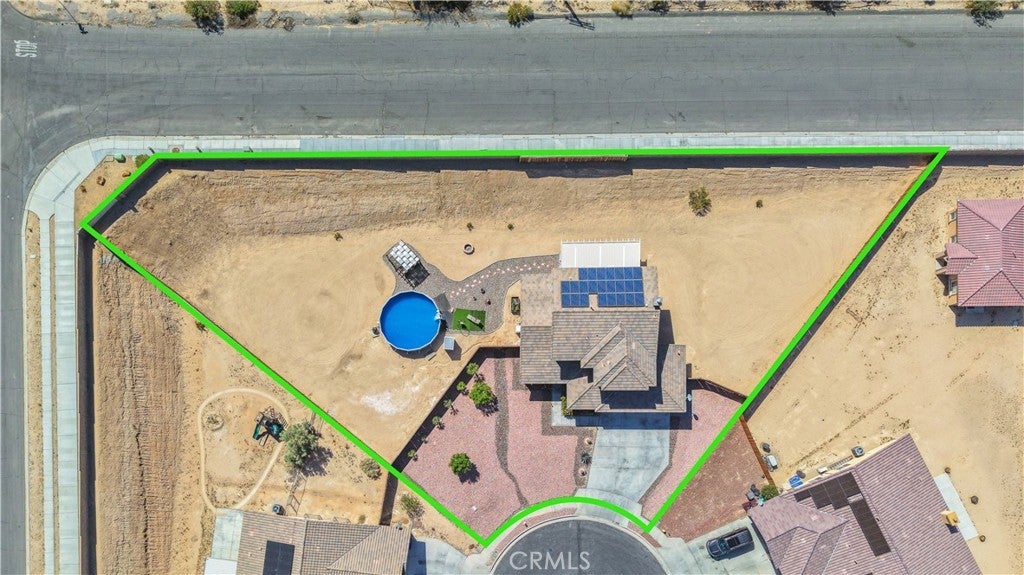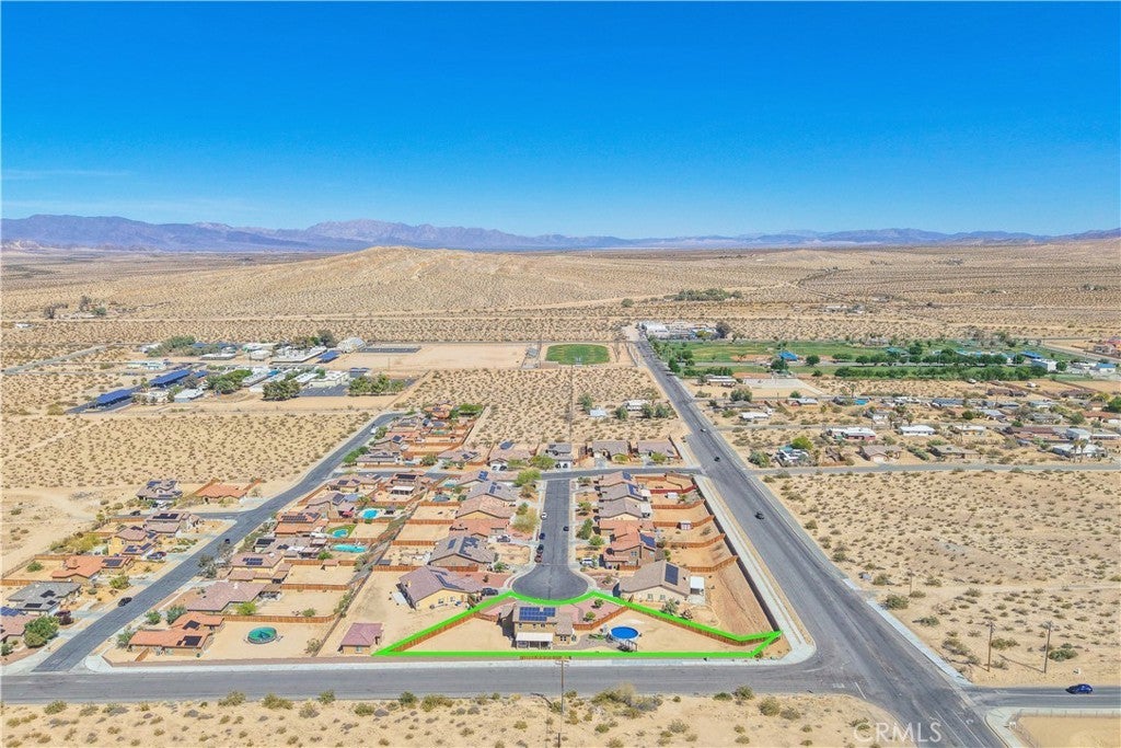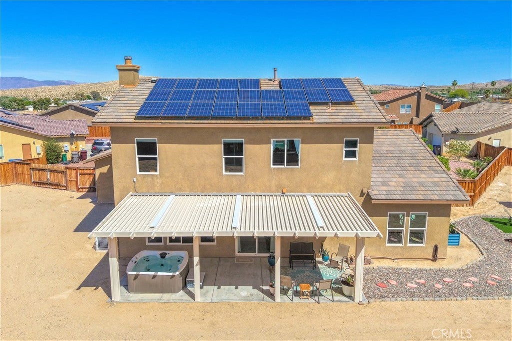 Prepare to Fall in Love! What could be better than a gorgeous, spacious home on the largest lot in the neighborhood? How about FULLY PAID SOLAR—with the seller willing to pay it off at closing with an acceptable offer! As you turn onto Cactus Wren Court, one home immediately stands out. Positioned at the end of a peaceful cul-de-sac, this impressive property sits on a sprawling 0.71-acre lot with a sweeping yard designed for beauty and easy maintenance. The front landscaping features attractive colored rock for water conservation, while blooming roses add a charming touch. Step inside to a dramatic soaring two-story entry, creating a grand first impression for you and your guests. The front living room and adjacent dining area are spacious and filled with natural light from large view windows. The kitchen is thoughtfully designed with beautiful cabinetry, granite countertops, and ample workspace—perfect for gourmet cooking or everyday meals. The oversized island is ideal for breakfast, gatherings, or entertaining. The kitchen opens seamlessly to a separate family room, where a cozy natural gas fireplace creates a warm and inviting atmosphere. Step outside to your private desert retreat. The covered patio features a hot tub for relaxing under the stars. A pathway leads to an above-ground pool and pergola, offering shaded space to unwind and escape the desert heat. This expansive 2,827 sq ft home offers exceptional versatility, including a main-floor bedroom and bathroom with a walk-in shower, ideal for guests or multi-generational living. A separate office with double-door entry provides a perfect work-from-home setup. Upstairs, the grand primary suite is a true sanctuary, complete with a huge walk-in closet, dual sinks with generous counter space, a soaking tub, walk-in shower, and private water closet. Two additional guest bedrooms share a spacious hall bathroom with double sinks and ample storage. A large laundry room with built-in cabinetry is conveniently located upstairs. Additional highlights include a 3-car garage, reverse osmosis water filtration system, and a gas line on the back patio for your dream BBQ setup. For those working at the Naval Hospital at the Marine Base in 29 Palms, this home is within the on-call distance for the hospital! This home truly offers both comfort and convenience in every detail. This is more than a home—it’s a dream worth living! Come experience it for yourself! Schedule a viewing with an Agent today!