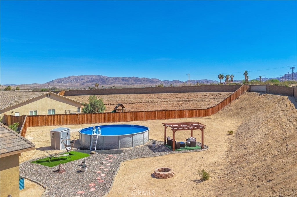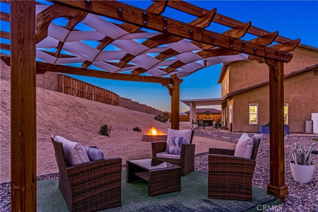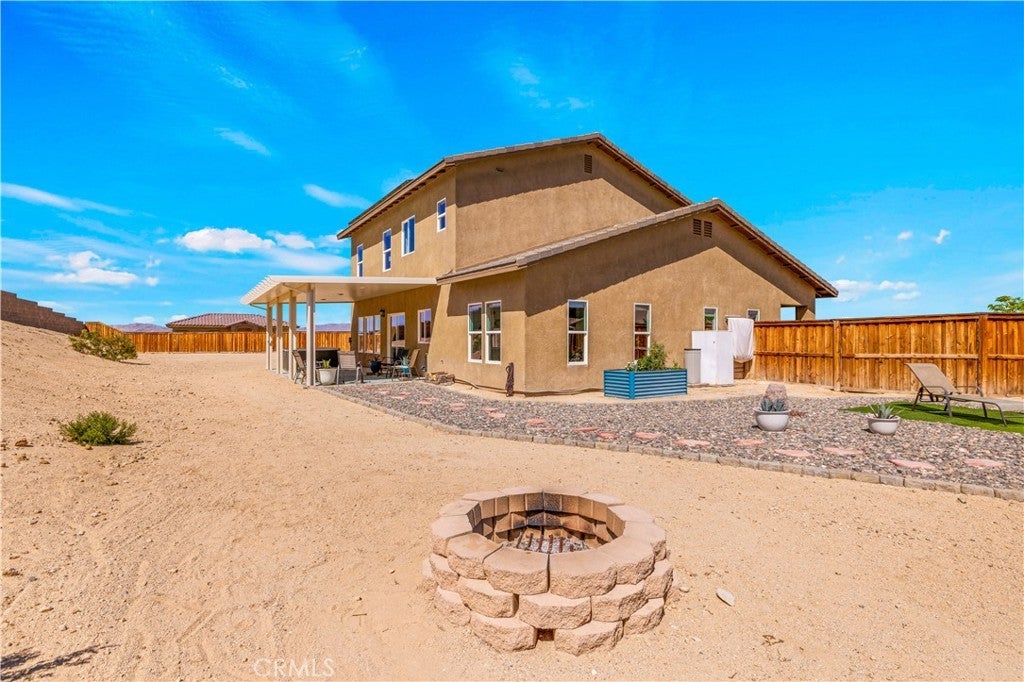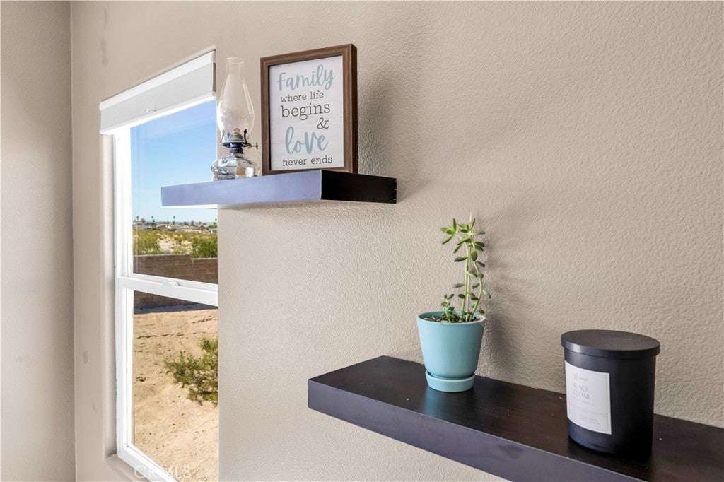 Prepare to Fall in Love! What could be better than a gorgeous, spacious home on the largest lot in the neighborhood? How about FULLY PAID SOLAR—with the seller willing to pay it off at closing with an acceptable offer! As you turn onto Cactus Wren Court, one home immediately stands out. Positioned at the end of a peaceful cul-de-sac, this impressive property sits on a sprawling 0.71-acre lot with a sweeping yard designed for beauty and easy maintenance. The front landscaping features attractive colored rock for water conservation, while blooming roses add a charming touch. Step inside to a dramatic soaring two-story entry, creating a grand first impression for you and your guests. The front living room and adjacent dining area are spacious and filled with natural light from large view windows. The kitchen is thoughtfully designed with beautiful cabinetry, granite countertops, and ample workspace—perfect for gourmet cooking or everyday meals. The oversized island is ideal for breakfast, gatherings, or entertaining. The kitchen opens seamlessly to a separate family room, where a cozy natural gas fireplace creates a warm and inviting atmosphere. Step outside to your private desert retreat. The covered patio features a hot tub for relaxing under the stars. A pathway leads to an above-ground pool and pergola, offering shaded space to unwind and escape the desert heat. This expansive 2,827 sq ft home offers exceptional versatility, including a main-floor bedroom and bathroom with a walk-in shower, ideal for guests or multi-generational living. A separate office with double-door entry provides a perfect work-from-home setup. Upstairs, the grand primary suite is a true sanctuary, complete with a huge walk-in closet, dual sinks with generous counter space, a soaking tub, walk-in shower, and private water closet. Two additional guest bedrooms share a spacious hall bathroom with double sinks and ample storage. A large laundry room with built-in cabinetry is conveniently located upstairs. Additional highlights include a 3-car garage, reverse osmosis water filtration system, and a gas line on the back patio for your dream BBQ setup. For those working at the Naval Hospital at the Marine Base in 29 Palms, this home is within the on-call distance for the hospital! This home truly offers both comfort and convenience in every detail. This is more than a home—it’s a dream worth living! Come experience it for yourself! Schedule a viewing with an Agent today!
