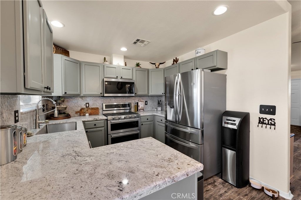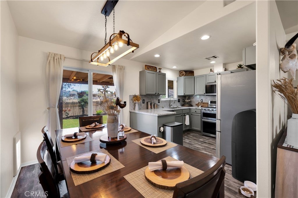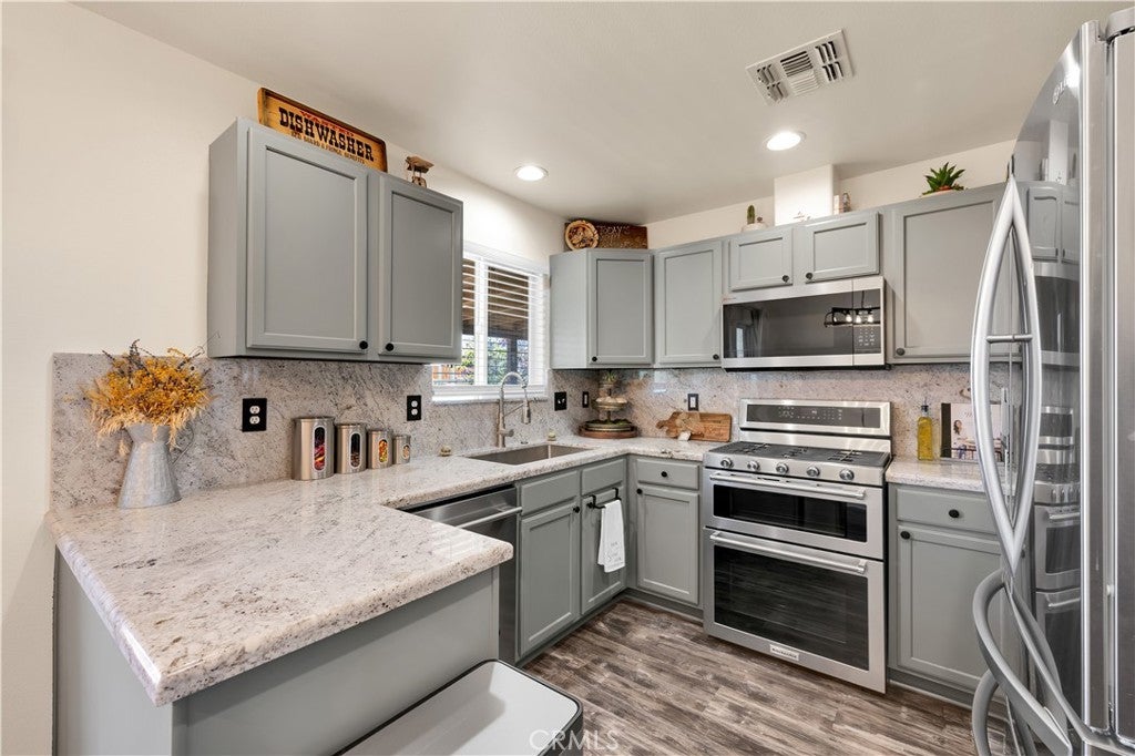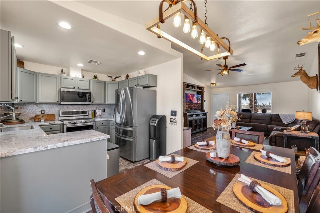 WITH A FULL PRICE OFFER, THE SELLER WILL CREDIT THE BUYER $10,000 FOR CLOSING COSTS! This fully remodeled 4-bedroom, 2-bath home on a fully fenced lot offers style, space, and functionality throughout. This property has seen extensive upgrades, including new vinyl flooring, new carpet in the bedrooms, updated lighting and ceiling fans throughout, updated kitchen, refreshed landscaping in both the front and backyard, and much more. Making this home truly move-in ready. As you arrive, the curb appeal immediately stands out with a well-manicured yard and a variety of mature plants. A drive-through gate leads to a long concrete driveway extending to the fully finished two-car attached garage, with plenty of additional parking in the front yard and even room for RV storage. A concrete walkway guides you to the front door, passing a charming seating area where you can enjoy views of the open vacant land across the street. Inside, you’ll love the open-concept layout with tall vaulted ceilings and a spacious living room that easily accommodates larger furniture and gatherings. The dining area flows seamlessly from the living room and offers space for a full-size table. The updated kitchen is a standout, featuring granite countertops that extend as a full backsplash, refinished cabinetry, and stainless steel KitchenAid appliances, including a double oven, microwave, three-rack dishwasher, and a new sink and faucet. All four bedrooms are well-sized, including a large primary suite with vaulted ceilings, a spacious walk-in closet, and a remodeled ensuite bathroom featuring updated vanities, fixtures, and shower hardware. The additional bedrooms include new carpet, and both bathrooms have been updated to match the home’s modern finishes. The indoor laundry room is oversized, providing extra convenience and storage space. Step outside to the backyard where you’ll find a thoughtfully designed space perfect for relaxing. A smaller fenced section creates a safe area for kids or pets, and fresh sod has been installed, complemented by a sprinkler system serving the landscaping. The covered patio is ideally positioned to provide shade for much of the day, making it a comfortable outdoor retreat. Additional features include a 40-foot Connex waterproof storage container and a new 12x8 shed, both included, offering even more storage and utility. This home combines modern upgrades, functional space, and excellent outdoor features—schedule your showing today before it’s gone.