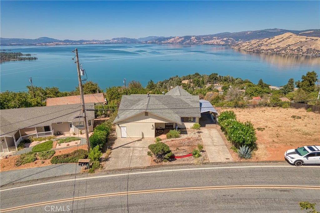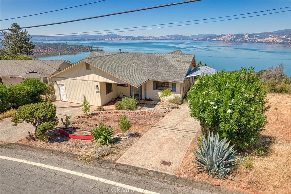 Panoramic Views! Nestled in a serene community. This home offers an idyllic blend of comfort and tranquility, ideal for both relaxation and entertaining. Step outside to your expansive covered decking, where you can sip your morning coffee while soaking in the spectacular lake and mountain views or unwind with a glass of wine as the sun sets over the horizon. Garage was recently converted into a music room which ensures plenty of extra space for storage! The yard features raised garden beds and a storage building along with additional space under the house As part of a vibrant community, you’ll enjoy exclusive access to fantastic amenities including a refreshing pool, a welcoming club house and a marina. This home truly embodies the perfect blend of relaxation and recreation. Don’t miss your chance to own this slice of paradise.