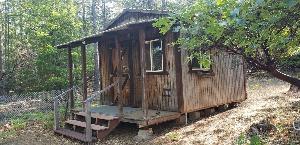 SECLUDED with private driveway through lush forest. This dream house is waiting for you to put on the finishing touches! Nice kitchen dining area open to comfortable living room, sunroom and spacious deck. Oh, I can't forget the hot tub on the deck or the beautiful wood stove in the living room. One bedroom downstairs near the 3/4 bathroom and 2 bedrooms upstairs with spacious bath and closets that open to super large storage area. Shhhh! even has a hidden closet/storage for safe keeping items. Attached full laundry and single garage currently used as shop. Separate office/cottage away from the home and other storage buildings and sheds. Updated water system for well with 2 tanks. If your looking for seclusion in a friendly area, don't pass this up!