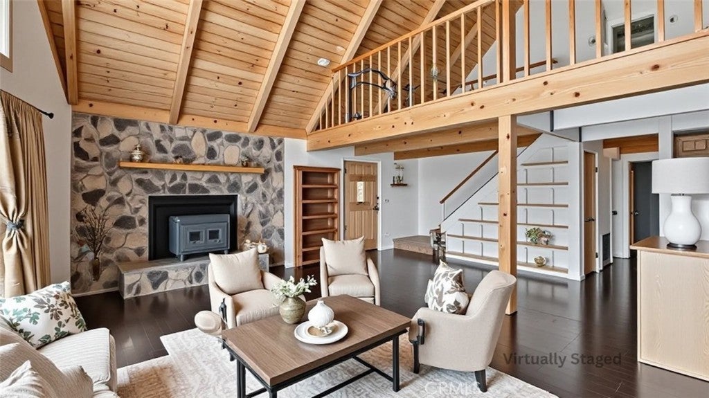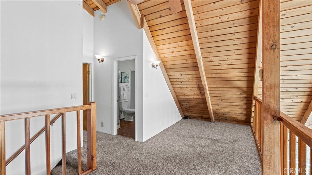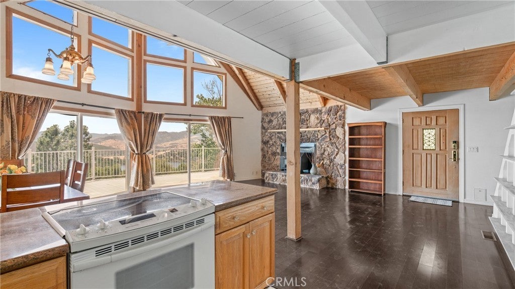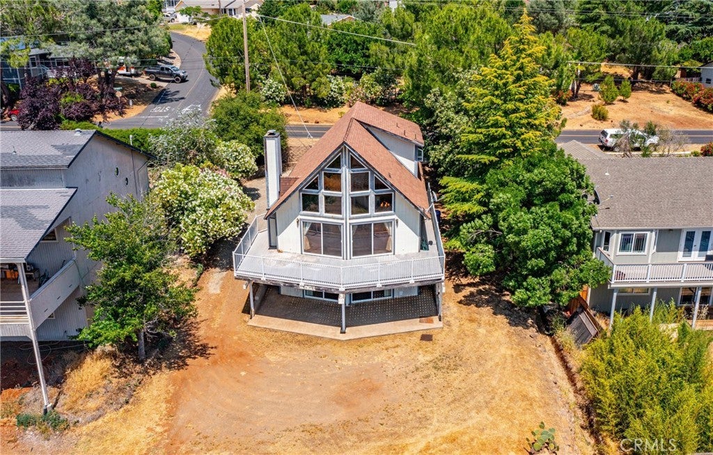 Welcome to 19383 Stonegate Road! Wonderful views and setting for this modified A Frame home... This property is really sweet & special inside with custom wood & open beam ceilings, the kitchen is updated with newer appliances & granite counter tops. The living/great room has a wood stove insert and soaring ceilings with sliding glass doors leading out to the large deck, enjoy the spectacular sunsets over the mountains and lake from here. The main level features two bedrooms, and a full bathroom. Walk upstairs to the delightful open loft area and from here to another bedroom which is spacious & bright, and here is also bathroom. Going downstairs with the option of a separate exterior entrance we have a fantastic large studio with open concept kitchen/living/bedroom, tiled floors and a neat bathroom. There is even a stacked washer and dryer here for added convenience. Sliding glass doors leads to a private concrete patio. Modest from the exterior, this home is full of delightful surprises. A must see to appreciate.