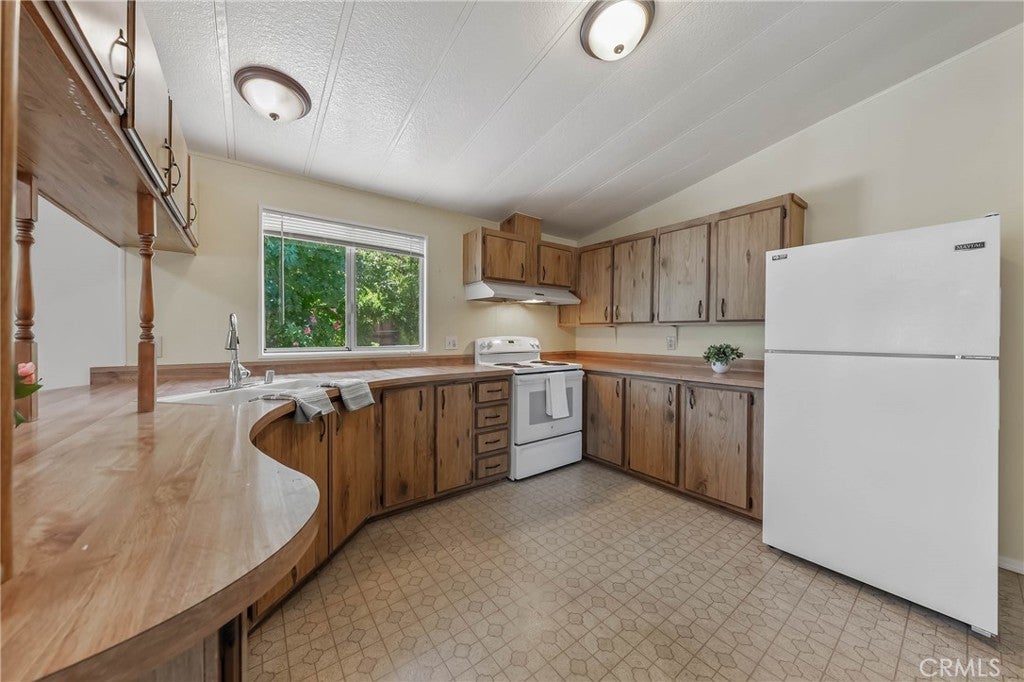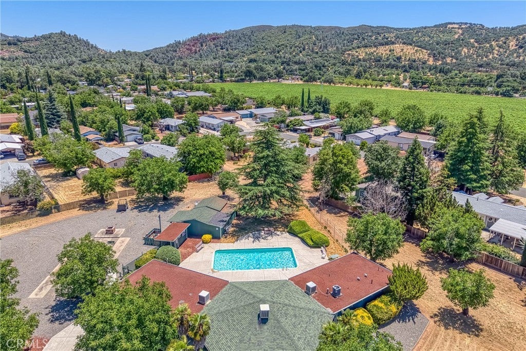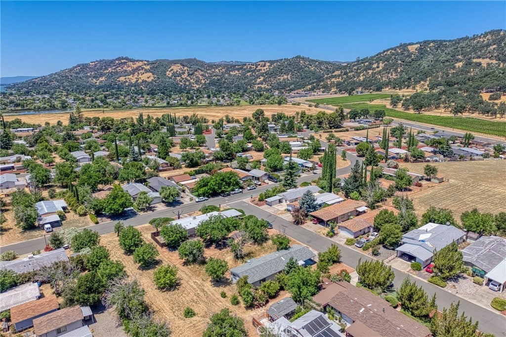 Live beautifully in this open and spacious 2 bedroom & 2 bath home in Clearlake Oaks. The approximately 1344 square foot is super welcoming and practical with a great floorplan including vaulted ceilings in living areas and master bedroom. With a green belt in the back and on the side of the home, experience a feeling of living large with fantastic views of the hillside vineyards. The living areas have an open concept living/dining room, a large kitchen with ample cabinetry and counter space, 2 generously sized bedrooms, plus a large convenient inside laundry room. The AC/Heating unit was replaced in 2024 and the roof is nearly new - installed in 2023. Other major component such as the water-heater is about 2 years new. Located in the well planned community of Orchard Shores, with wide streets, underground utilities, a club-house, seasonal pool and more. Covered parking in a good size car-port. A large storage room provides excellent storage space. Easy access into and around the home - space for planting a garden, a few fruit trees and backyard fun. Come take a look! Excellent value considering almost brand new roof, AC/Heat and Water-Heater. With very little effort could be a real showcase. Fantastic opportunity for retirees looking for low cost living, rental investment or a vacation home.