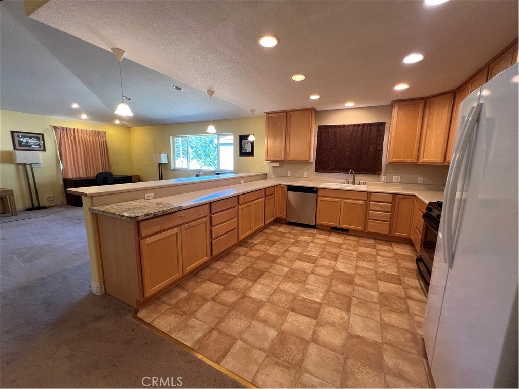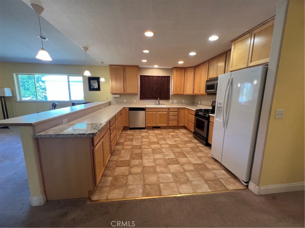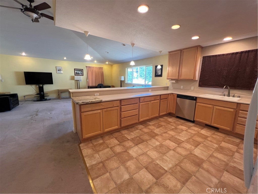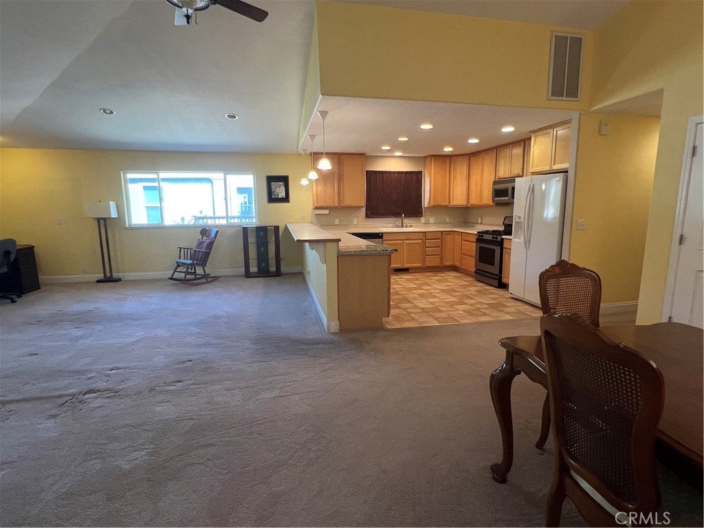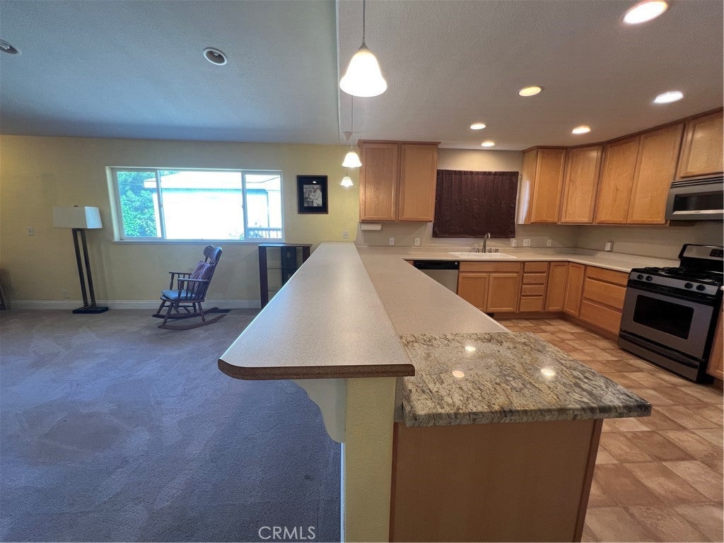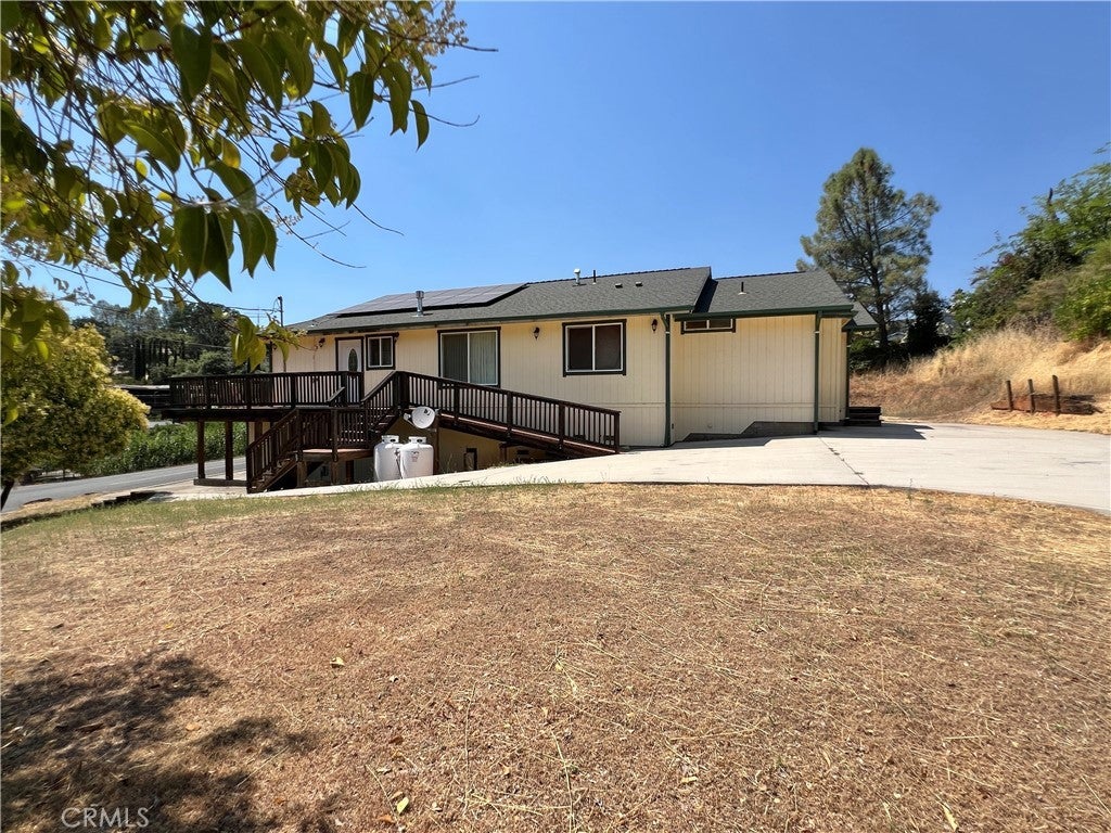 Spacious 3-bedroom, 2-bath home with an open floor plan, ideal for comfortable living and entertaining. The house has a large, well-lit kitchen that features ample cabinetry, convenient pot-and-pan drawers, a propane stove, Formica countertops with long breakfast bar and easy-care linoleum flooring. The living and dining areas flow seamlessly together, creating a warm and inviting space for gatherings. Bedrooms, living and dining areas are carpeted. Enjoy the outdoors on the expansive wood deck that partially wraps around the home. The finished two-car garage includes extra storage, tools, and a wide driveway. Bonus: this property includes a second lot—adding extra space and potential. Has a Solar Power Purchase Agreement that is assumable to qualified buyers. Some furnishings included! There is a ramp access to the deck area from the back driveway. Be sure to include with your purchase offer the vacant lot 3313 Lakeview Drive, AP# 031-242-42.