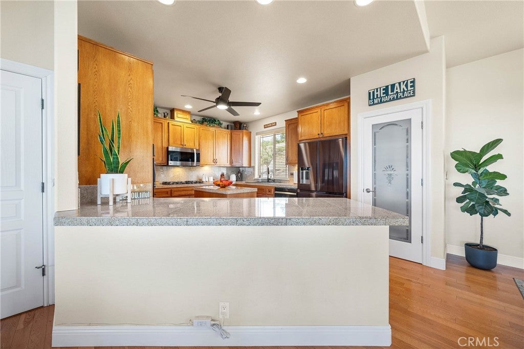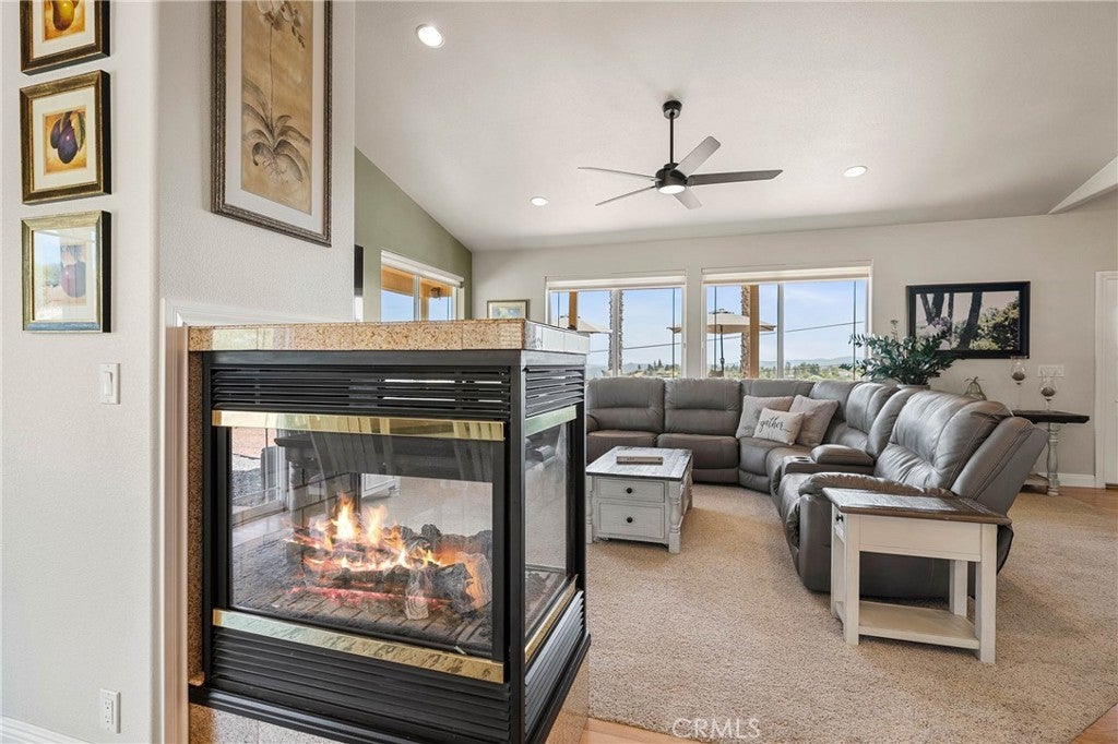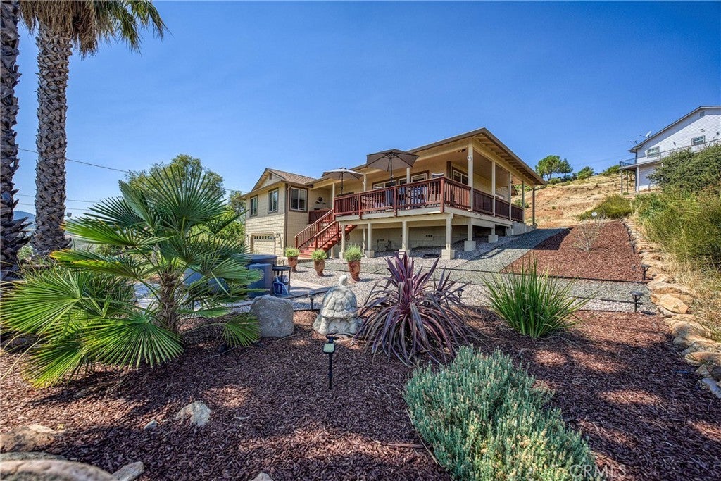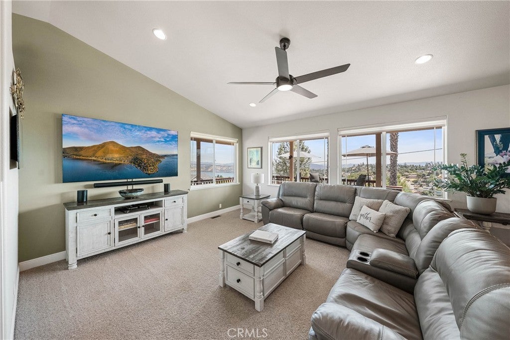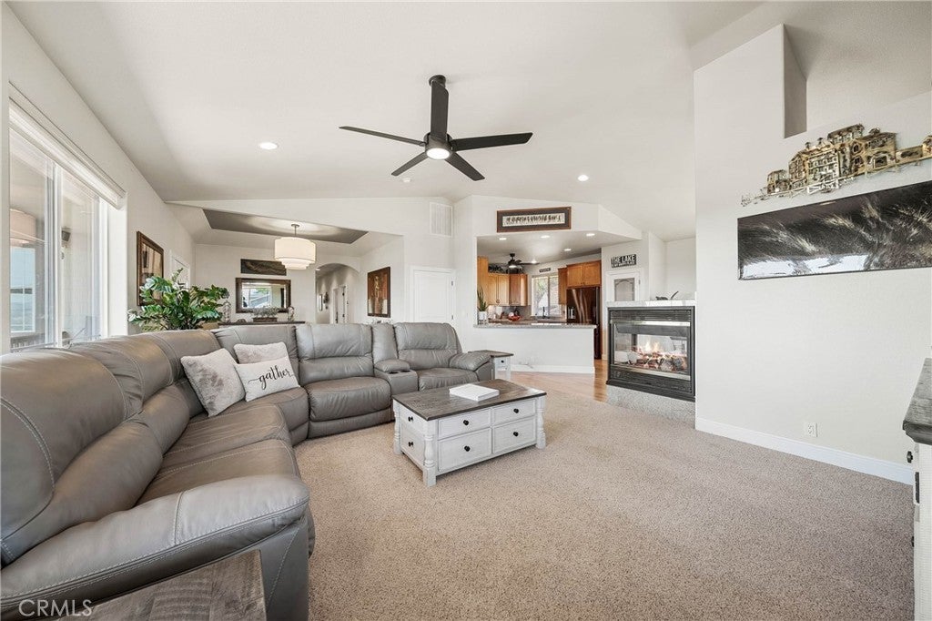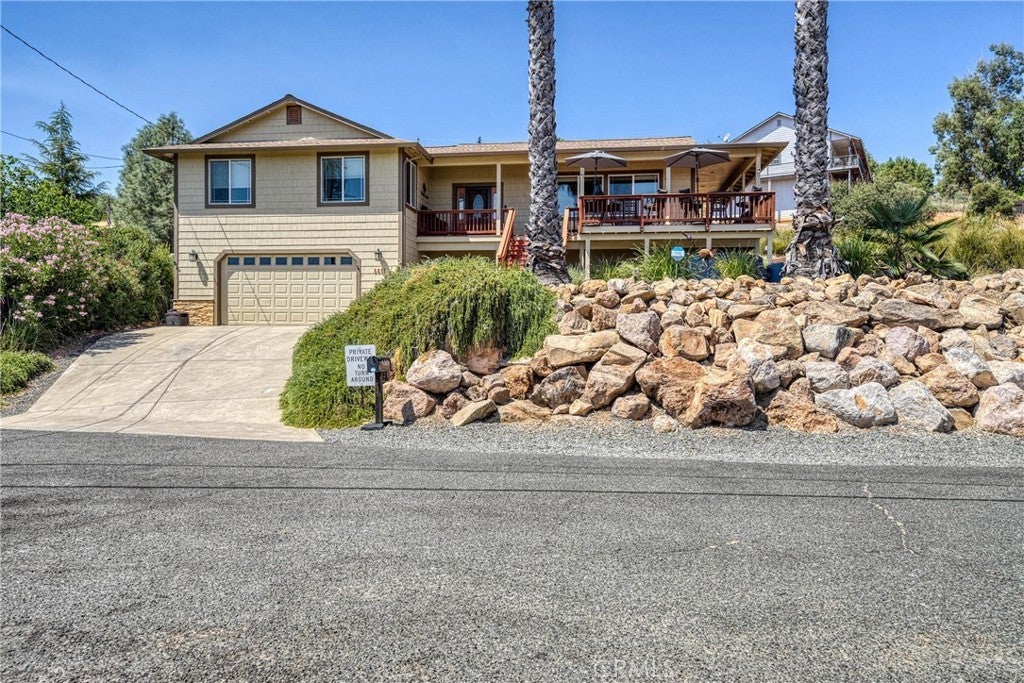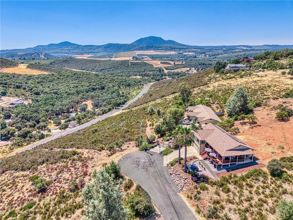 Gorgeous custom home with stunning lake views, ideally located in a quiet court. This single-level home offers 2168 sq ft of living space, complemented by a spacious 950 sq ft oversized garage. The property features low-maintenance landscaping and wrap-around decks, creating beautiful outdoor living areas with picturesque views of the surrounding wine country, lake, and mountains. Inside, you'll be greeted by a formal entry with coffered ceilings and modern lighting. This leads into an open, light-filled great room with vaulted ceilings, ceiling fans, a three-sided fireplace, and artistic niches, all contributing to its elegant architectural design. The large kitchen boasts granite countertops, stainless steel appliances, a center island, and a peninsula, conveniently situated adjacent to the formal dining area. The dining area includes a built-in buffet cabinet and a slider door that opens onto the attached decks. All three bedrooms are located on this single level, along with an oversized laundry room that also provides office space. The primary bedroom (Bedroom #1) is a peaceful retreat with abundant windows, offering lovely views and fresh air. It features an en-suite spa-style bathroom with a walk-in custom-tiled shower, a soaking tub with vineyard views, toilet room and a walk-in closet. The second bedroom and 3rd Room offer closets and carpeting. A conveniently located hall bathroom serves these rooms, featuring double sinks with granite countertops and a tub/shower combination. Outside, the property includes low-maintenance landscaping and a concrete driveway. Located above Clearlake enjoy year-round water sports sunsets and sunrises. Kelseyville is located only 2 Hours from San Francisco and Sacramento.