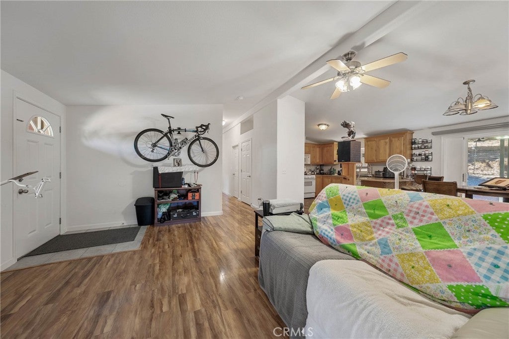 TURN-KEY and WELL MAINTANED 2004 3-bedroom, 2-bathroom 1188 sq ft manufactured home. Living room with dining area that opens to kitchen which offers all appliances to stay with the home. Primary bedroom with full bathroom. Separate laundry room area with washer and dryer included and can access thru the garage. Mini splits-1 year new (2024), plus Central heating and the Central air is 4 years new-(2022) per seller. Ceiling fans in every room. Double pane windows. BRAND NEW hot water heater just installed. A nice Trek deck in front. Super clean 2-car garage with shelves on one wall. Concrete driveway with plenty of parking. Low maintenance landscaping in the front and back area and fenced backyard. Under the house has storage area. Public water. Septic system. ROOF IS 5 YEARS NEW (2021) per seller. HOA fees $145.00 yearly. Property is located on a corner lot in a peaceful area. FHA LOANABLE.