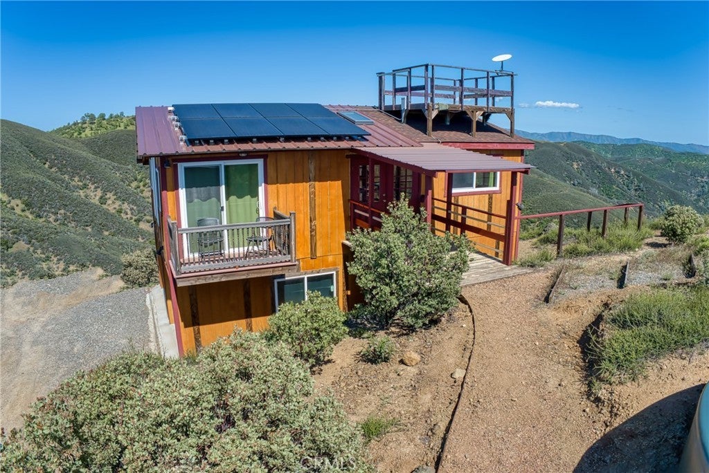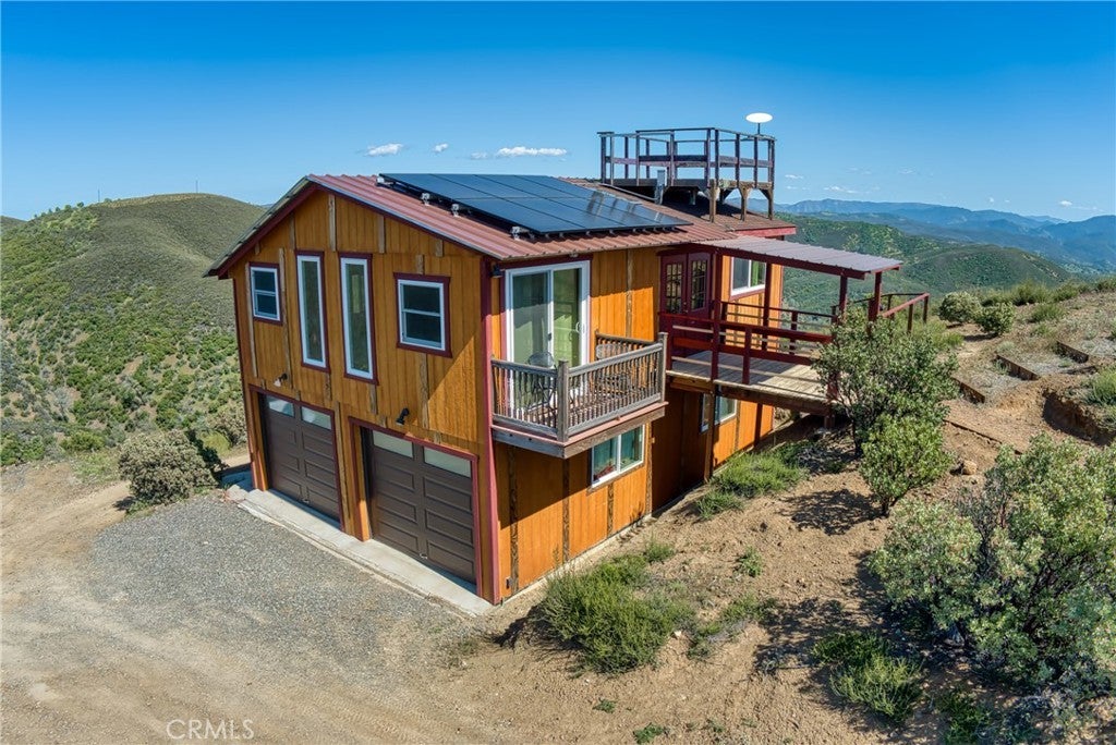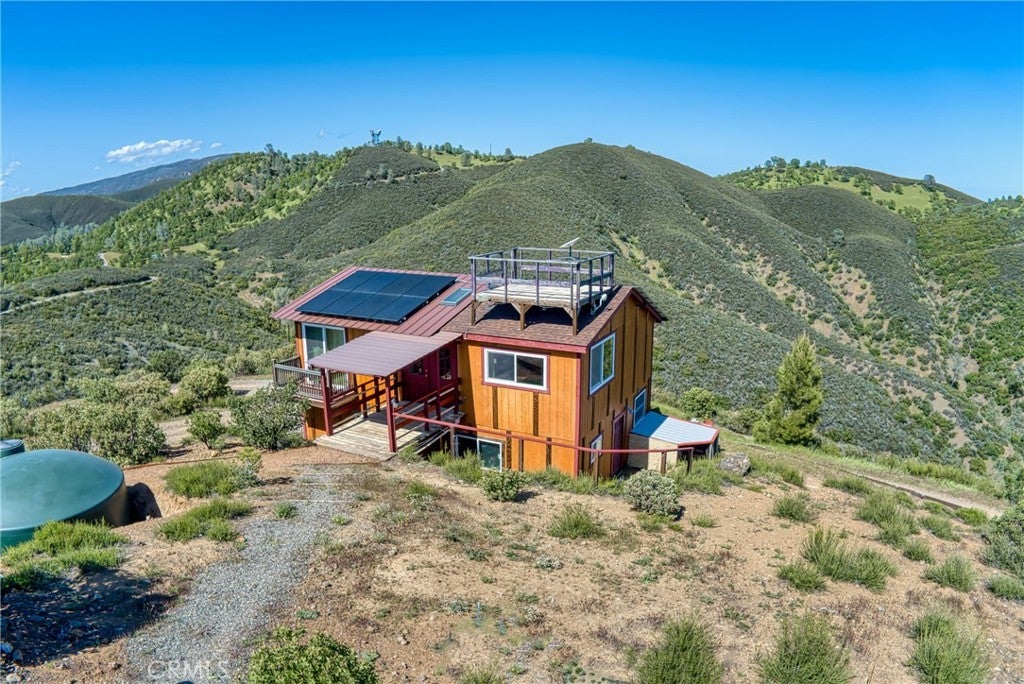 Discover tranquil off-grid living on a sprawling 20-acre retreat that combines modern sustainability with rustic charm. This thoughtfully designed property features a cozy 700-square-foot main house complemented by an upgraded Park Model Trailer, offering flexible living arrangements for your lifestyle needs. The property's self-sufficient infrastructure includes a comprehensive solar power system with forklift battery storage for reliable overnight power, plus a dual-fuel backup generator for peace of mind. Water management is expertly handled with a 5,000-gallon tank near the main house and a 2,000-gallon tank by the trailer, while a well and septic system ensure complete independence. Storage and workspace abound with a 700-square-foot garage and an impressive 18x40 steel building, perfect for projects, vehicles, or equipment. The Park Model Trailer has been enhanced with a protective roof extension and features an inviting wraparound deck, ideal for taking in the stunning natural views that surround the property. Privacy seekers will appreciate the secluded setting that doesn't compromise on security. The one-bedroom, two-bathroom main house provides comfortable living spaces while maintaining a modest footprint. Whether you're seeking a weekend sanctuary or a permanent escape from city life, this property offers the perfect blend of solitude and self-sustainability. Experience the freedom of off-grid living while enjoying modern amenities and the beauty of California's natural landscape in this unique property that truly must be seen to be appreciated.