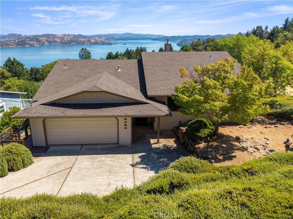 Welcome to one of the best lakeview homes in Kelseyville! This beautifully designed residence offers bigger and better Clear Lake views from nearly every room, along with an excellent floor plan for comfort and entertaining. The open living room and kitchen are the heart of the home, featuring a cozy freestanding stove and sweeping windows that frame the sparkling lake. Large kitchen with newer stainless-steel appliances and pantry. Step right out to the brand-new, covered redwood wraparound deck and take in panoramic views that stretch for miles—perfect for morning coffee, sunset dinners, or year-round relaxation. A short step-up leads to the private bedroom wing, where two inviting guest bedrooms and a full bath provide space for family and friends. The primary suite is a true retreat, complete with its own bath and yet more dazzling lake views to wake up to each morning. Main floor also includes formal dining with lake views, inside laundry room, an additional half bath. Downstairs, you’ll find a versatile bonus room with half bath ideal as a guest bedroom, hobby room, or home office with access to the lower deck. Central Heat and Air plus a newer roof, attached two-car garage and fully fenced yard add to the convenience and livability. Enjoy all the benefits of Riviera West, including a clubhouse, swimming pool, and private boat launch. With its unbeatable views, thoughtful layout, and expansive deck for indoor-outdoor living, this Greenwood Drive home captures the very best of the Lake County lifestyle.