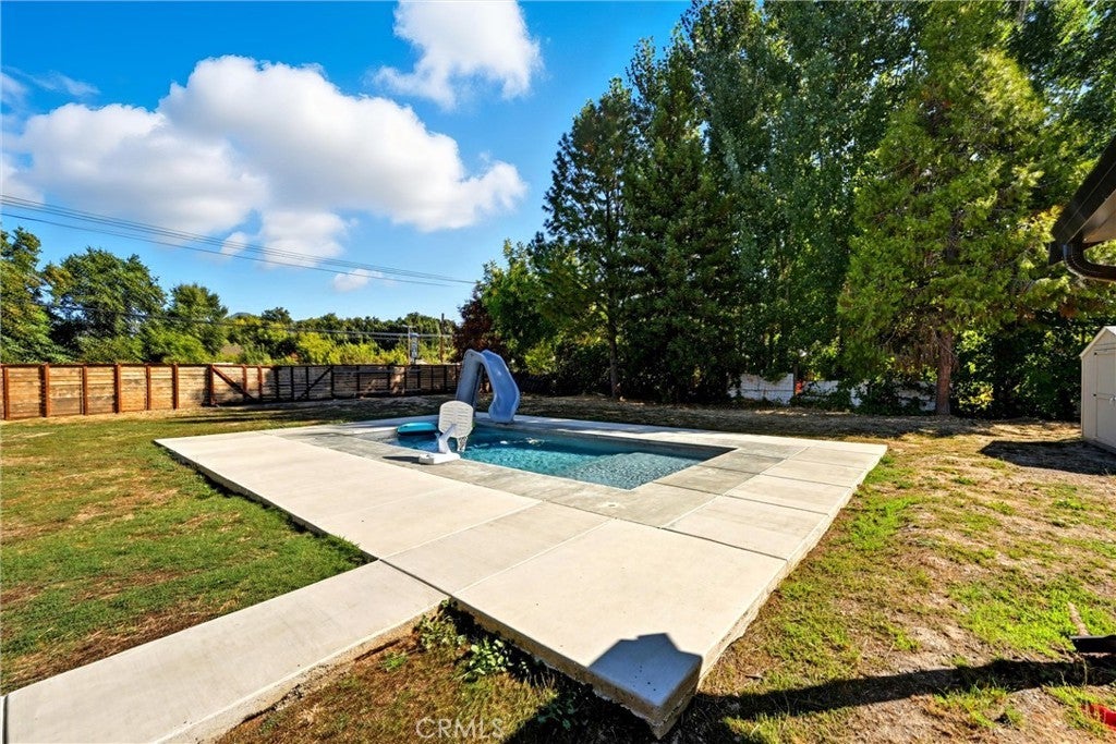 This fully renovated 3-bedroom, 2-bath home is truly TURNKEY! The custom-designed kitchen features updated cabinetry, stunning quartz countertops, matching high-end appliances, and recessed lighting that brightens the space beautifully—creating an ideal environment for cooking and entertaining. Throughout the home, luxury vinyl plank flooring adds both durability and elegant style. Additional amenities include a one-car garage, energy-efficient double-pane windows, modern on-demand water heater, mini-split units, and a brand-new roof installed in 2023. Outside, the fully fenced yard offers privacy and security, complemented by a brand-new in-ground pool perfect for enjoying sunny summer days. Plus, the property features a full RV hookup and a 220V electrical outlet ready for a hot tub connection, adding convenience and flexibility for outdoor enjoyment. Located within walking distance to the local school and public library, this home combines comfort, convenience, and community—making it an ideal retreat.