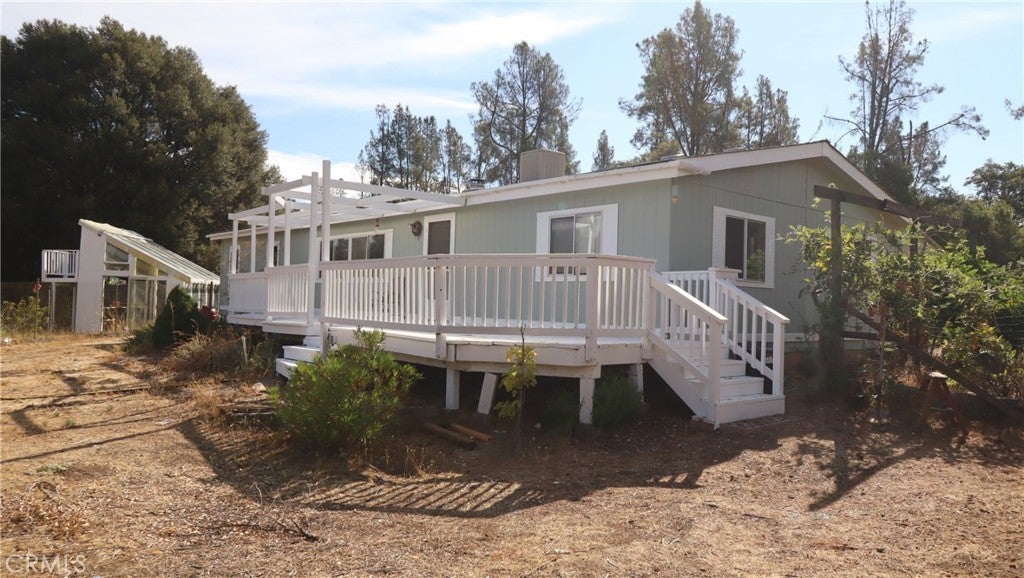 CREEKSIDE RANCH 20 acres of complete seclusion with much of the property usable for livestock, horses, planting. Cole Creek runs through all year long on its way to Clear Lake. Large manufactured home in livable condition with a woodstove and a large deck opening onto a large level cleared area around the home. Double garage and a green house with fenced orchard for your gardening needs. Tile floors in the kitchen and laminate flooring in the bathrooms. You have both well and creek water. Plenty of room for an ADU. Seller will consider 3% by way of buyer concessions at closing.