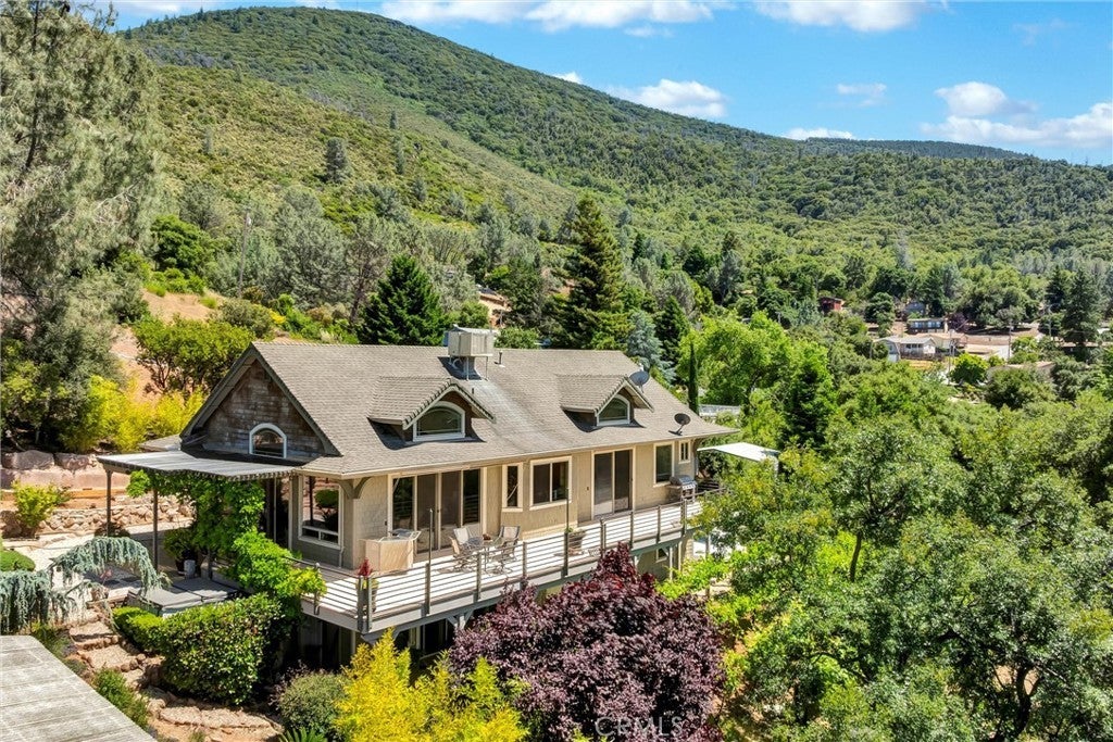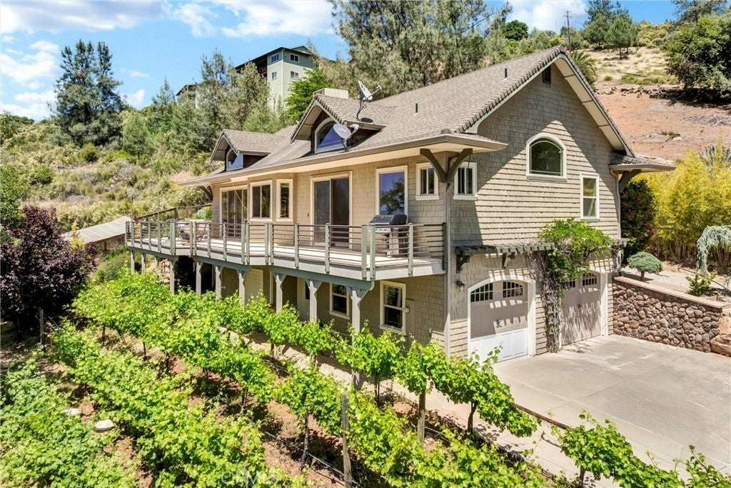 Experience Lakeside Luxury with Breathtaking Views! Step into the serenity and elegance of this expansive residence in the desirable Kelseyville area, boasting sweeping vistas of Clear Lake and majestic Mt. Konocti. This home is thoughtfully designed to accommodate various living arrangements, making it perfect for a range of lifestyles. The upper level showcases a sunlit and airy floor plan, featuring a cozy living space with a charming fireplace, a formal dining area, and a well-appointed kitchen that is ideal for both daily living and entertaining. Two spacious bedrooms, including a master suite with access to a sizable deck, a walk-in closet, and a luxurious ensuite bathroom with a walk-in shower and a separate soaking tub, complete the upper level. The lower level, with its own private entrance, offers a third bedroom, a home theater, and a wet bar, presenting an excellent opportunity for a guest suite, an artistic retreat, or a recreational haven. Outside, the property is a haven of tranquility, boasting a serene koi pond with a cascading waterfall, flourishing grapevines, and multiple relaxation areas. The expansive driveway and additional parking spaces provide ample room for vehicles, watercraft, or outdoor gear. Just a short distance from a public boat launch and marina, this home offers easy access to a plethora of water activities, including boating, kayaking, and fishing on Clear Lake. Nestled at the foothills of Mt. Konocti and surrounded by vineyards, local markets, and dining establishments, this residence strikes a perfect balance between natural splendor and community conveniences.