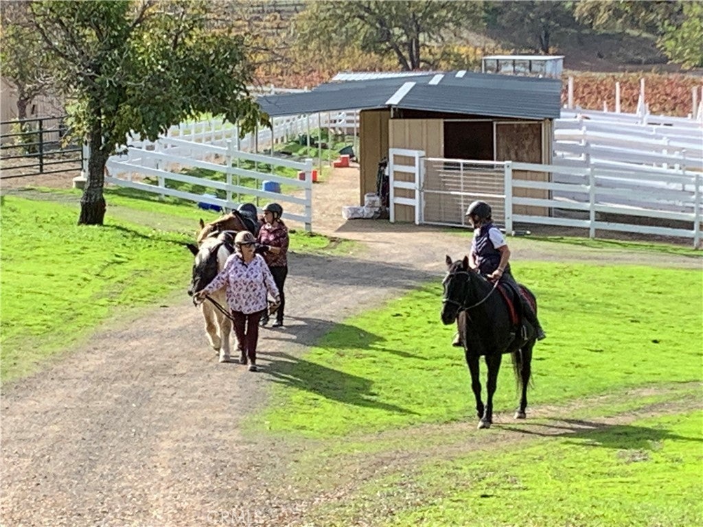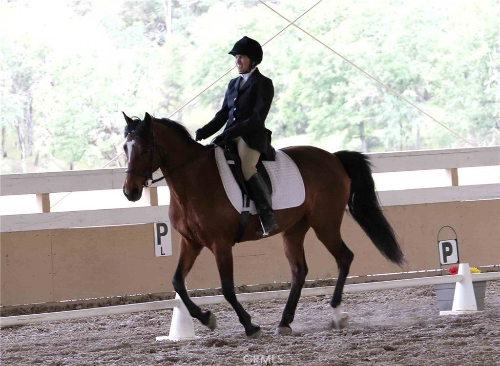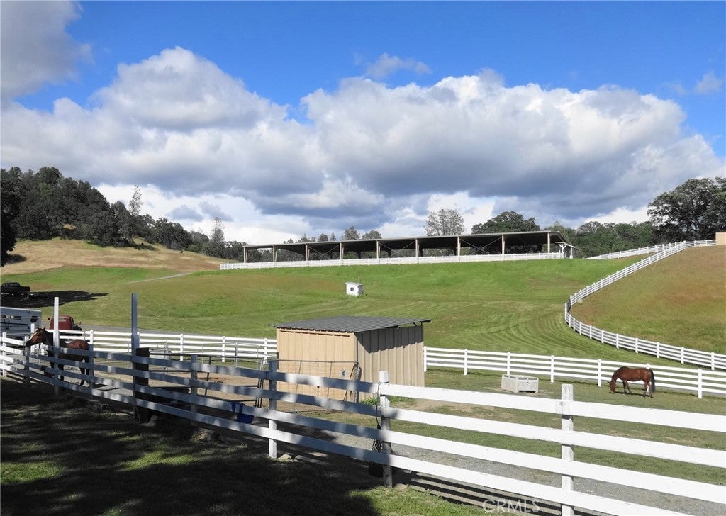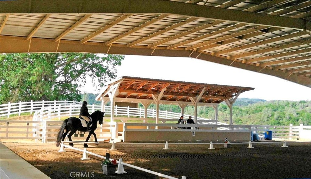 Welcome to 8900 Wight Way, a rare equestrian retreat designed for horse enthusiasts, ranchers, and those seeking versatile country living. Set on expansive acreage with multiple wells, pastures, and arenas, this property combines functional infrastructure with unique amenities for events, training, and comfortable living. The main residence is a charming 3-bedroom, 2-bath home with a large, fenced yard, updated deck with storage, and a huge washer/dryer set-up perfect for horse blankets. Additional features include a heat pump system, mini splits, and a metal roof for lasting durability. Equestrian facilities are extensive and thoughtfully designed: a covered, all-steel, 100x235 Olympic-sized arena with professional-grade footing, LED lighting, full sound and judging system, septic hookup, and booths for spectators, and stunning views. Riders also enjoy a 40x80 meter open arena, gravel pad for 80 ft round pens, and miles of trail systems on and around the property. Multiple paddocks (up to 14), mare and gelding pastures, and double-fenced walkways with water access provide excellent care and separation for horses. A wood barn with stalls, birthing/recovery stalls, hay storage, tack areas, wash rack with hot/cold water, and comfort flooring complete the setup. The ranch is equally well-equipped with a 50x70 shop (built 2023) featuring solar capability, LED lighting, multiple roll-up doors, a chain hoist, and ample 50/30-amp service. Additional highlights include a smokehouse, butcher shop with bathroom, year-round pond, leach fields, and 4-rail fencing without barbed wire. Parking is abundant, with multiple gated entrances, long-term parking near the shop, and an easement for larger vehicles. Whether you’re raising horses, hosting events, or running a ranching operation, 8900 Wight Way is built to handle it all. The property has been home to cattle, equestrian shows, 4-H, and Dressage Society events, and even comes with a 1949 tractor, electrical Solectrac PF4000 tractor with attachments, and Cavaletti equipment for training. With Adobe Creek Reservoir nearby and a strong community presence, this property offers unmatched opportunity and flexibility. Horses thrive here—the pastures, fencing, and layout make for an inviting, calm environment where they’ll come right up to greet you. 8900 Wight Way – a one-of-a-kind equestrian estate blending ranching history, modern upgrades, and event-ready amenities.