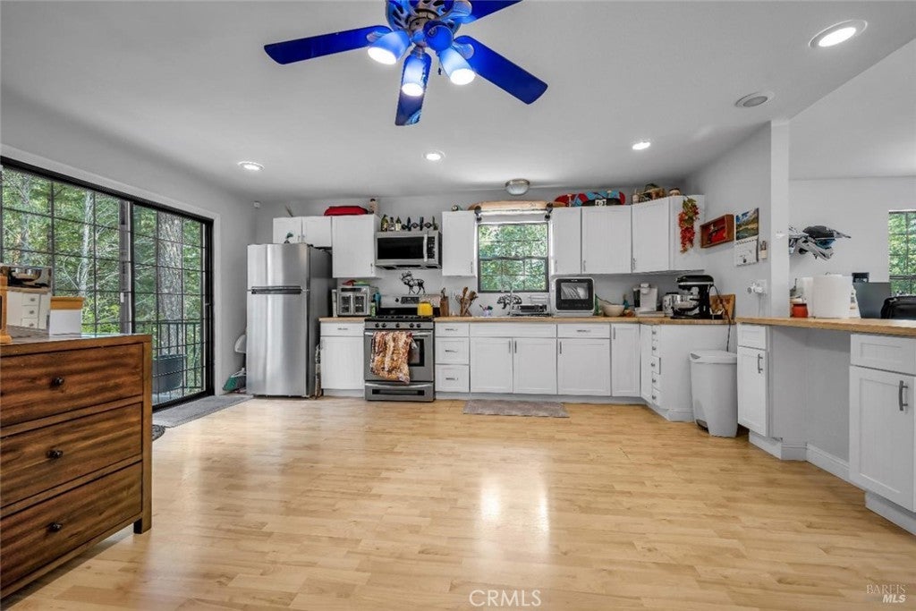 This beautifully remodeled home with studio apartment shows true pride of ownership offering modern upgrades throughout. Features include owned solar, fresh paint, and durable luxury vinyl flooring. Both the 1,662 ft. main home and the 832 ft. studio apartment are equipped with tankless water heaters for efficiency and comfort. The kitchen includes quartz counters and a double oven, while a wood stove creates a warm and cozy atmosphere on cold winter nights. New French doors open to a deck designed for entertaining and enjoying the outdoors. The studio apartment is complete with mini-split heating and cooling, making it perfect for guests, rental income, or a private home office. This move-in ready property blends energy efficiency, comfort, and versatility, making it a wonderful place to call home.