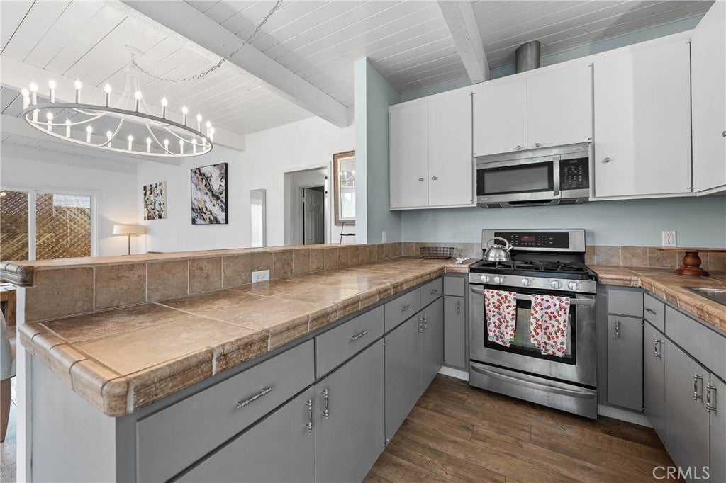 Breakfast Bar, Living Room Deck Attached, Open Floorplan, See Remarks, Paneling/Wainscoting, Tile Counters