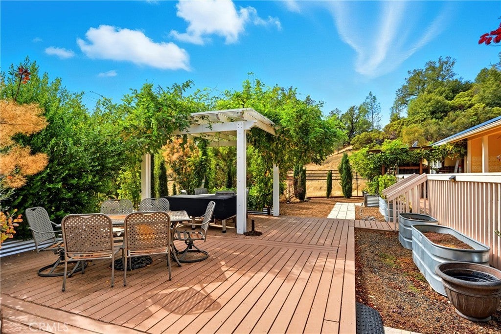 Private Mediterranean Retreat on 33 Acres with Sweeping Mountain Views! Welcome to your dream estate — a meticulously maintained, single-level Mediterranean-style home nestled on 33 acres of private, picturesque land. With three bedrooms, two bathrooms, a dedicated office, and nearly 3,000 square feet of thoughtfully designed living space, this home offers the perfect balance of luxury, comfort, and nature. Step inside to discover a spacious open floor plan, filled with natural light and seamlessly flowing from room to room. Multiple doors open onto expansive decks, inviting the outdoors in and providing effortless access to stunning views of Cobb Mountain and the valley below. The chef’s executive kitchen is a culinary delight, featuring premium appliances, generous counter space, and a layout perfect for both entertaining and everyday living. Outside, the lifestyle continues with beautifully landscaped grounds including 10 grapevines (featuring Italian varietals and Perletti grapes), apple trees, elegant cypress trees, and a variety of trees and flowering plants — all supported by a comprehensive drip irrigation system. Enjoy the ambiance of the wisteria-covered arbor, ideal for alfresco dining or a relaxing glass of wine. For those seeking self-sufficiency and serenity, this property includes a level area with corral and additional storage building, fully fenced outdoor living spaces, a fully connected Generac generator and Firewise protection: hardy board siding and 100-foot defensible space for peace of mind. Located in a friendly neighborhood of acreage properties, you'll enjoy a secluded setting with unmatched privacy — and still just a 5-minute drive to town amenities. Whether you're looking for a quiet retreat, a hobby vineyard, or a place to entertain and enjoy nature, this property offers a rare opportunity to live the lifestyle you've been dreaming of.