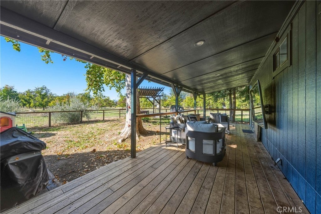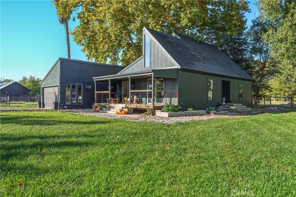 Income Producing Property - Modern farm house on 10 Acres Income producing and completely remodeled, this stunning 3-bedroom, 2-bath home sits on 10 level acres, 8.5 planted with over 550 mature Chandler walnut trees. Featuring high-end finishes and modern touches throughout, the home offers an open floor plan with custom windows framing beautiful views in every direction. Downstairs includes two bedrooms and a full bath, while the upstairs primary suite boasts a breathtaking custom bathroom with black marble walls, large windows overlooking the property, a skylight shower, and designer details that truly impress. Around the home, an acre is fenced with custom modern wood fencing and electric gates, opening to a pristine lawn and spacious porch. The property includes two wells- one for the orchard, producing approx. 300 GPM and another for the home and landscaping. Additional improvements include an open barn, a large shop with a finished room and mini-split (ideal for greenhouse use or potential second-unit conversion), a flower and veggie garden with enriched soil ready to plant and all automated drip, a chicken coop and run, and a greenhouse structure ready to be enclosed. Close to town yet private and peaceful, this is the perfect modern farm property for those seeking luxury, beauty, and income potential all in one. Once you step onto this estate, you’ll fall in love.