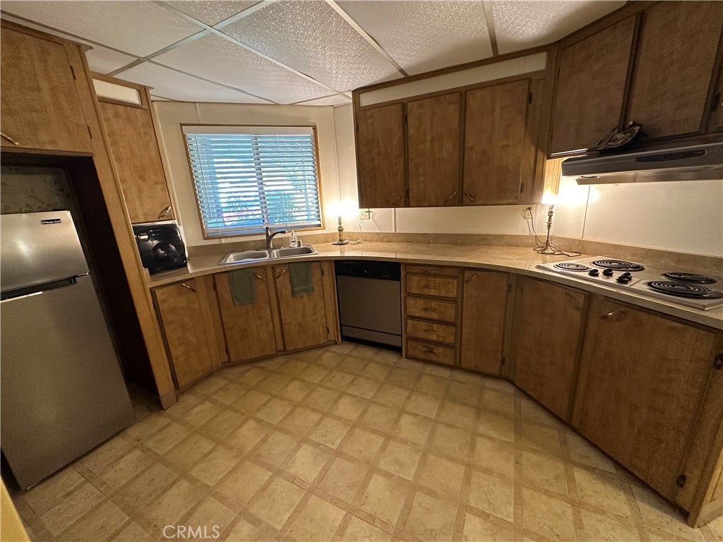 Spacious 2 bedroom 2 bath home in the Walnut Estates Adult Park. Home has a large living room and dining area. Kitchen opens up to the great room and access to large covered deck. Primary bedroom with primary bathroom that includes a large bathtub and a stall shower. Laundry room has access to the covered carport. Close to downtown Kelseyville.
