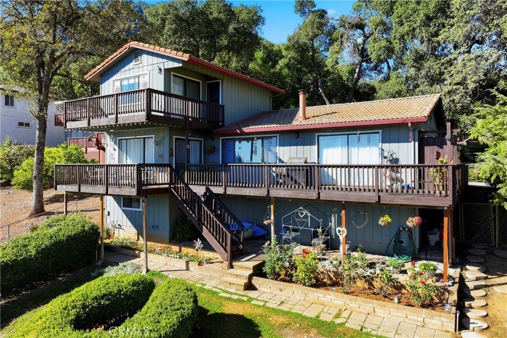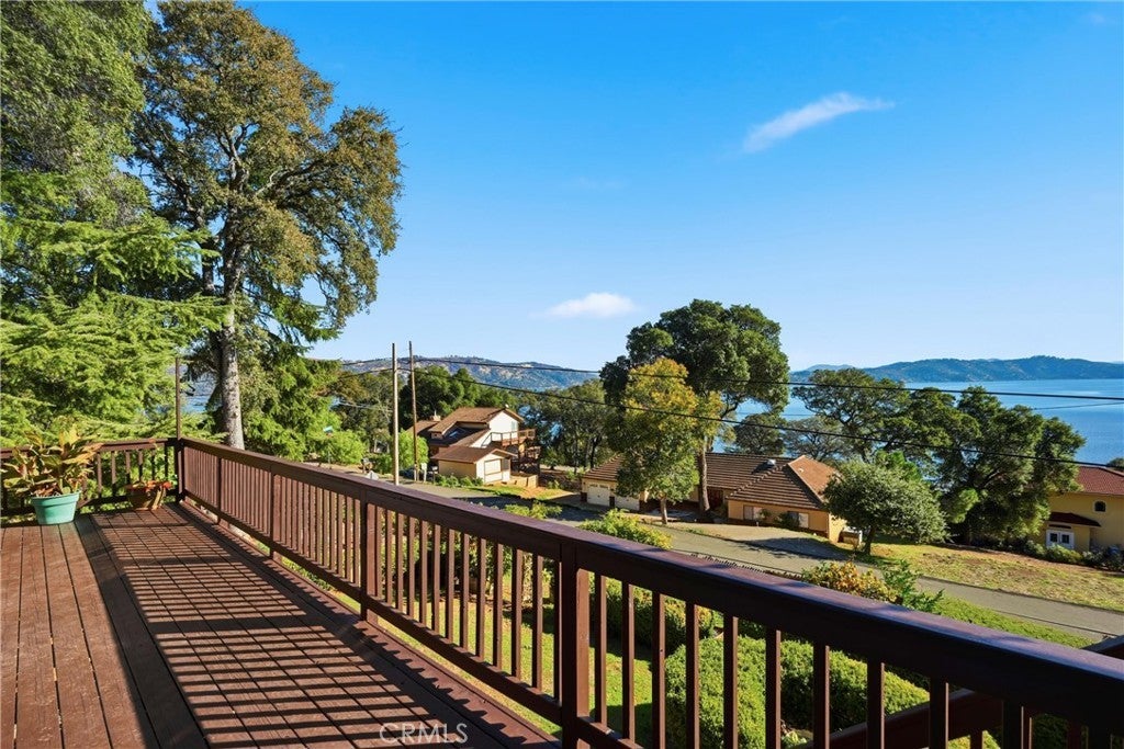 Experience the best of Lake County living in this beautifully refreshed home, perfectly situated on a scenic quarter acre in the highly sought-after Buckingham Park community. Offering stunning lake views, thoughtful updates, and lush, mature gardens, this property invites you to relax, entertain, and enjoy the true beauty of Clear Lake living. Step inside to discover a bright and welcoming open-concept living space that feels both inviting and refined. Large windows frame the sparkling lake views, while the charming antique wood stove adds warmth and character — perfect for cozy evenings or gatherings with family and friends. The remodeled kitchen blends style and function with new stainless steel appliances, updated cabinetry, and plenty of prep space for home chefs and entertainers alike. Upstairs, the serene primary suite provides a peaceful retreat complete with a private ensuite bath and a balcony overlooking the lake — an ideal spot for your morning coffee or to unwind at sunset. The additional bedrooms on the main level are spacious and freshly painted, with new flooring throughout much of the home lending a clean, modern feel. Every detail has been thoughtfully maintained and upgraded, including a fresh coat of paint on all decks and interior doors, new garage doors with a convenient battery backup system, new gutters, and a beautifully remodeled downstairs bathroom featuring a soaking tub and separate shower. The home also includes updated window coverings, ceiling fans, and a reliable HVAC system recently serviced and in excellent working condition. Outdoors, you’ll find an enchanting setting that’s truly a gardener’s paradise. Flower beds bursting with color feature roses, dahlias, lilies, daisies, and more—all supported by an efficient watering system. Fruit trees including apple, plumcot, lemon, lime, and peach provide a touch of country charm and seasonal abundance. The wraparound deck and gazebo offer the perfect backdrop for entertaining, relaxing, or simply soaking in the peaceful atmosphere. Residents of Buckingham Park enjoy exclusive access to community amenities including a private beach, boat launch, dock, picnic area, clubhouse, and golf course, all within walking distance. Whether you’re looking for a weekend getaway or a full-time residence, this home offers the ideal combination of comfort, style, and connection to nature. Come see for yourself why life is better by the lake — this Buckingham beauty is ready to welcome you home.