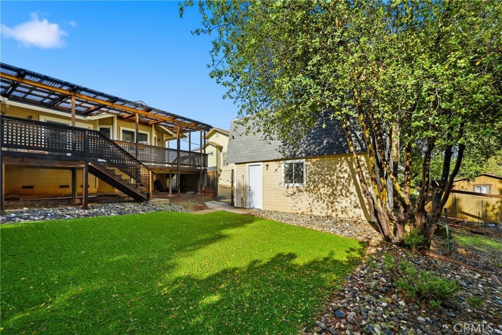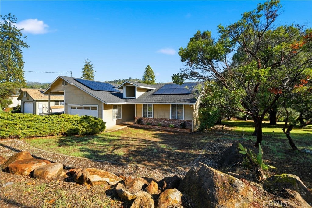 Welcome to 18206 North Shore Drive — a beautifully designed 3bedroom, 2-bath home with an additional office, offering the perfect blend of comfort, functionality, and style. With 1,339 square feet of open-concept living space, this home feels bright and spacious thanks to its vaulted ceilings and abundant natural light. The great room layout seamlessly connects the living, dining, and kitchen areas, creating an inviting space for gatherings or quiet evenings at home. Step outside to enjoy the large covered back deck with hot tub, overlooking the backyard — ideal for pets, gardening, or entertaining under the stars. A standout feature is the detached garage and shop, complete with an extra room upstairs that can serve as a gym, hobby space, or private studio. You’ll also find covered RV parking for convenience and flexibility, plus a solar lease to help keep energy costs low. Located in a peaceful neighborhood with easy access to local amenities, this North Shore gem combines relaxed lake life with practical upgrades — a perfect place to call home.