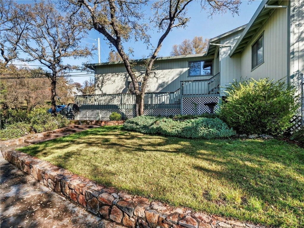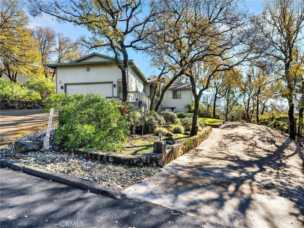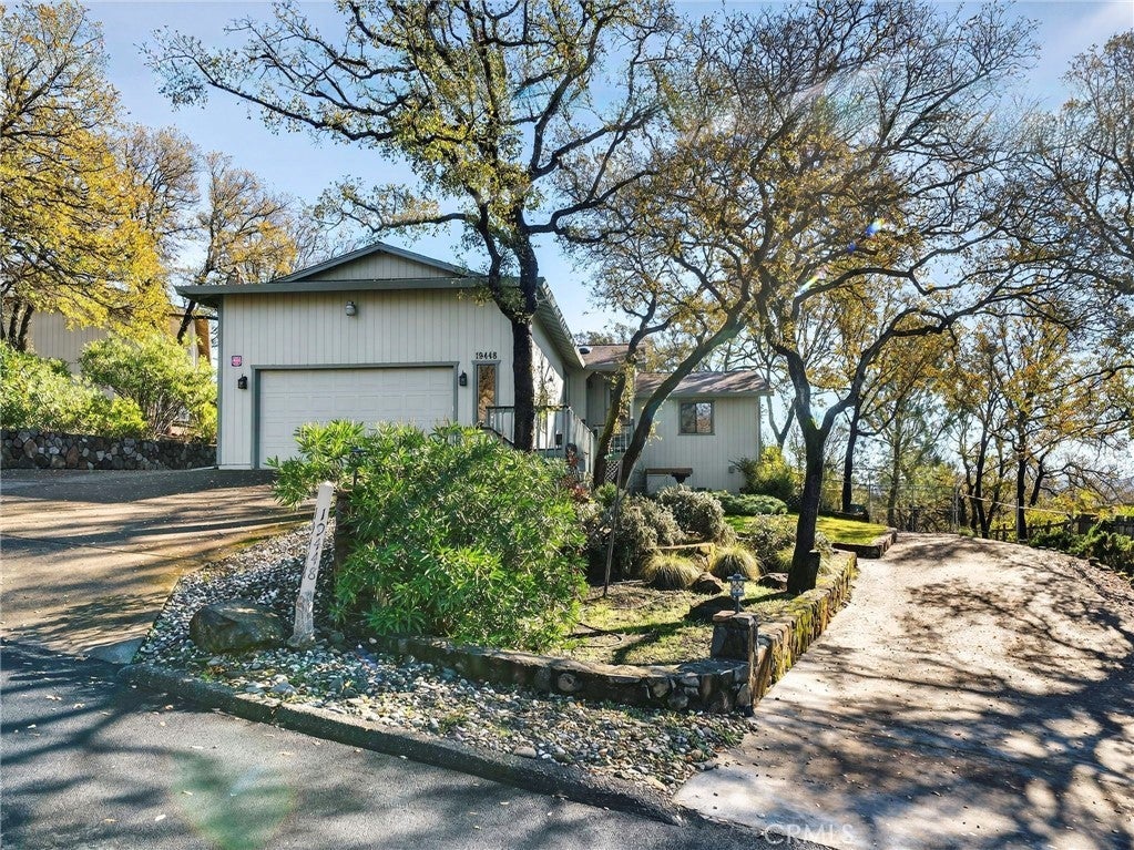 Hidden Valley Gem! This split-level home is beautifully maintained and boasts appealing features throughout. Its spacious and distinctive layout is perfect for entertaining guests. The upper level houses the kitchen, dining area, and foyer. In the kitchen, you'll find a built-in stove, microwave, dishwasher, and refrigerator, with an island that enhances the workspace. The dining area offers ample space, along with built-in cabinets and a wine rack. The foyer provides a welcoming entrance for visitors. On the lower level, the primary bedroom is separated from the two guest rooms and guest bath by the living room, ensuring privacy. The primary bedroom includes a sizable walk-in closet and a sliding door leading out to the deck and backyard oasis. The split-level primary bathroom features a walk-in shower and toilet upstairs, and dual sinks downstairs. Additionally, the living room has a slider that opens onto the back deck and yard. The expansive lot is designed with extensive rock and cement walkways that create a gardening haven. The backyard is completely fenced. A detached studio with a half bath offers versatile options for use. Dual driveways provide easy access throughout the property and potential space for RV parking. The large garage, complete with an upper-level deck, is ideal for hobbyists. There’s also an opportunity to develop additional storage space beneath the house.