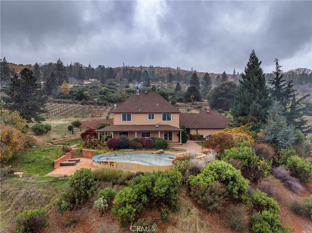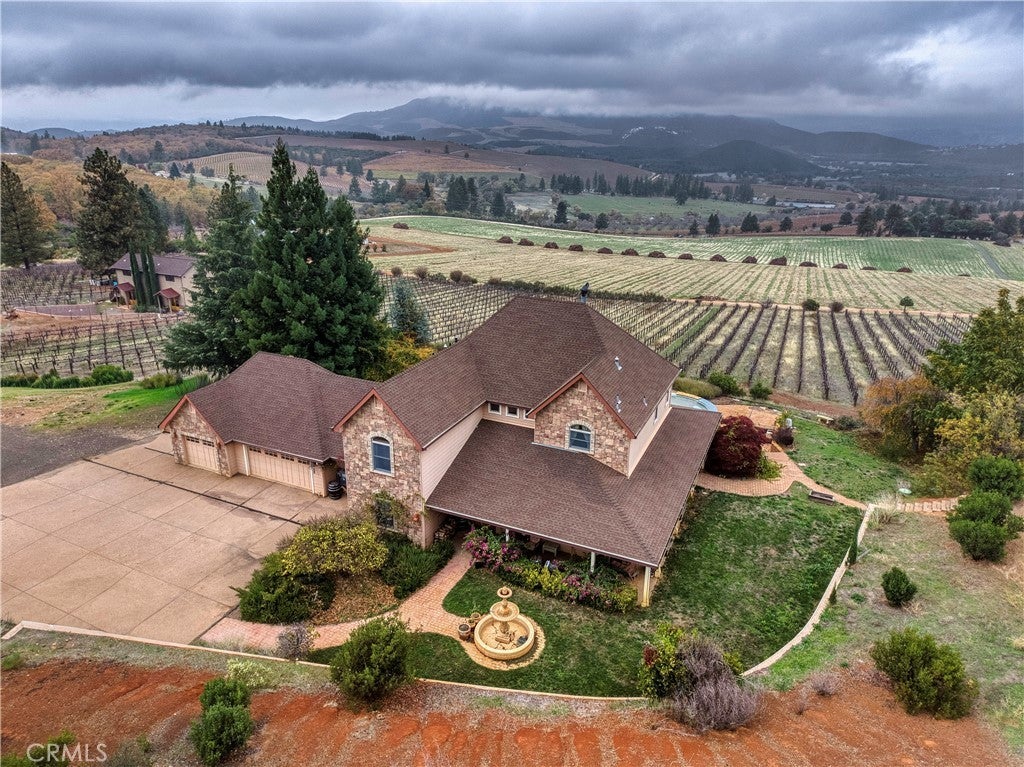 ESTATE HOME AND ADU ON 15+ ACRES! Spectacular views of vineyard and Mt. Konocti. Main residence 3372 SQ FT has 4 bedrooms, 4 1/2 bathrooms, each bedroom has its own full bathroom. Beautiful hardwood floors on first floor, private dining room with wine cellar. Commercial kitchen and granite counters. Wrap around porch to enjoy viewing of 7 acres of vineyard. Additional two-story building (ADU) 1800 SQ FT has a 1 Bedroom 1 bath upstairs with open floorplan and outside deck to enjoy the beautiful mountains and vineyards. The downstairs has many options for use, small kitchen area and 1/2 bath already in place. (Possible 2nd ADU)
